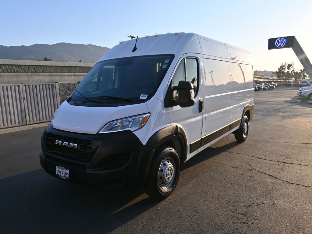Take your business or fleet to the next level with this exceptionally versatile 2023 Ram ProMaster 2500 High Roof 159" WB, offering only 27,707 miles and finished in Bright White Clear coat over a durable Black vinyl interior. Designed with efficiency, reliability, and practicality in mind, this one-owner ProMaster is powered by a strong 3.6L V6 engine paired with a smooth 9-speed 948TE automatic transmission, delivering confident front-wheel drive handling and the durability to support heavy-duty commercial use. This model is equipped with the highly functional Quick Order Package 22A, featuring heavy-duty suspension, Uconnect 5 with a 7-inch touchscreen, integrated voice command with Bluetooth, streaming audio, and a global telematics box module for fleet management capabilities. Its 4010-pound maximum payload capacity and 8,900-pound GVWR are supported by a heavy-duty chassis, leaf rear suspension, and solid steel side wall paneling, making it ideal for up fitting or immediate service deployment. Inside, enjoy convenient features like a 7-inch color driver cluster display, 12V power outlets, driver seat armrest, cloth bucket seating, manual air conditioning, and smart device integration. The rear cargo area includes split swing-out rear doors, full vinyl/rubber floor covering, LED lighting, and ample tie-down points for organized storage. Exterior features include halogen headlamps, black grille and bumpers, gray bodyside moldings, power heated mirrors, and 16-inch steel wheels with all-season tires. Safety and operational confidence are enhanced with a rear backup camera, Forward Collision Warning-Plus, Electronic Stability Control, and Trailer Sway Control for added security on the road. Backed by a clean Carfax with consistent service history, this ProMaster 2500 delivers a professional-grade platform for tradespeople, delivery services, or fleet operators looking for a dependable, high-roof cargo solution. Visit our dealership today to see how this 2023 Ram ProMaster 2500 can support your growing business needs.