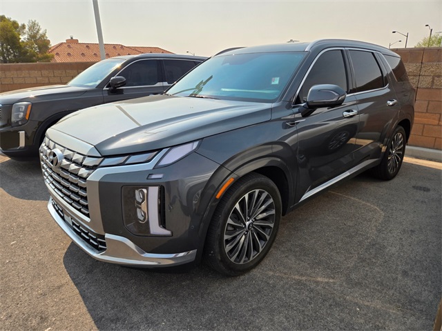 Recent Arrival!CARFAX One-Owner.Steel Graphite 2024 Hyundai Palisade Calligraphy AWD 8-Speed Automatic with SHIFTRONIC V6If you don't drive here, you can't save here!Price may not include recon fee. Option Group 01, 12 Speakers, 3.648 Axle Ratio, 3rd row seats: split-bench, 4-Wheel Disc Brakes, ABS brakes, Air Conditioning, All-Season Fitted Liners, Alloy wheels, AM/FM radio: SiriusXM, Apple CarPlay & Android Auto, Auto High-beam Headlights, Auto-dimming door mirrors, Auto-dimming Rear-View mirror, Auto-leveling suspension, Automatic temperature control, Brake assist, Bumper Applique, Bumpers: body-color, Cargo Net, Cargo Tray, Carpeted Floor Mats, Compass, Delay-off headlights, Driver door bin, Driver vanity mirror, Dual front impact airbags, Dual front side impact airbags, Electronic Stability Control, Emergency communication system, Exterior Parking Camera Rear, First Aid Kit, Four wheel independent suspension, Front anti-roll bar, Front Bucket Seats, Front Center Armrest, Front dual zone A/C, Front reading lights, Fully automatic headlights, Garage door transmitter: HomeLink, harman/kardon® Speakers, Heads-Up Display, Heated & Ventilated Front Bucket Seats, Heated door mirrors, Heated front seats, Heated rear seats, Heated steering wheel, Illuminated entry, Knee airbag, Low tire pressure warning, Memory seat, Navigation System, Occupant sensing airbag, Outside temperature display, Overhead airbag, Overhead console, Panic alarm, Passenger door bin, Passenger vanity mirror, Power door mirrors, Power driver seat, Power Liftgate, Power moonroof, Power passenger seat, Power steering, Power windows, Premium Nappa Leather Seat Trim, Radio data system, Radio: AM/FM/MP3 Premium Audio System, Rain sensing wipers, Rear air conditioning, Rear anti-roll bar, Rear audio controls, Rear reading lights, Rear side impact airbag, Rear window defroster, Rear window wiper, Reclining 3rd row seat, Remote keyless entry, Security system, Speed control, Speed-sensing steering, Split folding rear seat, Spoiler, Steering wheel mounted audio controls, Tachometer, Telescoping steering wheel, Tilt steering wheel, Traction control, Trip computer, Turn signal indicator mirrors, Variably intermittent wipers, Ventilated front seats, Ventilated rear seats, Wheel Locks, and Wheels: 20" x 7.5J Calligraphy Exclusive Alloy.