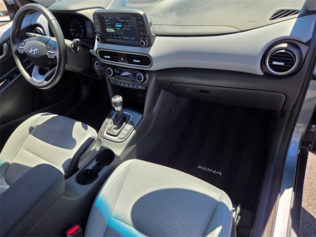 Recent Arrival!CARFAX One-Owner.Priced below KBB Fair Purchase Price!Odometer is 41569 miles below market average!28/32 City/Highway MPGSonic Silver 2020 Hyundai Kona Limited FWD 7-Speed Automatic I4If you don't drive here, you can't save here!Awards: * 2020 KBB.com Best Buy Awards * 2020 KBB.com 10 Coolest New Cars Under $20,000Price may not include recon fee. Cargo Package (Cargo Net and Reversible Cargo Tray), Option Group 01, 3.579 Axle Ratio, 4-Wheel Disc Brakes, 8 Speakers, ABS brakes, Air Conditioning, Alloy wheels, AM/FM radio: SiriusXM, Apple CarPlay & Android Auto, Auto-dimming Rear-View mirror, Automatic temperature control, Brake assist, Bumpers: body-color, Carpeted Floor Mats, Delay-off headlights, Driver door bin, Driver vanity mirror, Dual front impact airbags, Dual front side impact airbags, Electronic Stability Control, Emergency communication system, Exterior Parking Camera Rear, First Aid Kit, Front anti-roll bar, Front Bucket Seats, Front Center Armrest, Front fog lights, Front reading lights, Front wheel independent suspension, Fully automatic headlights, Garage door transmitter: HomeLink, Heated door mirrors, Heated Front Bucket Seats, Heated front seats, Illuminated entry, Leather Seat Trim, Leather Shift Knob, Leather steering wheel, Low tire pressure warning, Occupant sensing airbag, Outside temperature display, Overhead airbag, Overhead console, Panic alarm, Passenger door bin, Passenger vanity mirror, Power door mirrors, Power driver seat, Power moonroof, Power steering, Power windows, Radio: AM/FM/MP3/HD Radio/SiriusXM Audio System, Rear seat center armrest, Rear window defroster, Rear window wiper, Remote keyless entry, Roof rack: rails only, Security system, Speed control, Speed-sensing steering, Split folding rear seat, Spoiler, Steering wheel mounted audio controls, Tachometer, Telescoping steering wheel, Tilt steering wheel, Traction control, Trip computer, Turn signal indicator mirrors, Variably intermittent wipers, and Wheels: 18 x 7.5J Alloy.