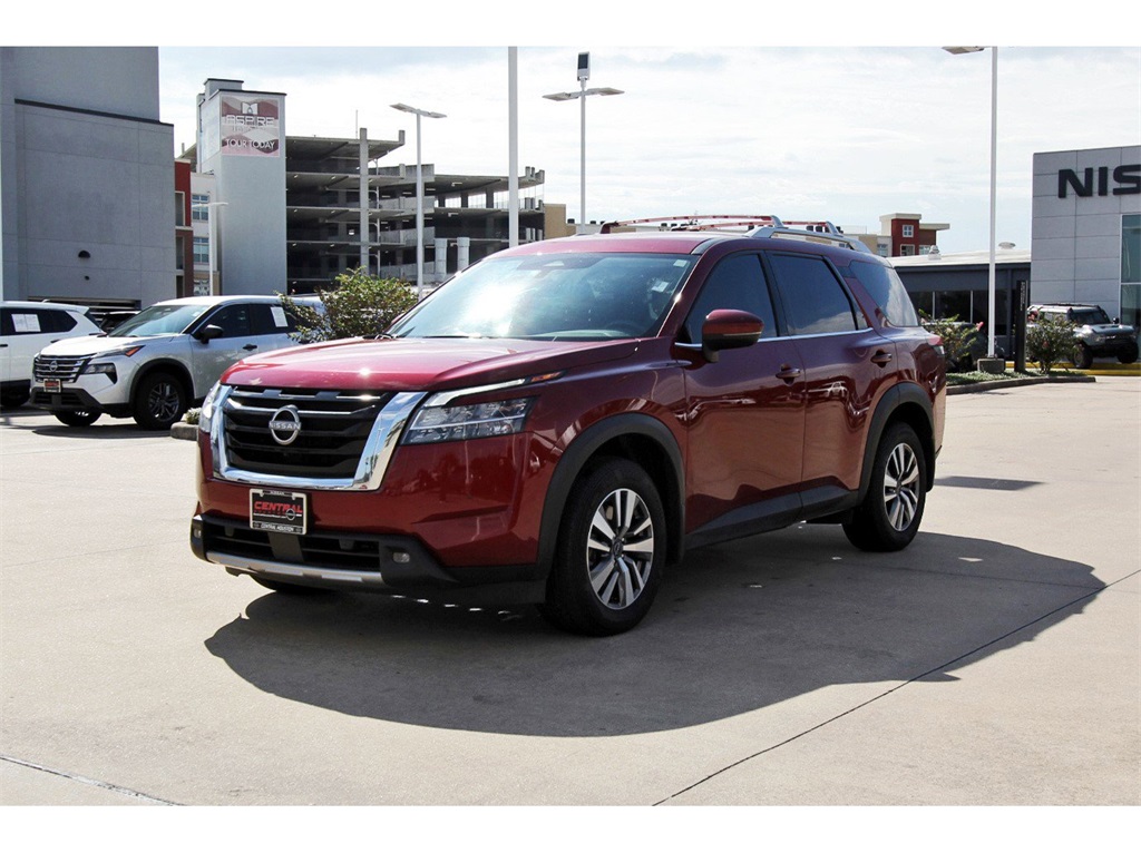 Central Houston Nissan is proud to present you with another True Market Priced Pre-Owned Vehicle. This 2023 Nissan Pathfinder SL Nissan Certified is loaded with the following Factory Options: Nissan Certified Certified Nissan Certified Certified, 18" Machined Alloy Wheels, 3rd row seats: bench, 4-Wheel Disc Brakes, 6 Speakers, ABS brakes, Air Conditioning, Alloy wheels, AM/FM radio: SiriusXM, Auto High-beam Headlights, Auto-dimming Rear-View mirror, Automatic temperature control, Axle Ratio: 4.334, Bench Seat Carpeted Floor Mats (Set of 4), Black Splash Guards (Set of 4), Bose Premium Audio System, Brake assist, Bumpers: body-color, Cross Bars, Delay-off headlights, Driver door bin, Driver vanity mirror, Dual front impact airbags, Dual front side impact airbags, Electronic Stability Control, Emergency communication system: NissanConnect Services, Exterior Parking Camera Rear, Four wheel independent suspension, Front anti-roll bar, Front Bucket Seats, Front Center Armrest, Front dual zone A/C, Front reading lights, Fully automatic headlights, Garage door transmitter: HomeLink, Heated door mirrors, Heated Front Bucket Seats, Heated front seats, Heated steering wheel, Illuminated entry, Knee airbag, Leather Seating Surfaces, Leather steering wheel, LED Fog Lamps, Low tire pressure warning, Navigation system: NissanConnect Navigation, NissanConnect w/Navigation & Services, Occupant sensing airbag, Outside temperature display, Overhead airbag, Overhead console, Panic alarm, Passenger door bin, Passenger vanity mirror, Power door mirrors, Power driver seat, Power Liftgate, Power passenger seat, Power steering, Power windows, Radio data system, Radio: AM/FM Audio System, Rear air conditioning, Rear anti-roll bar, Rear reading lights, Rear seat center armrest, Rear side impact airbag, Rear window defroster, Rear window wiper, Reclining 3rd row seat, Remote keyless entry, Security system, Speed control, Speed-sensing steering, Split folding rear seat, Spoiler, Steering wheel mounted audio controls, Tachometer, Telescoping steering wheel, Tilt steering wheel, Traction control, Trip computer, Turn signal indicator mirrors, and Variably intermittent wipers!!Central Houston Nissan is more than just your typical car dealership. When our customers visit us, our goal is to provide quality vehicles, exceptional service and a friendly atmosphere. Our staff has been trained to create ease during your purchase or service experience and we are always making sure you get everything you want and deserve out of your visit. Our vision and mission is an employee-centered and customer-focused environment. Vehicles may be subject to prep package and market adjustment. When you buy from Central Houston Nissan, we'll make it the best car buying experience you've ever had. When you purchase a New Nissan or a qualifying Pre-Owned vehicle from Central Houston Nissan, you are automatically enrolled into our Central Houston Nissan Central Care Program at no cost to you. You can’t beat that! Vehicles may be subject to prep package and market adjustment. Stop by 2901 S Loop W, Houston, Texas 77054 today!!!