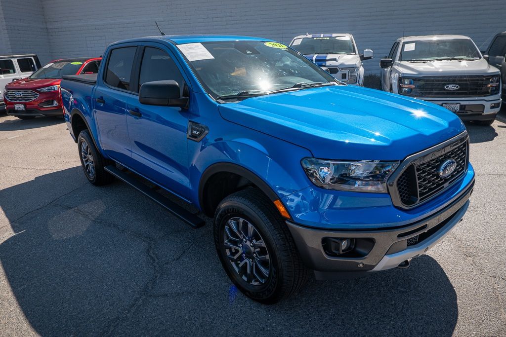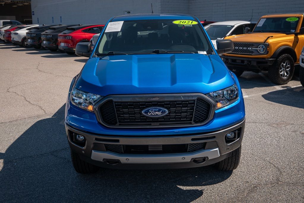 Blue 2021 Ford Ranger XLT 4WD 10-Speed Automatic EcoBoost 2.3L I4 GTDi DOHC Turbocharged VCT 4WD, 110V AC Power Outlet, Adaptive Cruise Control, Auto-Dimming Rear-View Mirror, Black Grille w/Magnetic Surround, Black Wheel-Lip Molding, Class IV Trailer Hitch Receiver, Equipment Group 301A Mid, Exterior Parking Camera Rear, Forward Sensing System, Front dual zone A/C, Leather-Wrapped Shifter, Leather-Wrapped Steering Wheel, Magnetic Front & Rear Bumper, Navigation, Reverse Sensing System, Sport Appearance Package, Sport Box Decal, Technology Package, Trailer Tow Package, Wheels: 17" Magnetic Painted Aluminum Sport.