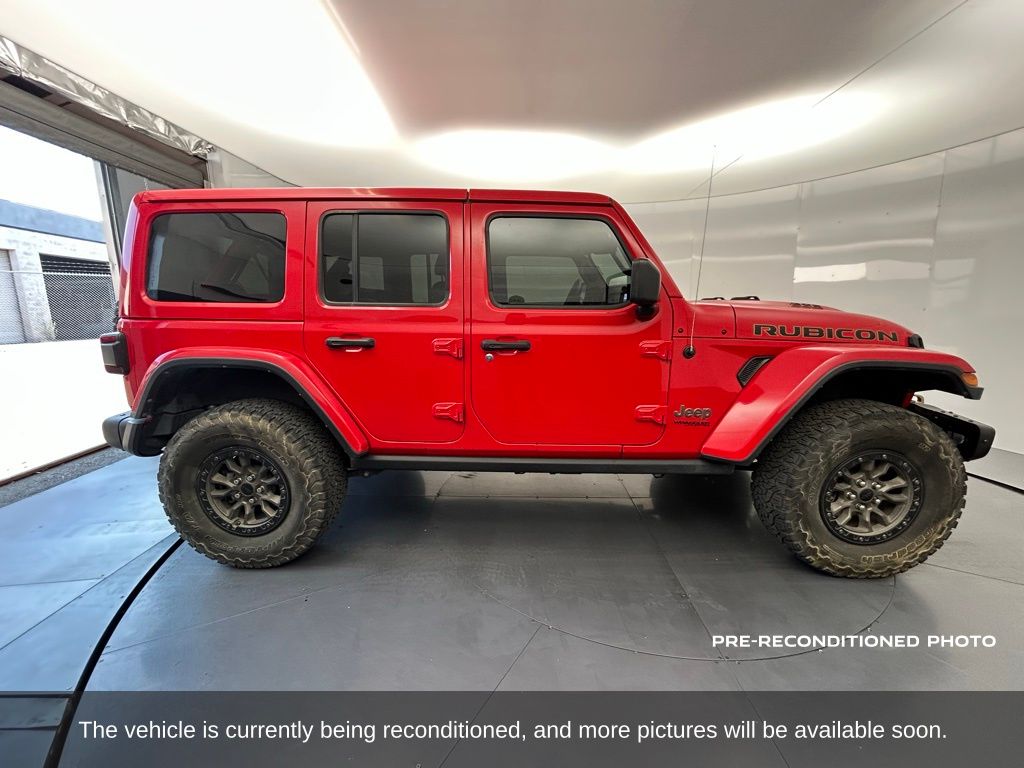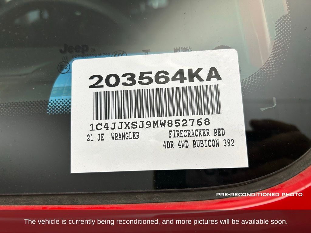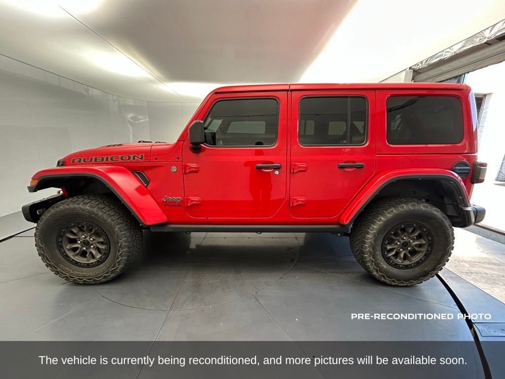 Conquer the road and trail in this thrilling 2021 Jeep Wrangler Unlimited Rubicon 392, a rare blend of raw power and iconic off-road capability with only 29,645 miles on the odometer. Finished in Firecracker Red Clearcoat and equipped with a bold Black interior featuring leather-trimmed bucket seats, this Rubicon 392 is powered by an exhilarating 6.4-liter V8 SRT HEMI engine delivering 470 horsepower, mated to a robust 8-speed automatic transmission and legendary Rock-Trac 4x4 system. Designed to dominate in every condition, it comes equipped with FOX performance shocks, front and rear electronic locking differentials, 4.56 rear axle ratio, and an active dual-mode performance exhaust for a deep, unmistakable rumble. Built for serious off-roaders, it includes 17-inch beadlock-capable wheels wrapped in LT285/70R17C all-terrain tires, heavy-duty suspension, integrated off-road camera, and Jeeps Off-Road Plus system with selectable drive modes. Inside, the cabin blends rugged function with refined comfort, featuring heated front seats, heated steering wheel, leather-wrapped surfaces, remote proximity keyless entry, dual-zone automatic climate control, and a 7-inch TFT digital cluster display. Stay connected and entertained with Uconnect 4C NAV, an 8.4-inch touchscreen infotainment system, Apple CarPlay, Android Auto, premium Alpine sound system, SiriusXM, and integrated voice command with Bluetooth. Exterior features include LED lighting throughout, steel front bumper, hardtop headliner, body-color fender flares, tow hooks, black grille accents, and dual hood vents that define its aggressive stance. Safety is integrated with blind-spot monitoring, rear cross-path detection, ParkSense rear park assist, a rear backup camera, and advanced multistage front and side airbags. With no reported accidents and a clean one-owner Carfax, this Rubicon 392 offers peace of mind along with world-class capability. Whether crawling over rocks or cruising through city streets, this Jeep delivers adrenaline in every gear. Don't miss your opportunity to own one of the most powerful Wranglers ever built schedule your test drive today and unleash the full potential of the 2021 Jeep Wrangler Rubicon 392!
