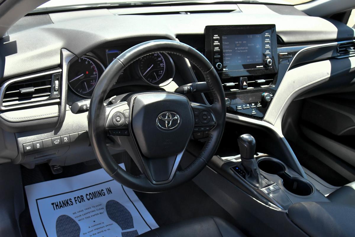 Scores 39 Highway MPG and 28 City MPG! This Toyota Camry delivers a Regular Unleaded I-4 2.5 L/152 engine powering this Automatic transmission. Variable Intermittent Wipers, Urethane Gear Shifter Material, Trunk Rear Cargo Access.*This Toyota Camry Comes Equipped with These Options *Trip Computer, Transmission: 8-Speed Direct Shift ECT-i Automatic -inc: sequential shift mode and paddle shifters, Transmission w/Driver Selectable Mode, Toyota Safety Sense (TSS) 2.5+, Tires: 235/45R18 AS, Tire Pressure Monitor System (TPMS) Tire Specific Low Tire Pressure Warning, Strut Front Suspension w/Coil Springs, Steel Spare Wheel, Single Stainless Steel Exhaust w/Chrome Tailpipe Finisher, Side Impact Beams.