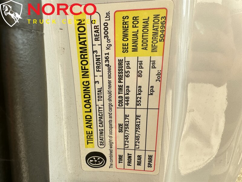 INSTALLED FEATURES: Air filtration, Front air conditioning, Front air conditioning zones: single, Airbag deactivation: passenger switch, Front airbags: dual, Side airbags: front, Side curtain airbags: front, Antenna type: mast, Radio: AM/FM, Total speakers: 4, ABS: 4-wheel, Braking assist, Electronic brakeforce distribution, Front brake type: ventilated disc, Power brakes, Rear brake type: ventilated disc, Armrests: front center, Door sill trim: scuff plate, Floor material: rubber/vinyl, Steering wheel trim: vinyl, Assist handle: front, Cupholders: front, Power outlet(s): 12V front, Power steering, Reading lights: front, Rearview mirror: manual day/night, Steering wheel: tilt and telescopic, Steering wheel mounted controls: multi-function, Storage: cargo tie-down anchors and hooks / in dash, Vanity mirrors: passenger, Door handle color: black, Front bumper color: black, Grille color: black, License plate bracket: front, Mirror color: black, Pickup bed light, Rear bumper color: black, Tailgate: lift assist / removable, Window trim: black, Infotainment screen size: 4.2 in., Clock, Digital odometer, External temperature display, Fuel economy display: MPG / range, Gauge: tachometer, Instrument cluster screen size: 2.3 in., Multi-function display, Powertrain hour meter, Trip odometer, Warnings and reminders: low fuel level / low oil level, Headlights: auto delay off / auto on / halogen / quad headlights / wiper activated, Side mirror adjustments: manual / manual folding / manual telescoping, Towing mirrors, Alternator: 157 amps, Battery rating: 650 CCA, Battery saver, Child seat anchors: LATCH system, Crumple zones: front, Impact sensor: alert system / door unlock / post-collision safety system, Programmable safety key, Emergency locking retractors: front, Front seatbelts: 3-point, Seatbelt pretensioners: front, Seatbelt warning sensor: front, Driver seat manual adjustments: lumbar / reclining, Front headrests: 2 / adjustable, Front seat type: 40-20-40 split bench, Passenger seat manual adjustments: reclining, Upholstery: vinyl, Anti-theft system: vehicle immobilizer, Off-road driving assist: hill ascent, Roll stability control, Stability control, Traction control, Trailer stability control, Front shock type: gas, Front spring type: coil, Front stabilizer bar, Front suspension classification: independent, Front suspension type: twin I-beam, Rear shock type: gas, Rear spring type: leaf, Rear suspension classification: solid live axle, Rear suspension type: multi-leaf, Tow hooks: front, Trailer hitch, Trailer wiring: 4-pin / 7-pin, Spare tire kit, Spare tire mount location: underbody, Spare tire size: full-size, Spare wheel type: steel, Tire Pressure Monitoring System, Wheel covers: full, Wheels: painted steel, Front wipers: intermittent, Solar-tinted glass