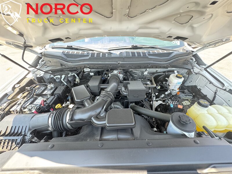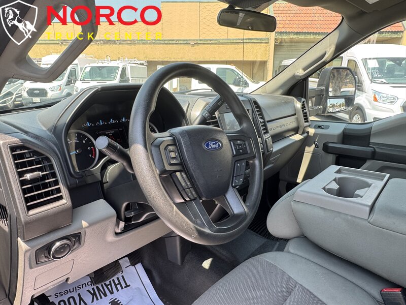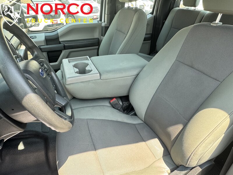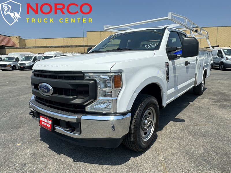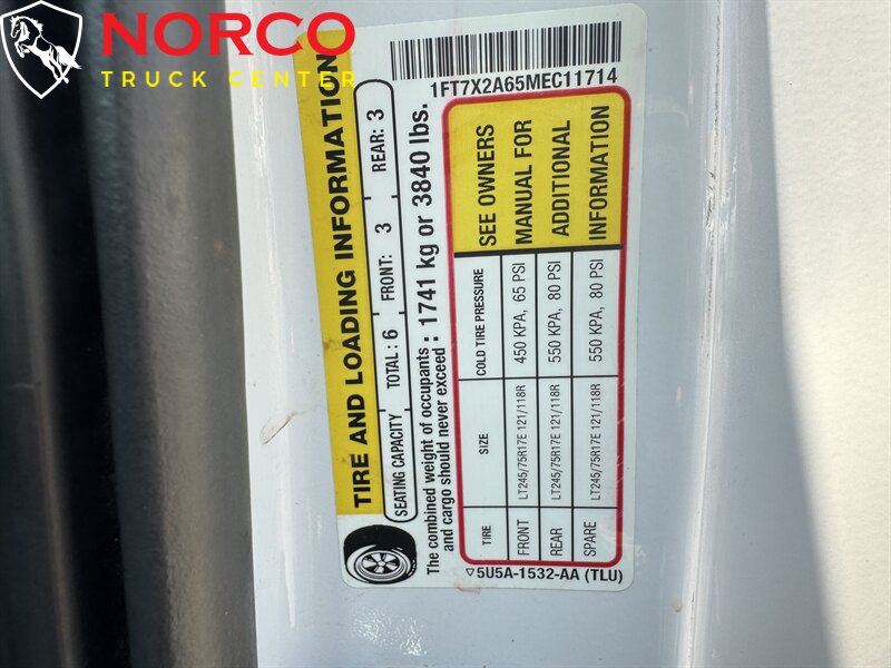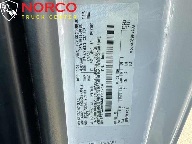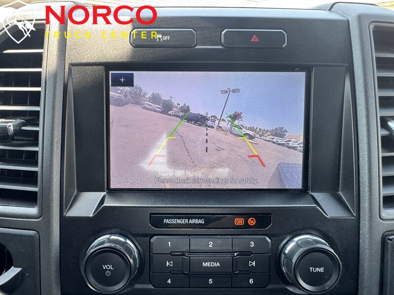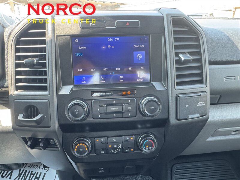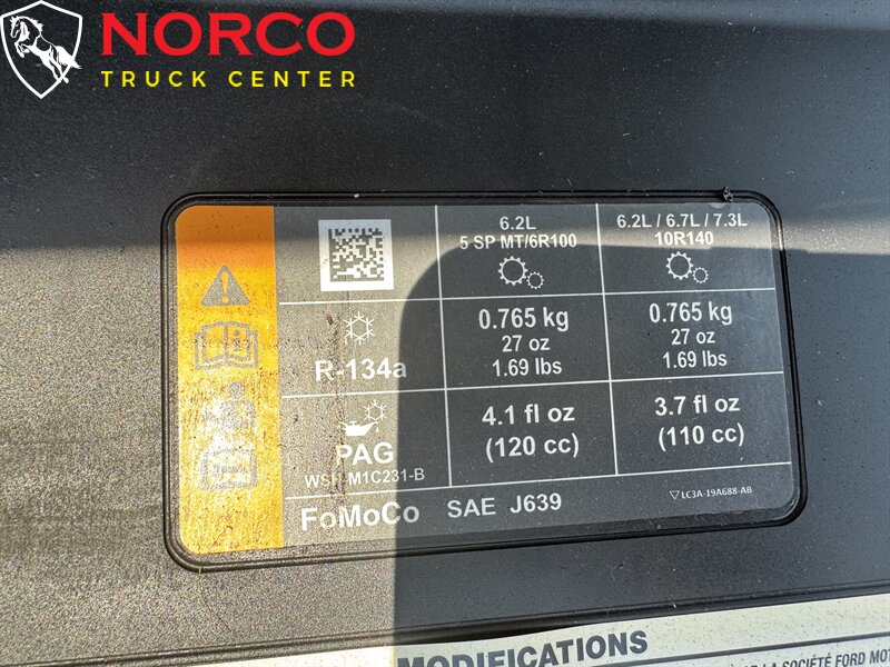 INSTALLED FEATURES: Air filtration, Front air conditioning, Front air conditioning zones: single, Airbag deactivation: passenger switch, Front airbags: dual, Side airbags: front, Side curtain airbags: front / rear, Antenna type: mast, Auxiliary audio input: Bluetooth / USB, Radio: AM/FM / voice operated, Speed sensitive volume control, Total speakers: 4, ABS: 4-wheel, Braking assist, Electronic brakeforce distribution, Front brake type: ventilated disc, Power brakes, Rear brake type: ventilated disc, Armrests: front center, Door sill trim: scuff plate, Floor material: rubber/vinyl, Steering wheel trim: urethane, Assist handle: front, Cupholders: front, Overhead console: front, Power outlet(s): 12V front / USB front / USB-C front, Power steering, Reading lights: front / rear, Rearview mirror: manual day/night, Steering wheel: tilt and telescopic, Steering wheel mounted controls: audio / multi-function / phone / voice control, Storage: accessory hook / door pockets, Vanity mirrors: passenger, Door handle color: black, Front bumper color: black, Grille color: black, Mirror color: black, Pickup bed light, Rear bumper color: black, Side door type: dual rear-hinged access, Tailgate: lift assist / removable, Window trim: black, Connected in-car apps: app marketplace integration, Infotainment: SYNC, Infotainment screen size: 4.2 in., Clock, Digital odometer, External temperature display, Gauge: oil pressure / tachometer / transmission temperature, Instrument cluster screen size: 2.3 in., Powertrain hour meter, Warnings and reminders: low fuel level / maintenance due, Headlights: auto delay off / auto on/off / halogen / quad headlights / wiper activated, Side mirror adjustments: manual / manual folding / manual telescoping, Towing mirrors, Alternator: 157 amps, Battery: maintenance-free, Battery rating: 650 CCA, Battery saver, Automatic hazard warning lights, Camera system: rearview, Child seat anchors: LATCH system, Crumple zones: front, Impact sensor: alert system / door unlock / post-collision safety system, Programmable safety key, Rearview monitor: in dash, Emergency locking retractors: front / rear, Front seatbelts: 3-point, Rear seatbelts: 3-point, Seatbelt pretensioners: front, Seatbelt warning sensor: front, Driver seat manual adjustments: 6 / lumbar / reclining, Front headrests: 2 / adjustable, Front seat type: 40-20-40 split bench, Passenger seat manual adjustments: 4 / reclining, Rear headrests: 3 / adjustable, Rear seat folding: folds up / split, Rear seat type: 60-40 split bench, Upholstery: vinyl, Anti-theft system: vehicle immobilizer, Hill holder control, Roll stability control, Stability control, Traction control, Trailer stability control, Front shock type: gas, Front spring type: coil, Front stabilizer bar, Front suspension classification: independent, Front suspension type: twin I-beam, Rear shock type: gas, Rear spring type: leaf, Rear suspension classification: solid live axle, Rear suspension type: multi-leaf, Electronic messaging assistance: voice operated / with read function, Hands-free phone call integration: voice operated, Smart device app compatibility: FordPass Connect, Smart device app function: engine start / lock operation / maintenance status / vehicle location, Wi-Fi: hotspot, Wireless data link: Bluetooth, Tow hooks: front, Trailer hitch, Trailer wiring: 4-pin / 7-pin, Spare tire mount location: underbody, Spare tire size: full-size, Spare wheel type: steel, Tire Pressure Monitoring System, Wheels: painted steel, Front wipers: variable intermittent, Solar-tinted glass: front