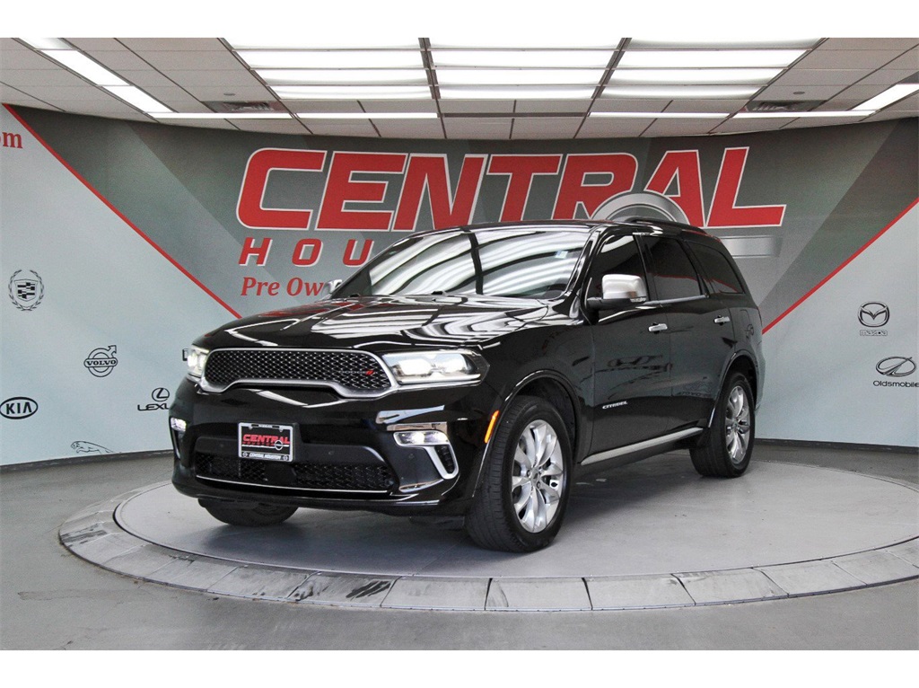 Central Houston Nissan is proud to present you with another True Market Priced Pre-Owned Vehicle. This 2022 Dodge Durango Citadel is loaded with the following Factory Options: AWD Anodized Platinum Appearance Package, Quick Order Package 22P (Platinum Mirrors Caps), AWD, 19 harman/kardon Amplified Speakers w/Subwoofer, 3rd row seats: split-bench, 4-Wheel Disc Brakes, 825 Watt Amplifier, 9 Speakers, ABS brakes, Air Conditioning, Alloy wheels, AM/FM radio: SiriusXM w/360L, Anti-whiplash front head restraints, Apple CarPlay/Android Auto, Audio memory, Auto High-beam Headlights, Auto-dimming door mirrors, Auto-dimming Rear-View mirror, Auto-leveling suspension, Automatic temperature control, Brake assist, Bumpers: body-color, Compass, Delay-off headlights, Driver door bin, Driver vanity mirror, Dual front impact airbags, Dual front side impact airbags, Electronic Stability Control, Emergency communication system: SiriusXM Guardian, Four wheel independent suspension, Front anti-roll bar, Front Bucket Seats, Front Center Armrest w/Storage, Front dual zone A/C, Front fog lights, Front reading lights, Fully automatic headlights, Garage door transmitter, Heated door mirrors, Heated front seats, Heated rear seats, Heated steering wheel, Heavy-Duty Engine Cooling, Illuminated entry, Knee airbag, Leather steering wheel, Low tire pressure warning, Memory seat, Nappa/Axis II Seats w/Rhombi Logo, Navigation system: TomTom, Occupant sensing airbag, Outside temperature display, Overhead airbag, Overhead console, Panic alarm, ParkView Rear Back-Up Camera, Passenger door bin, Passenger vanity mirror, Power door mirrors, Power driver seat, Power Liftgate, Power moonroof, Power passenger seat, Power steering, Power windows, Radio data system, Radio: Uconnect 5 Nav w/10.1" Display, Rain sensing wipers, Rear air conditioning, Rear anti-roll bar, Rear reading lights, Rear seat center armrest, Rear window defroster, Rear window wiper, Remote keyless entry, Roof rack, Security system, Speed control, Speed-sensing steering, Speed-Sensitive Wipers, Split folding rear seat, Spoiler, Steering wheel mounted audio controls, Tachometer, Telescoping steering wheel, Tilt steering wheel, Traction control, Trip computer, Turn signal indicator mirrors, Variably intermittent wipers, Ventilated front seats, Voltmeter, and Wheels: 20" x 8.0" Satin Carbon Aluminum!!Central Houston Nissan is more than just your typical car dealership. When our customers visit us, our goal is to provide quality vehicles, exceptional service and a friendly atmosphere. Our staff has been trained to create ease during your purchase or service experience and we are always making sure you get everything you want and deserve out of your visit. Our vision and mission is an employee-centered and customer-focused environment. Vehicles may be subject to prep package and market adjustment. When you buy from Central Houston Nissan, we'll make it the best car buying experience you've ever had. When you purchase a New Nissan or a qualifying Pre-Owned vehicle from Central Houston Nissan, you are automatically enrolled into our Central Houston Nissan Central Care Program at no cost to you. You can’t beat that! Vehicles may be subject to prep package and market adjustment. Stop by 2901 S Loop W, Houston, Texas 77054 today!!!