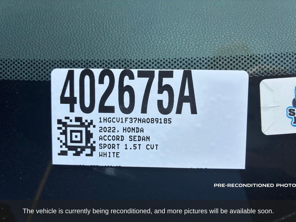 White 2022 Honda Accord Sport FWD CVT 1.5T I4 DOHC 16V Turbocharged VTECRecent Arrival! Odometer is 12302 miles below market average! 29/35 City/Highway MPG