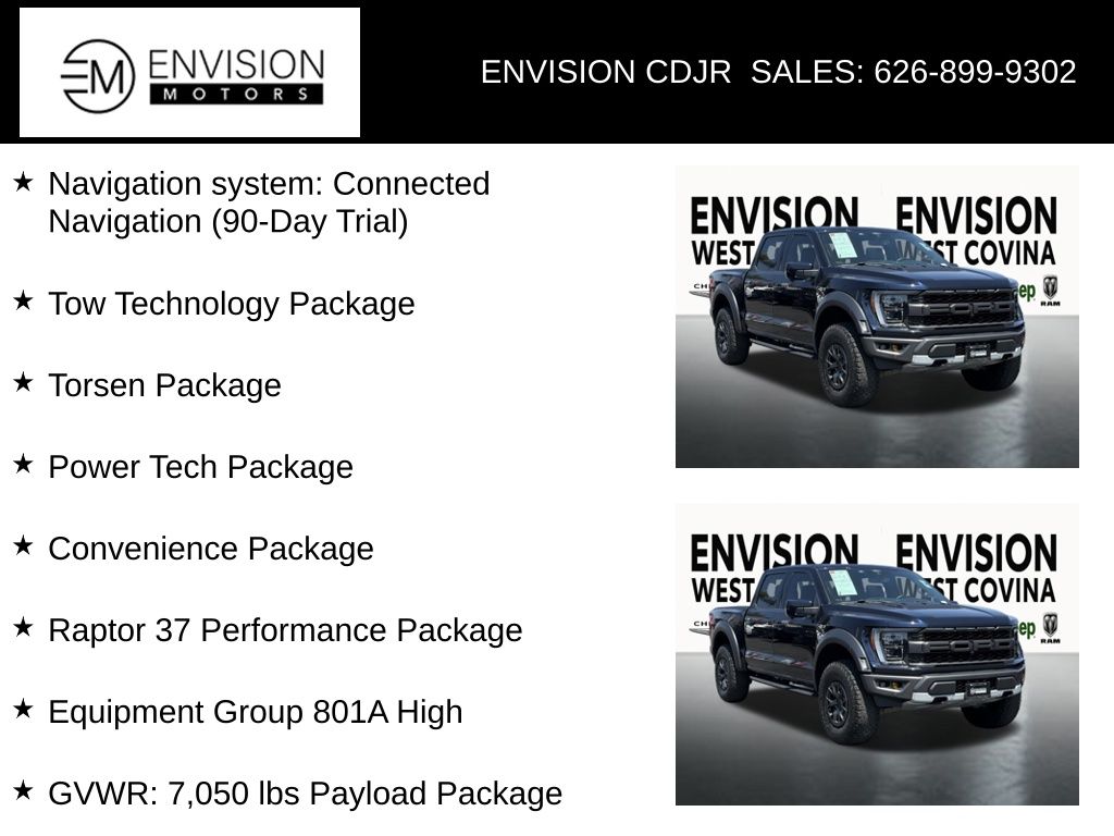 WE SPECIALIZE IN ALL CREDIT PROFILES! See what we can do for you! Call to find out (626) 899-9302.Odometer is 13189 miles below market average! 4WD, 360 Degree Camera, BlueCruise Prep Kit, Connected Built-In Navigation, Convenience Package, Electronic Locking w/4.10 Axle Ratio, Equipment Group 801A High, Forward Sensing System, Front-Axle w/Torsen Differential, GVWR: 7,050 lbs Payload Package, Heated Steering Wheel, Integrated Trailer Brake Controller, Interior Work Surface, Leather Trim Seats w/Heated 2nd Row, LED Projector w/Dynamic Bending Headlamps, Navigation system: Connected Navigation (90-Day Trial), Partitioned Lockable Fold-Flat Storage, Power Tailgate, Power Tech Package, Power Tilt/Telescoping Steering Column w/Memory, Pro Power Onboard - 2KW, Pro Trailer Backup Assist, Radio: B&O Unleashed Sound System by Bang & Olufsen, Rain-Sensing Wipers, Raptor 37 Graphics, Raptor 37 Performance Package, Recaro Unique Blue Accent 40/Console/40 Front Seats, Rigid LED Fog Lamp, Sport Tuned Shock Absorbers, SYNC 4 w/Enhanced Voice Recognition, Tailgate Applique FORD, Torsen Package, Tow Technology Package, Twin Panel Moonroof, Unique Blue Leather Console w/Raptor Logo, Universal Garage Door Opener, Wheels: Unique 17" Forged Aluminum Bead-Lock Capable, Wireless Charging Pad.Blue Metallic2021 Ford F-150 Raptor 4WD 10-Speed Automatic 3.5L V6 EcoBoost**********All Pricing and Advertised Prices for any/all vehicles offered for sale does not include dealer installed accessories which can be purchased for an additional cost.********** The Factory Rebates may not be available on this vehicle if you elect to take advantage of a Special Alternative APR or Special Lease program. Some Factory Rebates are California Resident specific and may vary for residents of other states. NO sales to Dealers, Brokers or Exporters. For out of state purchase, customers must be present to purchase. If shipping is required, dealership must facilitate; no exceptions. Please contact us for special Multi-Vehicle or Fleet pricing. Prices are plus government fees and taxes, any finance charges, $85 documentary fee, $29 electronic registration fee, any emission testing charge and $1.75 per new tire state tire fee. *** We make every effort to provide accurate information, but please verify before purchasing. Leasing & financing available on approved credit. Trade-ins accepted. Subject to prior sale.Awards: * NACTOY 2021 North American Truck of the Year