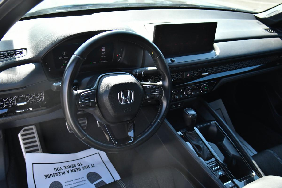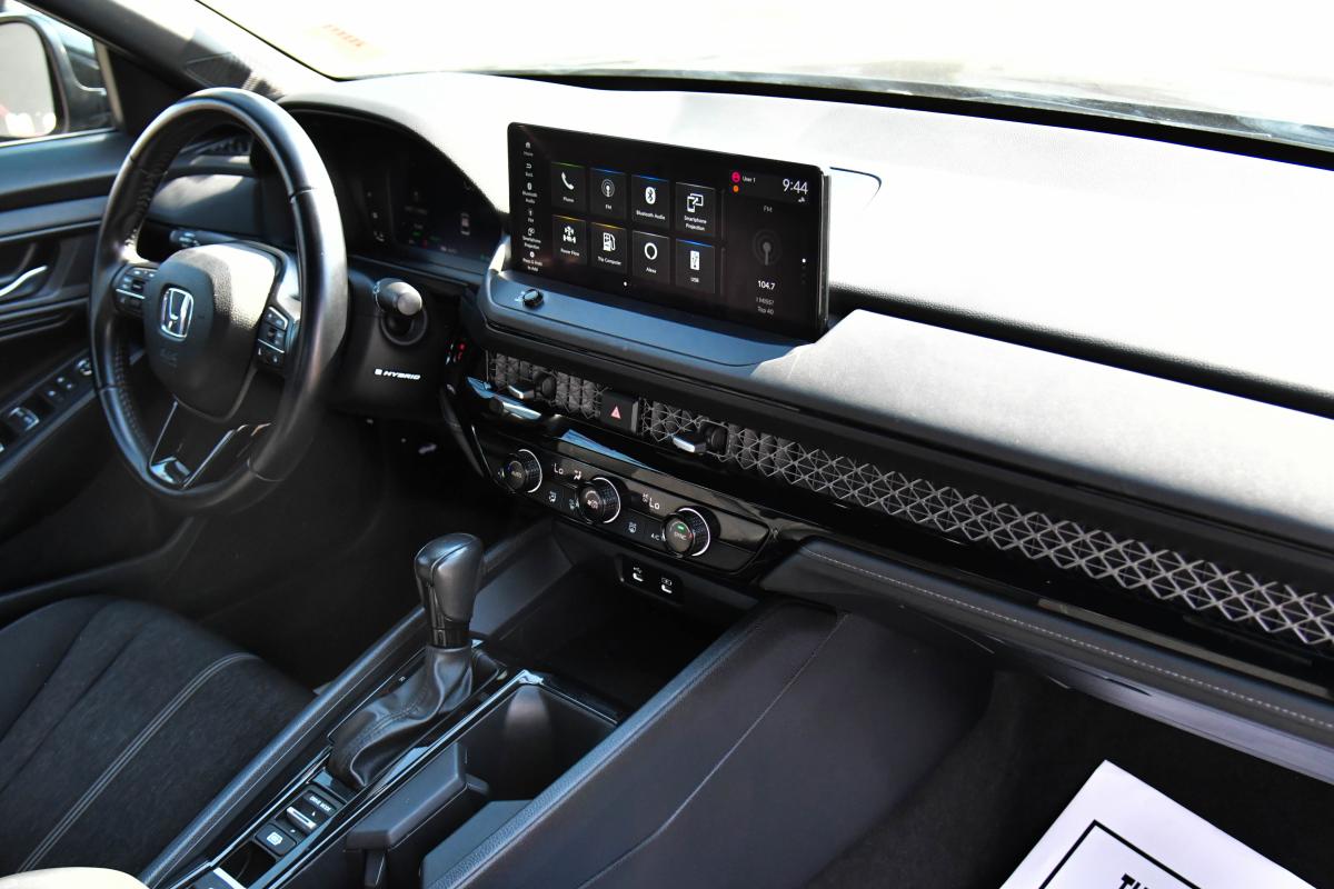 Boasts 41 Highway MPG and 46 City MPG! This Honda Accord Hybrid boasts a Gas/Electric I-4 2.0 L/122 engine powering this Variable transmission. Wheels: 19 x 8.5J Berlina Black -inc: machined face, Vehicle Stability Assist (VSA) Electronic Stability Control (ESC), Valet Function.*This Honda Accord Hybrid Features the Following Options *Trunk Rear Cargo Access, Trip Computer, Transmission: Electronic Continuously Variable -inc: econ, normal, sport and individual modes, Traffic Jam Assist, Tires: 235/40R19 96V AS, Tire Specific Low Tire Pressure Warning, Tire mobility kit, Strut Front Suspension w/Coil Springs, Speed Sensitive Variable Intermittent Wipers, Smart Device Remote Engine Start.