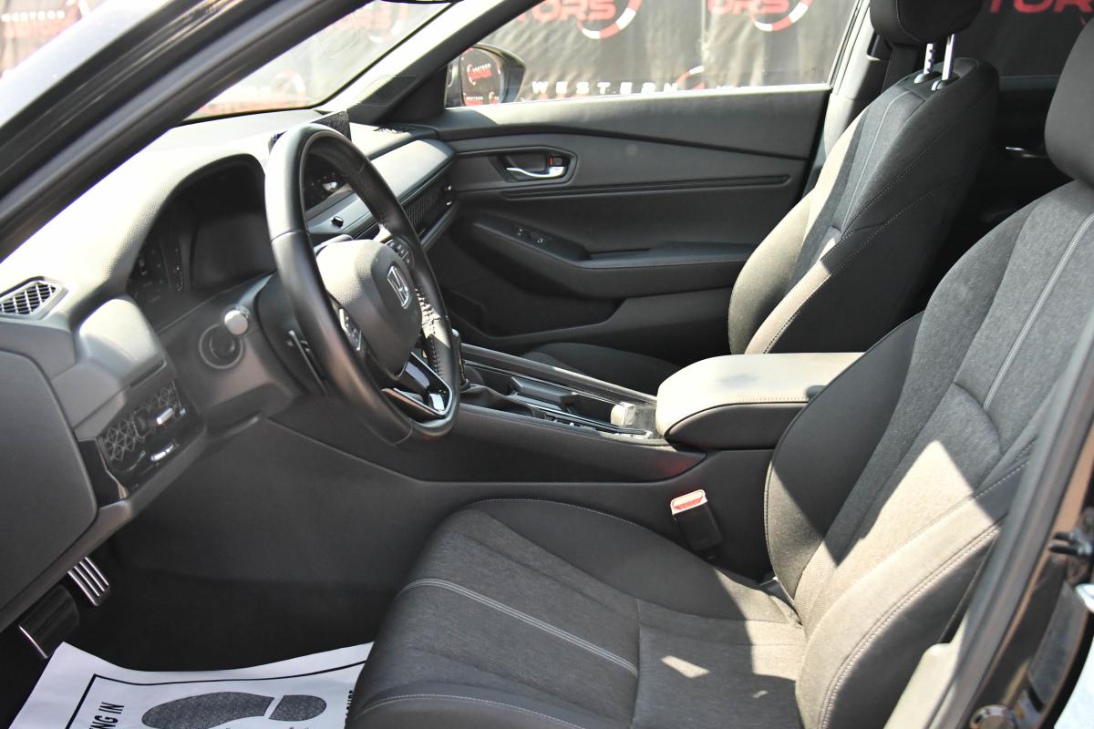 Scores 41 Highway MPG and 46 City MPG! This Honda Accord Hybrid delivers a Gas/Electric I-4 2.0 L/122 engine powering this Variable transmission. Wheels: 19 x 8.5J Berlina Black -inc: machined face, Vehicle Stability Assist (VSA) Electronic Stability Control (ESC), Valet Function.*This Honda Accord Hybrid Comes Equipped with These Options *Trunk Rear Cargo Access, Trip Computer, Transmission: Electronic Continuously Variable -inc: econ, normal, sport and individual modes, Traffic Jam Assist, Tires: 235/40R19 96V AS, Tire Specific Low Tire Pressure Warning, Tire mobility kit, Strut Front Suspension w/Coil Springs, Speed Sensitive Variable Intermittent Wipers, Smart Device Remote Engine Start.
