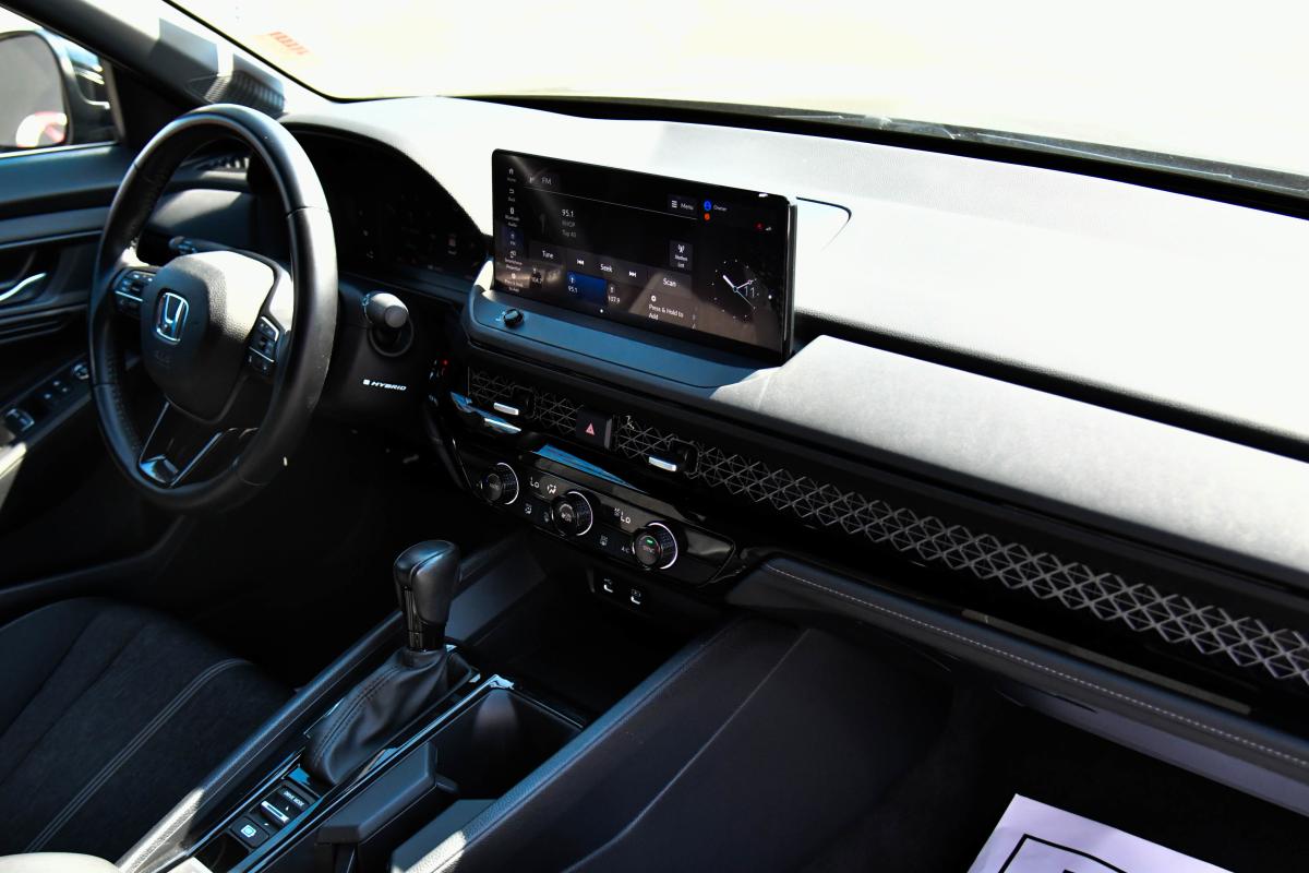 Scores 41 Highway MPG and 46 City MPG! This Honda Accord Hybrid delivers a Gas/Electric I-4 2.0 L/122 engine powering this Variable transmission. Wheels: 19 x 8.5J Berlina Black -inc: machined face, Vehicle Stability Assist (VSA) Electronic Stability Control (ESC), Valet Function.*This Honda Accord Hybrid Comes Equipped with These Options *Trunk Rear Cargo Access, Trip Computer, Transmission: Electronic Continuously Variable -inc: econ, normal, sport and individual modes, Traffic Jam Assist, Tires: 235/40R19 96V AS, Tire Specific Low Tire Pressure Warning, Tire mobility kit, Strut Front Suspension w/Coil Springs, Speed Sensitive Variable Intermittent Wipers, Smart Device Remote Engine Start.