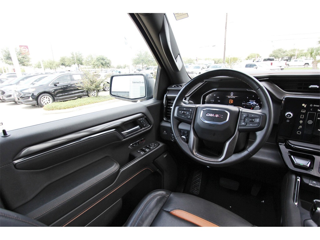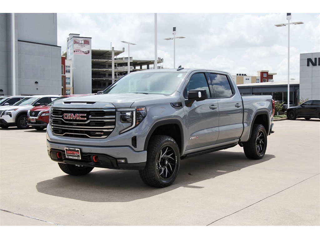 Central Houston Nissan is proud to present you with another True Market Priced Pre-Owned Vehicle. This 2024 GMC Sierra 1500 AT4 is loaded with the following Factory Options: 10-Speed Automatic, 4WD, and Jet Black With Kalahari Accents Leather AT4 Preferred Package (Power Sliding Rear Window w/Rear Defogger and Universal Home Remote), Preferred Equipment Group 4SB (120-Volt Bed Mounted Power Outlet, 120-Volt Interior Power Outlet, 2 Charge/Data USB Ports Inside Center Console, 2 Type-C Charge-Only Rear USB Ports, 2 USB Ports, 220 Amp Alternator, Auto-Locking Rear Differential, Black Chrome Header & Grille Insert Bars, Color-Keyed Carpeting Floor Covering, Deep-Tinted Glass, Electric Rear-Window Defogger, Floor-Mounted Center Console, Front Prem Floor Liners w/Removable Carpet Insert, Front Rain-Sensing Wipers, GMC Connected Access Capable, HD Surround Vision, Heated 2nd Row Outboard Seats, Heated Driver & Front Outboard Passenger Seating, Heavy-Duty Air Filter, Hill Descent Control, Hitch View, In-Vehicle Trailering System App, Integrated Trailer Brake Controller, Keyless Open & Start, LED Cargo Area Lighting, OnStar & GMC Connected Services Capable, Perimeter Lighting, Power Door Locks, Power Front Passenger Windows w/Express Up/Down, Power Front Windows w/Driver Express Up/Down, Power Rake & Telescoping Steering Column, Power Rear Windows w/Express Down, Premium Bose 7-Speaker Sound System, Push Button Start, Rear Cross Traffic Braking, Rear Pedestrian Detection, Rear Prem Floor Liners w/Removable Carpet Insert, Rear Wheelhouse Liners, Red Recovery Hooks, Remote Vehicle Starter System, SiriusXM w/360L, Spray-On Pickup Bedliner w/AT4 Logo, Steering Wheel Audio Controls, Theft Deterrent System (Unauthorized Entry), Trailer Camera Provisions, Trailer Side Blind Zone Alert, Ultrasonic Front & Rear Park Assist, Ventilated Driver & Front Passenger Seats, Wi-Fi Hotspot Capable, and Wireless Charging), Technology Package (Bed View Camera, Multicolor 15" Diagonal Head-Up Display, and Rear Camera Mirror), Trailering Package (Hitch Guidance), 10-Speed Automatic, 4WD, Jet Black With Kalahari Accents Leather, 10-Way Power Driver Seat Adjuster w/Lumbar, 10-Way Power Passenger Seat Adjuster w/Lumbar, 18" x 8.5" Machined Aluminum Wheels, 3.23 Rear Axle Ratio, 4-Wheel Disc Brakes, 7 Speakers, ABS brakes, Air Conditioning, Alloy wheels, AM/FM radio: SiriusXM with 360L, Apple CarPlay/Android Auto, Auto High-beam Headlights, Auto-dimming door mirrors, Auto-dimming Rear-View mirror, Automatic Emergency Braking, Automatic temperature control, Block heater, Brake assist, Buckle to Drive, Bumpers: body-color, Compass, Delay-off headlights, Driver door bin, Driver Memory, Driver vanity mirror, Dual front impact airbags, Dual front side impact airbags, Electronic Stability Control, Engine Block Heater, Following Distance Indicator, Forward Collision Alert, Front anti-roll bar, Front Bucket Seats, Front Center Armrest, Front dual zone A/C, Front fog lights, Front License Plate Kit, Front Pedestrian Braking, Front reading lights, Front wheel independent suspension, Fully automatic headlights, Heated door mirrors, Heated front seats, Heated rear seats, Heated steering wheel, Illuminated entry, IntelliBeam Automatic High Beam On/Off, Lane Keep Assist w/Lane Departure Warning, Low tire pressure warning, Memory seat, Navigation System, Occupant sensing airbag, Off-Road Suspension, Outside temperature display, Overhead airbag, Overhead console, Panic alarm, Passenger door bin, Passenger vanity mirror, Perforated Front Leather Seat Trim, Power door mirrors, Power driver seat, Power passenger seat, Power steering, Power Sunroof, Power windows, Premium audio system: GMC Infotainment System, Radio data system, Radio: Premium GMC Infotainment Audio System, Rain sensing wipers, Rear reading lights, Rear seat center armrest, Rear step bumper, Rear window defroster, Remote keyless entry, Safety Alert Seat, Security system, Speed control, Speed-sensing steering, Spli