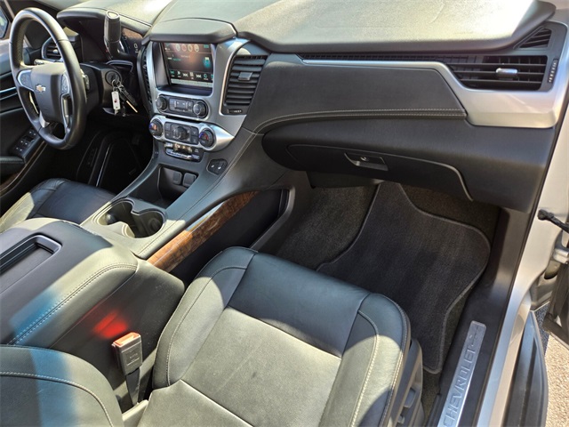 Odometer is 15075 miles below market average!Silver Ice Metallic 2017 Chevrolet Tahoe LT RWD 6-Speed Automatic Electronic with Overdrive EcoTec3 5.3L V8 Black Leather.If you don't drive here, you can't save here!Awards: * JD Power Automotive Performance, Execution and Layout (APEAL) Study, Dependability Study * 2017 KBB.com 12 Best Family Cars * 2017 KBB.com 5-Year Cost to Own Awards * 2017 KBB.com Best Buy Awards * 2017 KBB.com 10 Most Awarded BrandsPrice may not include recon fee. Enhanced Driver Alert Package (Y86) (Forward Collision Alert Sensor Indicator, IntelliBeam Headlamps, Lane Keep Assist, and Low Speed Forward Automatic Braking), License Plate Front Mounting Package, Preferred Equipment Group 1LT (1st & 2nd Row Color-Keyed Carpeted Floor Mats, 2nd Row 60/40 Split-Folding Manual Bench, 3rd Row Manual 60/40 Split-Folding Fold Flat Bench, 4-Wheel Antilock Disc Brakes w/Brake Assist, Auto-Dimming Inside Rear-View Mirror, Black Assist Steps, Bose Premium 9-Speaker System, Color-Keyed Carpeting Floor Covering, Driver Inboard & Front Passenger Airbags, Electronic Cruise Control w/Set & Resume Speed, Enhanced Driver Information Center, Extended-Range Remote Keyless Entry, Floor Console, Leather-Wrapped Steering Wheel, Memory Settings, OnStar Basic Plan For 5 Years, Power Liftgate, Power-Adjustable Accelerator & Brake Pedals, Rear Park Assist w/Audible Warning, Remote Vehicle Start, Roof-Mounted Luggage Rack Side Rails, SiriusXM Satellite Radio, and Universal Home Remote), Premium Smooth Ride Suspension Package, Black Leather, 18" x 8.5" Aluminum Wheels, 2nd Row Manual Bucket Seats, 3.08 Rear Axle Ratio, 3rd row seats: split-bench, 4-Wheel Disc Brakes, 5 12-Volt Auxiliary Power Outlets, 6-Way Power Front Passenger Seat Adjuster, 9 Speakers, ABS brakes, Adjustable pedals, Air Conditioning, Alloy wheels, AM/FM radio: SiriusXM, Apple CarPlay/Android Auto, Auto High-beam Headlights, Auto-dimming Rear-View mirror, Automatic temperature control, Brake assist, Bumpers: body-color, Cargo Net, CD player, Compass, Delay-off headlights, Driver door bin, Driver vanity mirror, Dual front impact airbags, Dual front side impact airbags, Electronic Stability Control, Emergency communication system: OnStar Guidance, Exterior Parking Camera Rear, Front anti-roll bar, Front Bucket Seats, Front Center Armrest, Front dual zone A/C, Front Heated Reclining Bucket Seats, Front reading lights, Front wheel independent suspension, Fully automatic headlights, Garage door transmitter, Heated door mirrors, Heated front seats, Illuminated entry, Leather-Appointed Seat Trim, Low tire pressure warning, Memory seat, NavTraffic, Occupant sensing airbag, Outside temperature display, Overhead airbag, Overhead console, Panic alarm, Passenger door bin, Passenger vanity mirror, Pedal memory, Polished Exhaust Tip, Power door mirrors, Power driver seat, Power passenger seat, Power steering, Power Sunroof, Power windows, Premium audio system: Chevrolet MyLink, Radio: Chevrolet MyLink AM/FM Stereo, Radio: Chevrolet MyLink w/Nav/AM/FM Stereo, Rain sensing wipers, Rear air conditioning, Rear anti-roll bar, Rear reading lights, Rear seat center armrest, Rear window defroster, Rear window wiper, Remote keyless entry, Roof rack: rails only, Security system, Single-Slot CD/MP3 Player, Speed control, Speed-sensing steering, Split folding rear seat, Spoiler, Steering wheel mounted audio controls, Tachometer, Telescoping steering wheel, Tilt steering wheel, Traction control, Trip computer, Variably intermittent wipers, and Voltmeter.