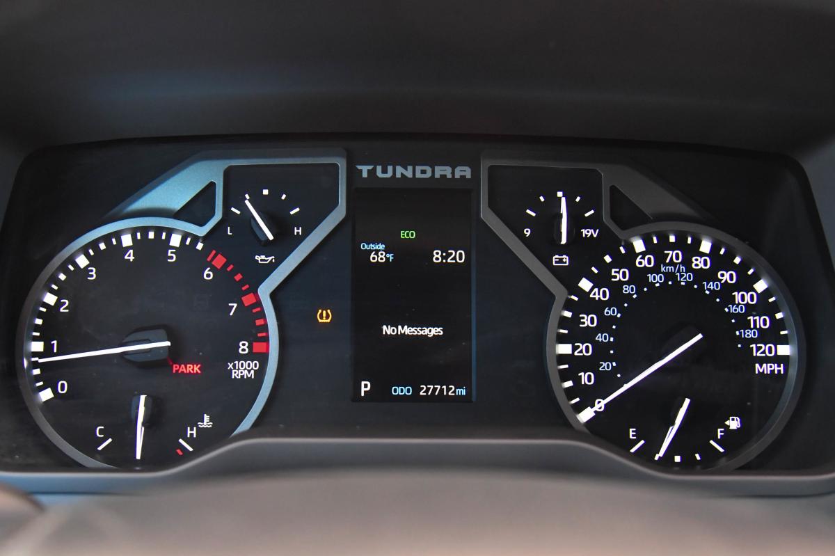 This Toyota Tundra 2WD has a strong Twin Turbo Regular Unleaded V-6 3.4 L/210 engine powering this Automatic transmission. ALG Residual Value Awards, Residual Value Awards. Only 27,697 Miles! Wheels: 20 x 8 Alloy, Wheels w/Machined w/Painted Accents Accents, Vehicle Stability Control (VSC) Electronic Stability Control (ESC).*This Toyota Tundra 2WD Comes Equipped with These Options *Variable Intermittent Wipers, Trip Computer, Transmission: 10-Speed Electronic Controlled Auto -inc: intelligence (ECT-i), sequential shift mode, uphill/downhill shift logic and TOW/HAUL driving modes, Transmission w/Oil Cooler, Trailer Wiring Harness, Tires: P265/60R20, Tire Pressure Monitor System (TPMS) Low Tire Pressure Warning, Tailgate Rear Cargo Access, Streaming Audio, Steel Spare Wheel.
