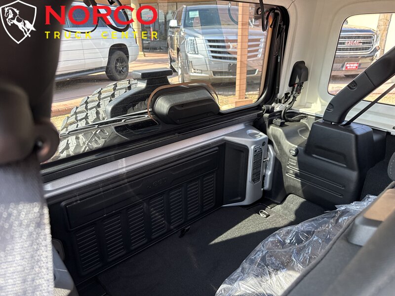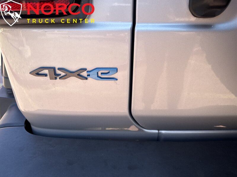 INSTALLED FEATURES: Air filtration, Front air conditioning: automatic climate control, Front air conditioning zones: single, Rear vents: second row, Airbag deactivation: occupant sensing passenger, Front airbags: dual, Side airbags: front, Antenna type: diversity / mast, Auxiliary audio input: Bluetooth / iPod/iPhone / jack / USB, Premium brand: Alpine, Radio: AM/FM / touch screen display / voice operated, Radio data system, Satellite radio: SiriusXM, Speed sensitive volume control, Subwoofer: 1, Total speakers: 8, Watts: 552, ABS: 4-wheel, Braking assist, Electronic brakeforce distribution, Front brake type: ventilated disc, Power brakes, Rear brake type: ventilated disc, Regenerative braking system, Cargo area floor mat: rubber/vinyl, Floor mat material: rubber/vinyl, Floor material: cargo area carpet / carpet, Floor mats: front / rear, Interior accents: metallic-tone, Parking brake trim: urethane, Shift knob trim: urethane, Steering wheel trim: leather, Assist handle: front, Cargo area light, Center console: front console with armrest and storage / locking, Courtesy lights: door, Cruise control, Cupholders: front / illuminated / rear, Multi-function remote: panic alarm / proximity entry system, One-touch windows: 2, Power outlet(s): 12V cargo area / 12V front / 12V rear / USB front / USB-C front, Power steering: variable/speed-proportional, Power windows: lockout button, Push-button start, Reading lights: front / rear, Rearview mirror: manual day/night, Steering wheel: tilt and telescopic, Steering wheel mounted controls: audio / cruise control / multi-function / phone / voice control, Storage: bin / cargo tie-down anchors and hooks / door pockets / front seatback, Tool kit, Vanity mirrors: dual illuminating, Door handle color: black, Fender lip moldings: black, Front bumper color: black, Grille color: black, Mirror color: black, Rear bumper color: black, Rear trunk/liftgate: side-hinged, Rocker panel color: body-color, Skid plate(s): front / rear, Window trim: black, Connected in-car apps: Google POIs / Google search, Infotainment: Uconnect, Infotainment screen size: 7 in., Smartphone integration: Android Auto / Apple CarPlay, Clock, Compass, Customizable instrument cluster, Digital odometer, External temperature display, Fuel economy display: MPG / range, Gauge: tachometer, Instrument cluster screen size: 7 in., Multi-function display, Trip odometer, Warnings and reminders: coolant temperature warning / lamp failure / low battery / low fuel level / low oil pressure, Daytime running lights: LED, Exterior entry lights: approach lamps, Front fog lights: LED, Headlights: auto delay off / auto on/off / LED, Side mirror adjustments: manual folding / power, Side mirrors: heated, 4WD selector: manual hi-lo, 4WD type: part time w/ on demand setting, Auto start/stop, Auxiliary oil cooler, Battery: maintenance-free, Battery rating: 600 CCA, Battery saver, Drive mode selector, Electric charge cord: 240 volt, Electric motor battery type: lithium ion, Electric motor charger connector: SAE J1772, Electric motor charging time (240V): 2.4 hours, Electric motor miles per charge: 21, Emissions: 50 state, EV battery capacity: 17.3 kWh, EV on-board charger rating: 7.2 kW, Limited slip differential: rear, Removable roof: soft top, Camera system: rearview, Child safety door locks, Child seat anchors: LATCH system, Crumple zones: front / rear, Pedestrian safety sound generation, Rearview monitor: in dash, Emergency locking retractors: front, Front seatbelts: 3-point, Rear seatbelts: 3-point, Seatbelt force limiters: front, Seatbelt pretensioners: front, Seatbelt warning sensor: front, Driver seat manual adjustments: 6 / height / lumbar / reclining, Front headrests: 2 / adjustable, Front seat type: bucket, Passenger seat manual adjustments: 4 / reclining, Rear headrests: 3 / foldable, Rear seat folding: split, Rear seat type: 60-40 split bench, Upholstery: cloth, Anti-theft system: alarm / vehicle immobilizer, Power door locks: anti-lockout / auto-locking, Hill holder control, Off-road driving assist: hill ascent / hill descent, Roll stability control, Stability control, Traction control, Trailer stability control, Front shock type: twin-tube gas, Front spring type: coil, Front stabilizer bar, Front suspension classification: solid live axle, Front suspension type: multi-link, Rear shock type: twin-tube gas, Rear spring type: coil, Rear stabilizer bar, Rear suspension classification: solid live axle, Rear suspension type: trailing arms, Driver assistance app: roadside assistance, Electronic messaging assistance: voice operated / with read function, Hands-free phone call integration: voice operated, Smart device app compatibility: SiriusXM Guardian, Wi-Fi: hotspot, Wireless data link: Bluetooth, Tow hooks: front / rear, Spare tire mount location: outside, Spare tire size: full-size matching, Spare wheel type: aluminum alloy, Tire Pressure Monitoring System, Wheels: painted aluminum alloy, Front wipers: variable intermittent, Power windows: safety reverse, Rear privacy glass, Solar-tinted glass, Tinted glass: windshield