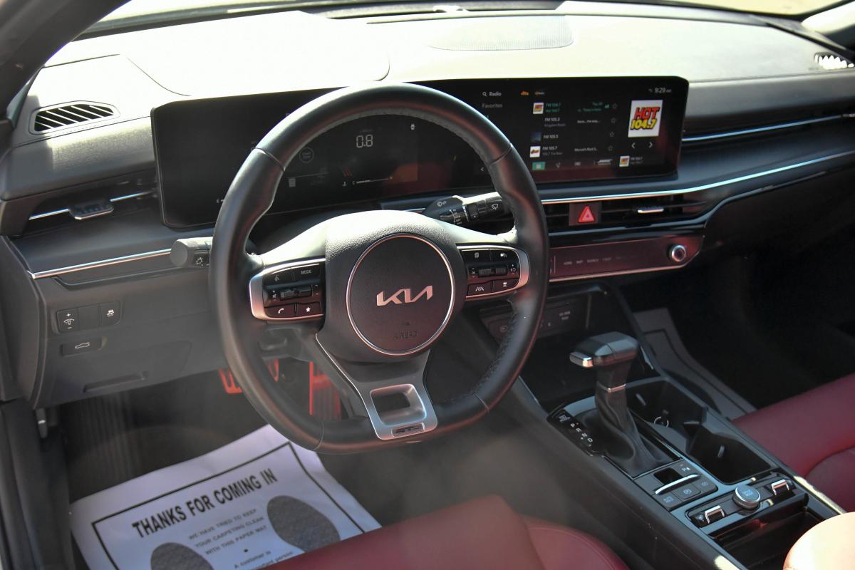 Scores 36 Highway MPG and 25 City MPG! This Kia K5 boasts a Regular Unleaded I-4 2.5 L/152 engine powering this Automatic transmission. WOLF GRAY, GT-LINE RED INTERIOR PACKAGE, GT-LINE PREMIUM PACKAGE -inc: Bose Premium Audio, 12 speakers including center speaker, subwoofer and external amplifier, Active Sound Design, LED Interior Lighting, Panoramic Sunroof.*This Kia K5 Features the Following Options *Window Grid Antenna, Wheels: 18 x 7.5J Gloss Black Machined Finish Alloy -inc: diamond cutting pattern, Variable Intermittent Wipers, Turn-By-Turn Navigation Directions, Trunk Rear Cargo Access, Trip Computer, Transmission: 8-Speed Automatic -inc: drive mode select system, Transmission w/Sequential Shift Control, Tires: P235/45R18 AS, Tire Specific Low Tire Pressure Warning.