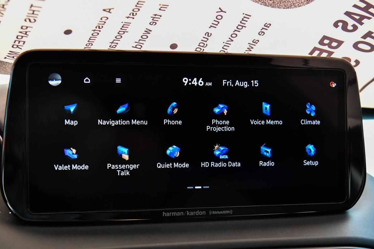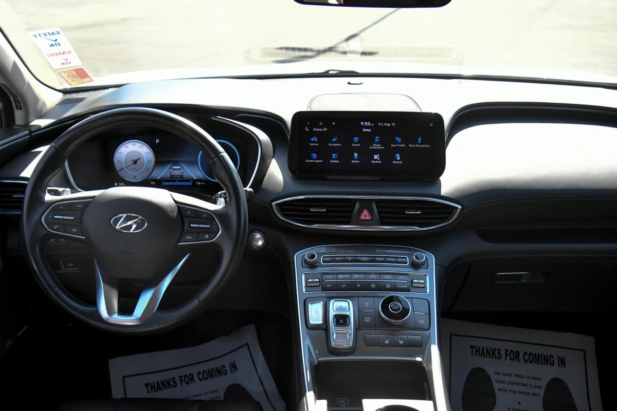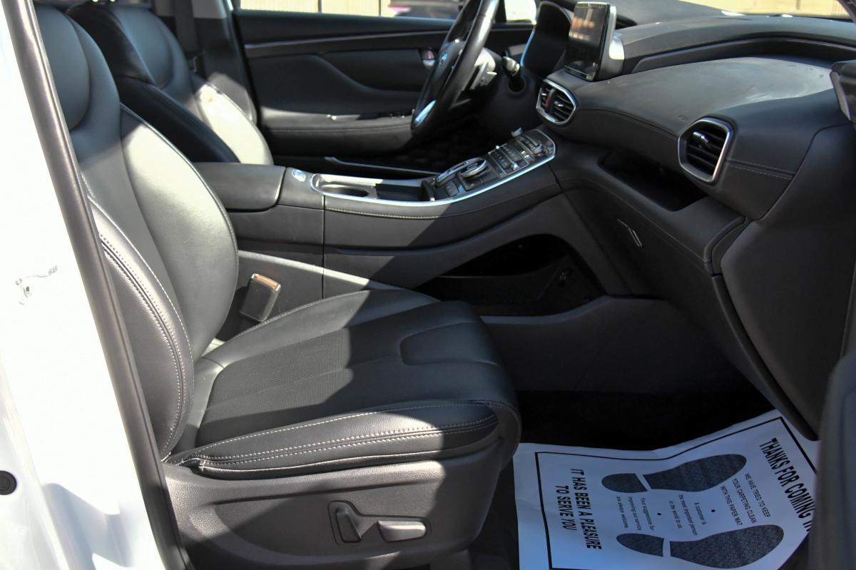 Boasts 28 Highway MPG and 25 City MPG! This Hyundai Santa Fe delivers a Regular Unleaded I-4 2.5 L/152 engine powering this Automatic transmission. SERENITY WHITE PEARL, PREMIUM PACKAGE -inc: Option Group 02, LED Taillights, Harman Kardon Audio System, 12 speakers including subwoofer, external amplifier, Clari-Fi music restoration technology and Quantum Logic surround, 12.3 LCD Multi-Information Display, Power Release 2nd Row Seats, power folding, unfolding and reclining, Manual Rear Side Sunshades, Silver Front Grille, Surround View Monitor, Chrome Interior Accents, chrome lower door garnish accent and chrome front and rear lower skid plate accents, 8-Way Power Passenger Seat, LED Interior Lights, Acoustic-Laminated Front Side Windows, Chrome Front & Rear Bumper Accents, Blind-Spot View Monitor, Auto-Dimming Rearview Mirror, HomeLink, Panoramic Sunroof, BLACK, H-TEX LEATHERETTE SEAT TRIM.*This Hyundai Santa Fe Comes Equipped with These Options *Voice Activated Dual Zone Front Automatic Air Conditioning, Variable Intermittent Wipers, Valet Function, Trunk/Hatch Auto-Latch, Trip Computer, Transmission: 8-Speed Automatic w/SHIFTRONIC -inc: shift-by-wire and drive mode select (comfort, sport, smart), Transmission w/Driver Selectable Mode, Towing Equipment -inc: Trailer Sway Control, Tires: 235/60R18, Tire Specific Low Tire Pressure Warning.