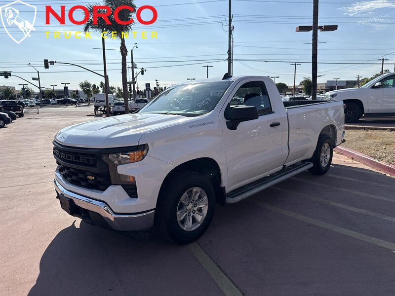 INSTALLED FEATURES: Air filtration, Front air conditioning, Front air conditioning zones: single, Airbag deactivation: occupant sensing passenger, Front airbags: dual, Side airbags: front, Side curtain airbags: front, Antenna type: mast, Auxiliary audio input: Bluetooth / iPod/iPhone / USB, Radio: AM/FM / touch screen display, Radio data system, Speed sensitive volume control, Total speakers: 2, ABS: 4-wheel, Braking assist, Electronic brakeforce distribution, Electronic parking brake: auto off, Front brake type: ventilated disc, Power brakes, Rear brake type: ventilated disc, Armrests: front center, Floor material: rubber/vinyl, Steering wheel trim: urethane, Assist handle: front, Capless fuel filler system, Cupholders: front, Multi-function remote: keyless entry / panic alarm, One-touch windows: 2, Power outlet(s): 12V front / USB front, Power steering, Push-button start, Reading lights: front, Rearview mirror: manual day/night, Steering wheel: tilt, Storage: door pockets / in seat cushion, Sun visors, Active grille shutters, Bumper detail: rear step, Door handle color: black, Front bumper color: black, Grille color: black, Mirror color: black, Pickup bed light, Rear bumper color: black, Tailgate: removable, Window trim: black, Connected in-car apps: Google POIs / Google search, Infotainment: Chevrolet Infotainment System, Infotainment screen size: 7 in., Smartphone integration: wireless Android Auto / wireless Apple CarPlay, Clock, Compass, Digital odometer, External temperature display, Fuel economy display: MPG / range, Gauge: oil pressure / tachometer, Instrument cluster screen size: 3.5 in., Multi-function display, Powertrain hour meter, Trip odometer, Warnings and reminders: coolant temperature warning / lamp failure / low battery / low fuel level / low oil pressure / maintenance due, Daytime running lights, Headlights: auto delay off / auto high beam dimmer / auto on/off / halogen / wiper activated, Side mirror adjustments: manual folding / power, Side mirrors: heated, Auto start/stop, Battery: heavy duty / maintenance-free, Battery rating: 730 CCA, Battery saver, Automatic emergency braking: front / front pedestrian, Camera system: rearview, Child seat anchors, Lane deviation sensors, Lane keeping assist, Pre-collision warning system: audible warning / pedestrian detection / visual warning, Programmable safety key, Rearview monitor: in dash, Emergency locking retractors: front, Front seatbelts: 3-point, Seatbelt pretensioners: front, Seatbelt warning sensor: front, Driver seat manual adjustments: 4 / reclining, Front headrests: 2 / adjustable, Front seat type: 40-20-40 split bench, Passenger seat manual adjustments: 4 / reclining, Upholstery: vinyl, Anti-theft system: vehicle immobilizer, Power door locks: anti-lockout / auto-locking, Hill holder control, Roll stability control, Stability control, Traction control, Trailer stability control, Front shock type: twin-tube gas, Front spring type: coil, Front stabilizer bar: diameter 33 mm, Front struts, Front suspension classification: independent, Front suspension type: upper and lower control arms, Rear shock type: twin-tube gas, Rear spring type: leaf, Rear suspension classification: solid live axle, Rear suspension type: multi-leaf, Electronic messaging assistance: voice operated / with read function, Hands-free phone call integration: voice operated, Satellite communications: OnStar / voice guided directions, Smart device app compatibility: Amazon Alexa / myChevrolet with Connected Access, Smart device app function: engine start / horn/light operation / lock operation / maintenance status / vehicle location, Wi-Fi: hotspot, Wireless data link: Bluetooth, Pickup bed cargo management: tie-down anchors, Tow/Haul mode, Spare tire mount location: underbody, Spare tire size: full-size, Spare wheel type: steel, Tire Pressure Monitoring System, Wheel locks: spare only, Wheels: painted steel, Front wipers: variable intermittent, Power windows: safety reverse, Solar-tinted glass