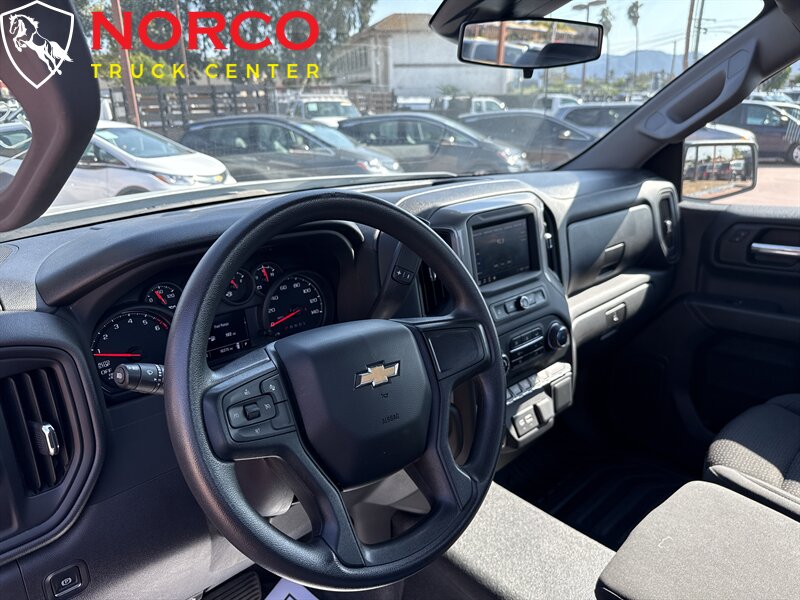 INSTALLED FEATURES: Air filtration, Front air conditioning, Front air conditioning zones: single, Airbag deactivation: occupant sensing passenger, Front airbags: dual, Side airbags: front, Side curtain airbags: front, Antenna type: mast, Auxiliary audio input: Bluetooth / iPod/iPhone / USB, Radio: AM/FM / touch screen display, Radio data system, Speed sensitive volume control, Total speakers: 2, ABS: 4-wheel, Braking assist, Electronic brakeforce distribution, Electronic parking brake: auto off, Front brake type: ventilated disc, Power brakes, Rear brake type: ventilated disc, Armrests: front center, Floor material: rubber/vinyl, Steering wheel trim: urethane, Assist handle: front, Capless fuel filler system, Cupholders: front, Multi-function remote: keyless entry / panic alarm, One-touch windows: 2, Power outlet(s): 12V front / USB front, Power steering, Push-button start, Reading lights: front, Rearview mirror: manual day/night, Steering wheel: tilt, Storage: door pockets / in seat cushion, Sun visors, Active grille shutters, Bumper detail: rear step, Door handle color: black, Front bumper color: black, Grille color: black, Mirror color: black, Pickup bed light, Rear bumper color: black, Tailgate: removable, Window trim: black, Connected in-car apps: Google POIs / Google search, Infotainment: Chevrolet Infotainment System, Infotainment screen size: 7 in., Smartphone integration: wireless Android Auto / wireless Apple CarPlay, Clock, Compass, Digital odometer, External temperature display, Fuel economy display: MPG / range, Gauge: oil pressure / tachometer, Instrument cluster screen size: 3.5 in., Multi-function display, Powertrain hour meter, Trip odometer, Warnings and reminders: coolant temperature warning / lamp failure / low battery / low fuel level / low oil pressure / maintenance due, Daytime running lights, Headlights: auto delay off / auto high beam dimmer / auto on/off / halogen / wiper activated, Side mirror adjustments: manual folding / power, Side mirrors: heated, Auto start/stop, Battery: heavy duty / maintenance-free, Battery rating: 730 CCA, Battery saver, Automatic emergency braking: front / front pedestrian, Camera system: rearview, Child seat anchors, Lane deviation sensors, Lane keeping assist, Pre-collision warning system: audible warning / pedestrian detection / visual warning, Programmable safety key, Rearview monitor: in dash, Emergency locking retractors: front, Front seatbelts: 3-point, Seatbelt pretensioners: front, Seatbelt warning sensor: front, Driver seat manual adjustments: 4 / reclining, Front headrests: 2 / adjustable, Front seat type: 40-20-40 split bench, Passenger seat manual adjustments: 4 / reclining, Upholstery: vinyl, Anti-theft system: vehicle immobilizer, Power door locks: anti-lockout / auto-locking, Hill holder control, Roll stability control, Stability control, Traction control, Trailer stability control, Front shock type: twin-tube gas, Front spring type: coil, Front stabilizer bar: diameter 33 mm, Front struts, Front suspension classification: independent, Front suspension type: upper and lower control arms, Rear shock type: twin-tube gas, Rear spring type: leaf, Rear suspension classification: solid live axle, Rear suspension type: multi-leaf, Electronic messaging assistance: voice operated / with read function, Hands-free phone call integration: voice operated, Satellite communications: OnStar / voice guided directions, Smart device app compatibility: Amazon Alexa / myChevrolet with Connected Access, Smart device app function: engine start / horn/light operation / lock operation / maintenance status / vehicle location, Wi-Fi: hotspot, Wireless data link: Bluetooth, Pickup bed cargo management: tie-down anchors, Tow/Haul mode, Spare tire mount location: underbody, Spare tire size: full-size, Spare wheel type: steel, Tire Pressure Monitoring System, Wheel locks: spare only, Wheels: painted steel, Front wipers: variable intermittent, Power windows: safety reverse, Solar-tinted glass