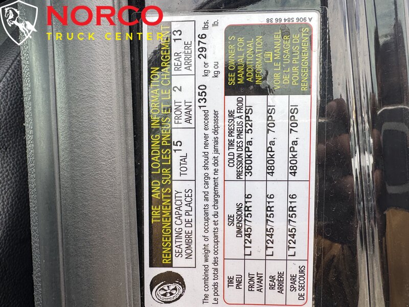 INSTALLED FEATURES: Air filtration, Front air conditioning, Front air conditioning zones: single, Rear air conditioning, Rear air conditioning zones: single, Rear vents: third row, Airbag deactivation: occupant sensing passenger, Front airbags: dual, Side airbags: front, Side curtain airbags: front, Antenna type: mast, Auxiliary audio input: Bluetooth / USB, Radio: AM/FM, Radio data system, Total speakers: 13, ABS: 4-wheel, Brake drying, Braking assist, Electronic brakeforce distribution, Emergency braking preparation, Front brake type: ventilated disc, Power brakes, Rear brake type: ventilated disc, Armrests: dual front / rear outboard seats, Floor material: rubber/vinyl, Steering wheel trim: urethane, Assist handle: front / rear, Cargo area light, Cupholders: front / rear, Footwell lights, Multi-function remote: keyless entry, One-touch windows: 1, Overhead console: front, Power outlet(s): 12V cargo area / 12V front / USB-C front, Power steering: variable/speed-proportional, Push-button start, Reading lights: front, Rearview mirror: manual day/night, Steering wheel: tilt and telescopic, Steering wheel mounted controls: audio / paddle shifter, Storage: accessory hook / cargo net / cargo tie-down anchors and hooks / door pockets / front seatback / lockbox / under front seats, Sun visors, Body side moldings: black, Door handle color: black, Front bumper color: black, Grille color: black, Mirror color: black, Mudguards: front / rear, Rear bumper color: black, Rear trunk/liftgate: barn, Side door type: passenger-side manual sliding, Window trim: black, Infotainment screen size: 3 in., Clock, Digital odometer, External temperature display, Fuel economy display: MPG / range, Gauge: tachometer, Instrument cluster screen size: 3.5 in., Multi-function display, Trip odometer, Warnings and reminders: low fuel level / maintenance due, Daytime running lights, Headlights: auto delay off / auto on/off / halogen, Side mirror adjustments: manual folding / power, Alternator: 220 amps, Battery: AGM / maintenance-free, Battery rating: 720 CCA, OEM roof height: high, Camera system: rearview, Child safety door locks, Child seat anchors: LATCH system, Crumple zones: front / rear, Impact sensor: post-collision safety system, Rearview monitor: in mirror, Emergency locking retractors: front, Fifth row seatbelts: 3-point, Fourth row seatbelts: 3-point, Front seatbelts: 3-point, Rear seatbelts: 3-point, Seatbelt force limiters: front, Seatbelt pretensioners: front, Seatbelt warning sensor: front, Third row seatbelts: 3-point, Driver seat manual adjustments: 4 / height / reclining, Fifth row headrests: 4, Fifth row seat type: bench, Fourth row headrests: 3, Fourth row seat type: bench, Front headrests: 2 / adjustable, Front seat type: bucket, Passenger seat manual adjustments: 4 / height / reclining, Rear headrests: 3 / adjustable, Rear seat manual adjustments: reclining, Rear seat type: bench, Third row headrests: 3 / adjustable, Third row seat type: bench, Upholstery: cloth, Anti-theft system: vehicle immobilizer, Power door locks: auto-locking, Crosswind stabilization, Hill holder control, Roll stability control, Stability control, Traction control, Front shock type: gas, Front spring type: transverse leaf, Front stabilizer bar, Front suspension classification: independent, Front suspension type: lower control arms, Rear shock type: gas, Rear spring type: leaf, Rear stabilizer bar, Rear suspension classification: solid live axle, Rear suspension type: multi-leaf, Hands-free phone call integration, Wi-Fi: connection only, Wireless data link: Bluetooth, Tow hooks: rear, Trailer wiring: 4-pin / 7-pin, Spare tire mount location: underbody, Spare tire size: full-size, Spare wheel type: steel, Tire Pressure Monitoring System, Wheel covers: partial, Wheels: steel, Front wipers: variable intermittent, Laminated glass: rear side, Power windows: front, Rear privacy glass, Solar-tinted glass: front, Window defogger: rear