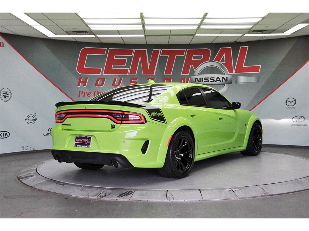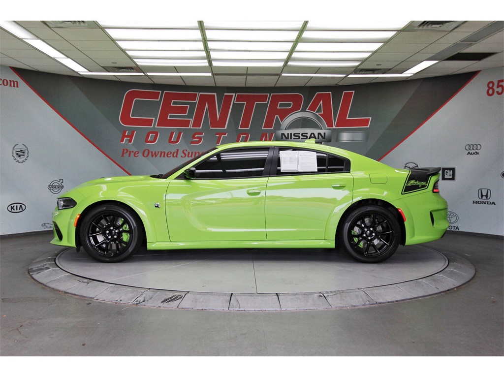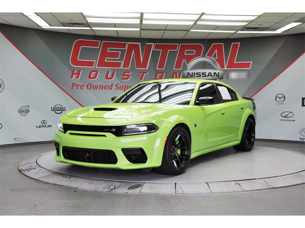 Central Houston Nissan is proud to present you with another True Market Priced Pre-Owned Vehicle. This 2023 Dodge Charger R/T Scat Pack Widebody is loaded with the following Factory Options: Black Cloth Navigation & Travel Group (1-Yr SiriusXM Guardian Trial, 2-Piece Shark Fin Antenna, 4G LTE Wi-Fi Hot Spot, 5-Year SiriusXM Traffic Service, 5-Year SiriusXM Travel Link Service, 8.4" Touchscreen Display, Apple CarPlay, Compass Gauge, For Details, Visit DriveUconnect.com, Google Android Auto, GPS Antenna Input, GPS Navigation, HD Radio, Integrated Center Stack Radio, Integrated Voice Command w/Bluetooth, Media Hub (2 USB, AUX), Radio: Uconnect 4C Nav w/8.4" Display, SiriusXM Traffic Plus, SiriusXM Travel Link, and USB Host Flip), Plus Group (Auto Adjust In Reverse Exterior Mirrors, Auto-Dimming Exterior Driver Mirror, Black-Edged Premium Floormats, Blind Spot & Cross Path Detection, Blind Spot Memory/Power/Heat Mirror, Driver & Passenger Lower LED Lamps, Exterior Mirrors Courtesy Lamps, Exterior Mirrors w/Heating Element, Front Overhead LED Lighting, Heated Front Seats, Power 2-Way Driver Lumbar Adjust, Power 2-Way Passenger Lumbar Adjust, Power Front Driver/Passenger Seats, Power Tilt/Telescope Steering Column, Premium-Stitched Dash Panel, Radio/Driver Seat/Mirrors Memory, Rear Armrest w/Cupholder Seat, Scat Pack Logo Nappa/Alcantara Seat, and Ventilated Front Seats), Quick Order Package 21V Scat Pack Widebody (All Speed Traction Control, Body Color Fender Flares, Brembo 6-Pot Fixed Front Caliper Brakes, Flat-Bottom Steering Wheel, Performance Shift Indicator, Wheels: 20" x 11" Carbon Black Aluminum, and Widebody Competition Suspension), Swinger Special Edition (Aluminum Interior Bezel w/Wood Look, Basil Green IP/Console/Door Stitching, Gold School Bee Fender Badge, Gold School Scat Pack/Bee Decklid Badge, Gold School Scat Pack/Bee Grille Badge, Nappa Alcantara Seat Trim w/Green Stitch, Rhombi 2-Pc Wheel Center Cap, Satin Black Dodge Tail Lamp Badge, Swinger Exterior Vinyl Graphics, Unique IP Badge, and Wheels: 20" x 11.0" Gold School), Technology Group (Adaptive Cruise Control w/Stop, Advanced Brake Assist, Auto High Beam Headlamp Control, Full Speed FWD Collision Warn Plus, Lane Departure Warning Plus, and Rain Sensitive Windshield Wipers), Widebody Package, Black Cloth, 4-Wheel Disc Brakes, 6 Speakers, ABS brakes, Adaptive Damping Suspension (DISC), Air Conditioning, Alloy wheels, AM/FM radio: SiriusXM, Anti-whiplash front head restraints, Apple CarPlay/Android Auto, Auto-dimming Rear-View mirror, Automatic temperature control, Brake assist, Bumpers: body-color, Cloth Performance Seats w/Heat, Compass, Delay-off headlights, Driver door bin, Driver vanity mirror, Dual front impact airbags, Dual front side impact airbags, Electronic Stability Control, Emergency communication system: SiriusXM Guardian, Four wheel independent suspension, Front anti-roll bar, Front Bucket Seats, Front Center Armrest, Front dual zone A/C, Front fog lights, Front reading lights, Fully automatic headlights, Garage door transmitter: HomeLink, Heated door mirrors, Heated front seats, Heated steering wheel, Illuminated entry, Knee airbag, Leather Shift Knob, Low tire pressure warning, Occupant sensing airbag, Outside temperature display, Overhead airbag, Overhead console, Panic alarm, ParkView Rear Back-Up Camera, Passenger door bin, Passenger vanity mirror, Power door mirrors, Power driver seat, Power steering, Power windows, Radio: Uconnect 4C w/8.4" Display, Rear anti-roll bar, Rear reading lights, Rear seat center armrest, Rear window defroster, Remote keyless entry, Security system, Speed control, Speed-Sensitive Wipers, Split folding rear seat, Spoiler, Sport steering wheel, Steering wheel mounted audio controls, Tachometer, Telescoping steering wheel, Tilt steering wheel, Traction control, Trip computer, Variably intermittent wipers, and Wheels: 20" x 9" Lo Gloss Granite Crystal!!Central Houston Nissan is more than just your typical car dealer