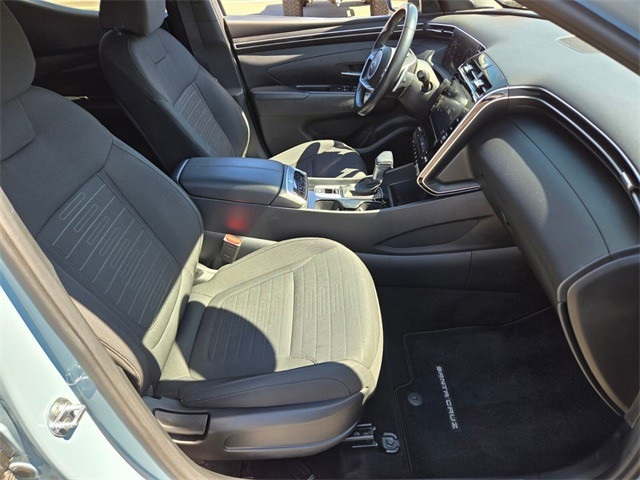 Priced below KBB Fair Purchase Price!19/27 City/Highway MPGBlue Stone 2022 Hyundai Santa Cruz SEL Premium AWD Shiftronic 2.5L I4If you don't drive here, you can't save here!Price may not include recon fee. Option Group 01, 18" x 7.5J Alloy Wheels, 4-Wheel Disc Brakes, 4.846 Axle Ratio, 6 Speakers, ABS brakes, Air Conditioning, Alloy wheels, AM/FM radio: SiriusXM, Apple CarPlay & Android Auto, Auto High-beam Headlights, Auto-dimming Rear-View mirror, Auto-leveling suspension, Automatic temperature control, Bed Cargo Net, Brake assist, Bumpers: body-color, Carpeted Floor Mats, Delay-off headlights, Driver door bin, Driver vanity mirror, Dual front impact airbags, Dual front side impact airbags, Electronic Stability Control, Emergency communication system: Blue Link Connected Car Service (3-year complimentary subscription), Envelop Cargo Net, Exterior Parking Camera Rear, First Aid Kit, Four wheel independent suspension, Front anti-roll bar, Front Bucket Seats, Front Center Armrest, Front dual zone A/C, Front reading lights, Fully automatic headlights, Garage door transmitter: HomeLink, Heated door mirrors, Heated Front Bucket Seats, Heated front seats, Illuminated entry, Leather Shift Knob, Low tire pressure warning, Mudguards, Occupant sensing airbag, Outside temperature display, Overhead airbag, Overhead console, Panic alarm, Passenger door bin, Passenger vanity mirror, Power door mirrors, Power driver seat, Power moonroof, Power steering, Power windows, Radio data system, Radio: AM/FM Audio System, Rear anti-roll bar, Rear step bumper, Rear window defroster, Remote keyless entry, Security system, Speed control, Speed-sensing steering, Split folding rear seat, Spoiler, Stain & Odor Resistant Cloth Seat Trim, Steering wheel mounted audio controls, Tachometer, Telescoping steering wheel, Tilt steering wheel, Traction control, Trip computer, Turn signal indicator mirrors, Variably intermittent wipers, and Wheel Locks.