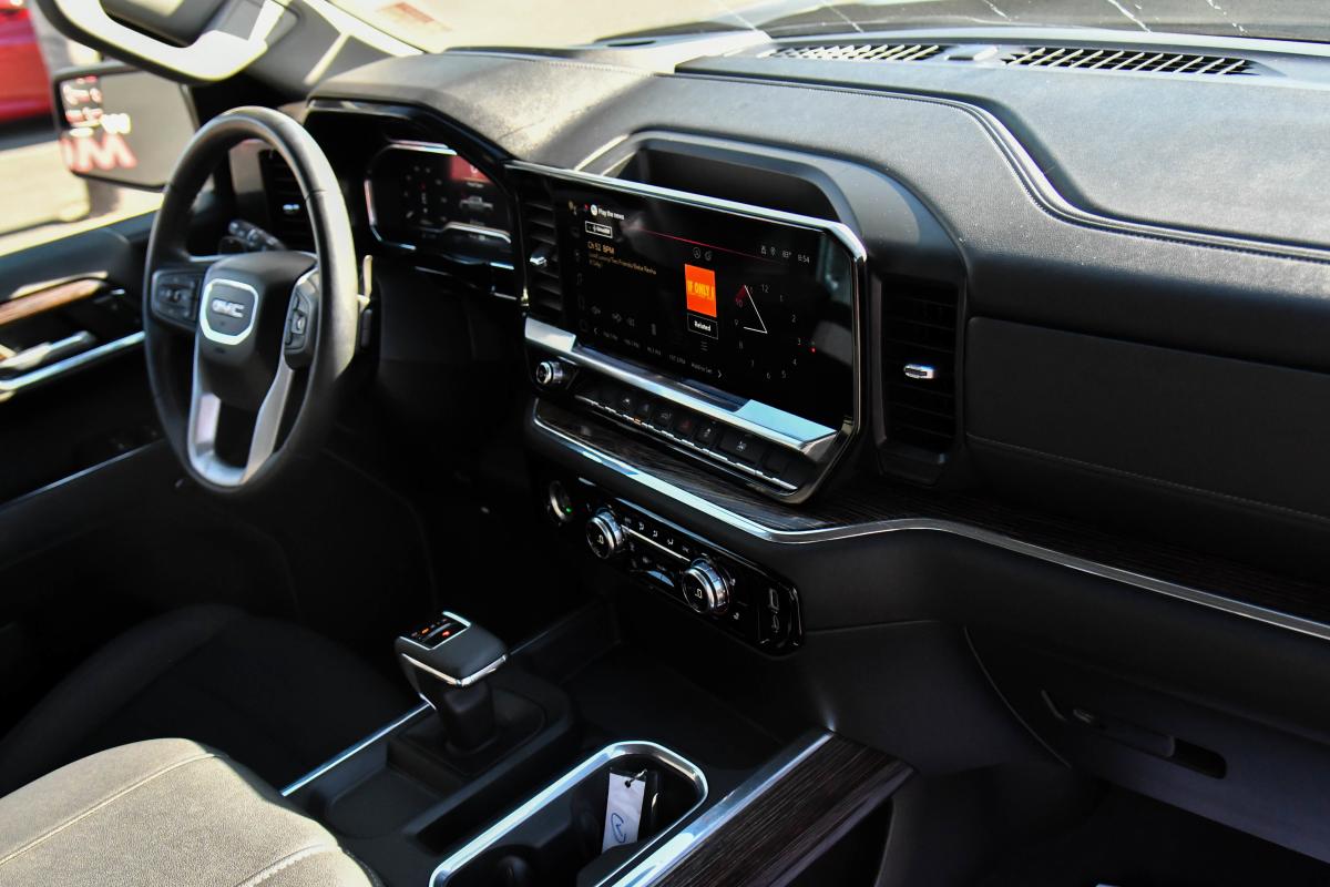 This GMC Sierra 1500 has a strong Turbocharged Diesel I6 3.0L/ engine powering this Automatic transmission. WIRELESS CHARGING Beginning October 26, 2022 through November 20, 2022, certain vehicles will be forced to include (00C) Not Equipped with Wireless Charging, which removes Wireless Charging. See dealer for details or the window label for the features on a specific vehicle.), USB PORTS, 2, CHARGE/DATA PORTS LOCATED INSIDE CENTER CONSOLE, TRANSMISSION, 10-SPEED AUTOMATIC WITH ELECTRONIC PRECISION SHIFT, ELECTRONICALLY CONTROLLED with overdrive, tow/haul mode and steering column paddle shifters. Includes Cruise Grade Braking and Powertrain Grade Braking.*This GMC Sierra 1500 Comes Equipped with These Options *TIRES, 275/60R20 ALL-SEASON, BLACKWALL (STD), SEATS, FRONT BUCKET with center console (Includes (D07) center console and (K4C) Wireless charging., REAR AXLE, 3.23 RATIO, ONYX BLACK, NOT EQUIPPED WITH STEERING COLUMN LOCK, SEE DEALER FOR DETAILS (Beginning with start of production, vehicles will be forced to include (R7N) Not Equipped with Steering Column Lock, which removes Steering Column Lock. See dealer for details.), LICENSE PLATE KIT, FRONT, JET BLACK, CLOTH SEAT TRIM, GVWR, 7200 LBS. (3266 KG), ENGINE, DURAMAX 3.0L TURBO-DIESEL I6 (305 hp [227 kW] @ 3750 rpm, 495 lb-ft of torque [671 Nm] @ 2750 rpm) (Includes (KW5) 220-amp alternator and (K05) engine block heater., ENGINE BLOCK HEATER.