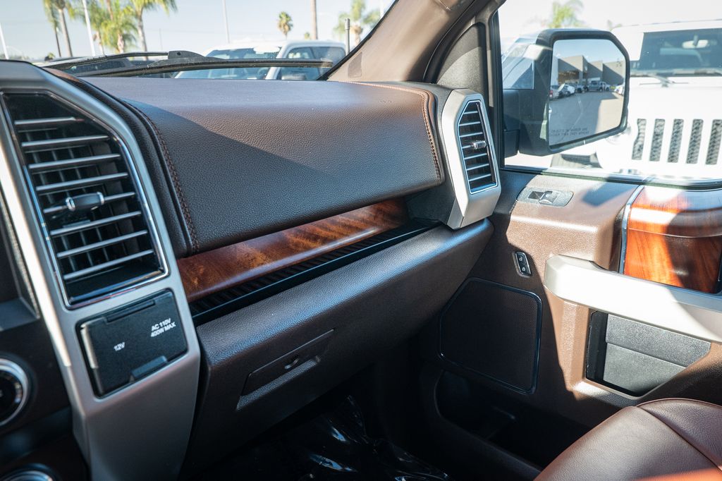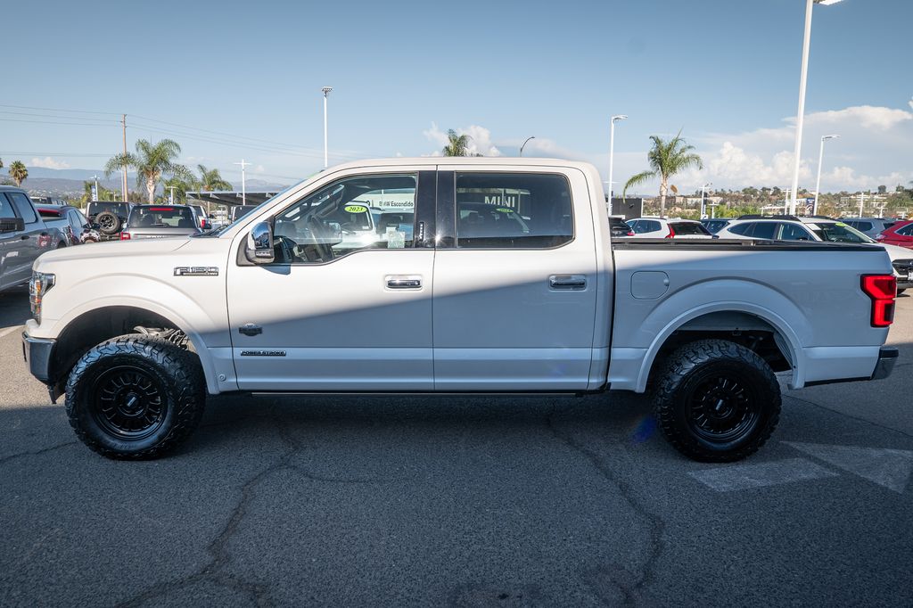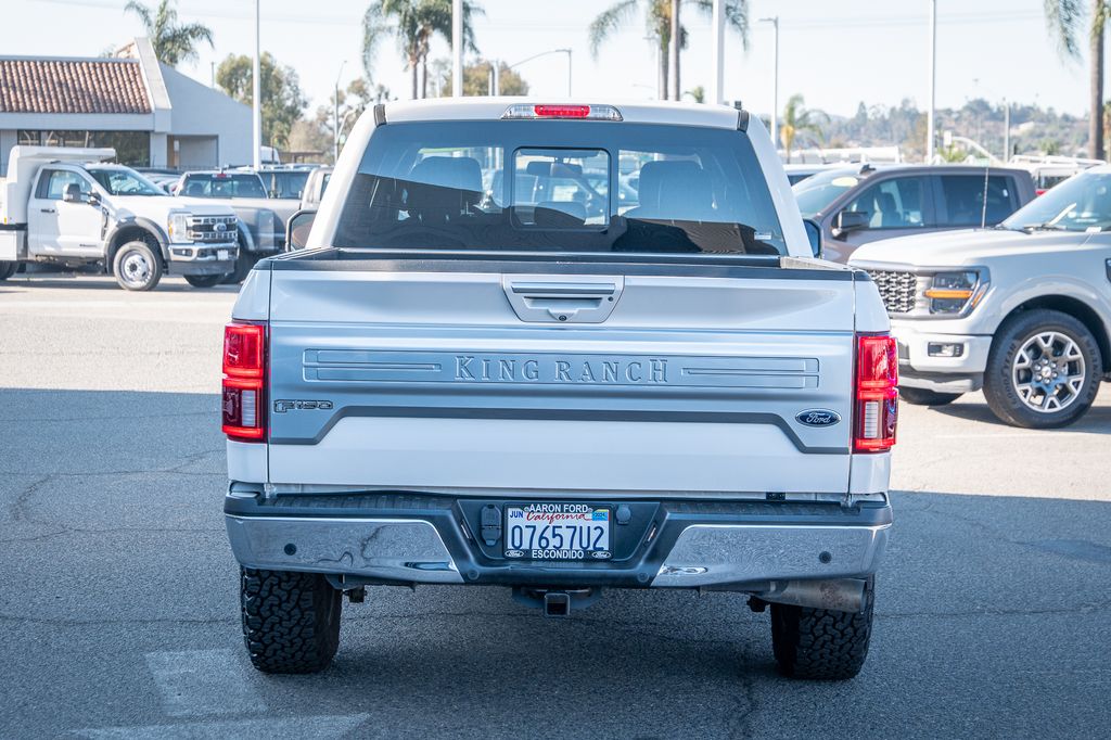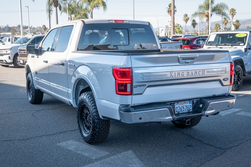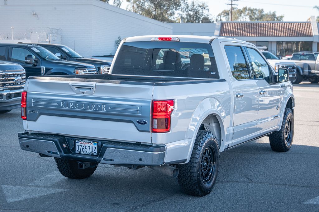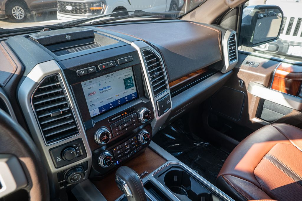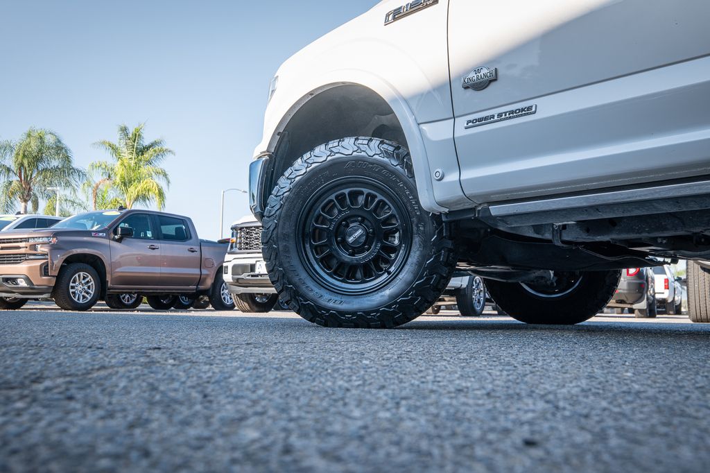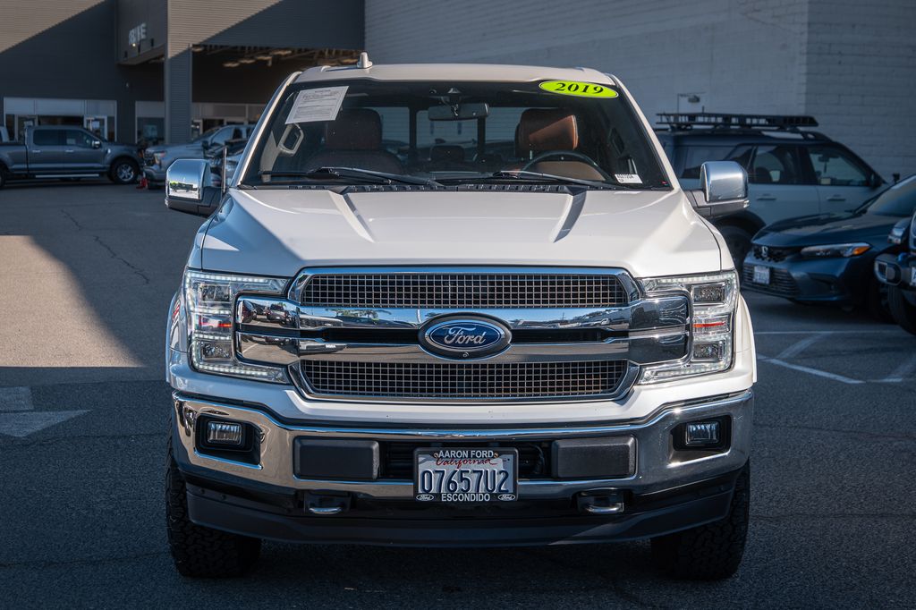 White Platinum 2019 Ford F-150 King Ranch 4WD 10-Speed Automatic 3.0L Power Stroke V6 Turbo Diesel CUSTOM WHEELS AND TIRES, 4WD, 20" Machined-Aluminum Wheels, 4x4 FX4 Off-Road Bodyside Decal, Active Park Assist, BLIS Blind Spot Information System, Bright Belt Moldings, Chrome Door Handles w/Body-Color Strap, Chrome Front & Rear Bumpers, Chrome Skull Caps on Exterior Mirrors, Class IV Trailer Hitch Receiver, Electronic Locking w/3.31 Axle Ratio, Engine Oil Cooler, Equipment Group 601A Luxury, FX4 Off-Road Package, Genuine wood dashboard insert, Genuine wood door panel insert, GVWR: 7,050 lbs Payload Package, Heated steering wheel, Hill Descent Control, Inflatable Rear Safety Belts, King Ranch Chrome Appearance Package, King Ranch Leather Bucket Seats, King Ranch Monochromatic Paint Package, Lane-Keeping System, Multi-Contour Driver & Passenger Seats, Navigation System, Off-Road Tuned Front Shock Absorbers, Painted Body-Color Wheellip Molding, Power-Deployable Running Boards, Pro Trailer Backup Assist, Tailgate Step w/Tailgate Lift Assist, Technology Package, Tough Bed Spray-In Bedliner, Trailer Tow Package, Tray Style Floor Liner, Twin Panel Moonroof, Upgraded Front Stabilizer Bar, Wheels: 20" Chrome-Like PVD.