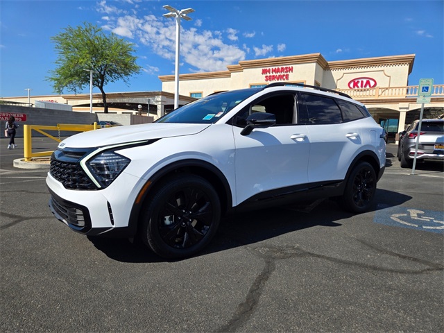 CARFAX One-Owner.Odometer is 2473 miles below market average!23/27 City/Highway MPGGlacial White Pearl 2025 Kia Sportage X-Line AWD 8-Speed Automatic I4 AWD.If you don't drive here, you can't save here!Price may not include recon fee. Premium Package (Illuminated Dual Vanity Mirrors, LED Interior Lighting, Panoramic Sunroof, and Smart Power Liftgate), AWD, 4-Wheel Disc Brakes, 6 Speakers, ABS brakes, Air Conditioning, Alloy wheels, AM/FM radio: SiriusXM, Apple CarPlay & Android Auto, Auto High-beam Headlights, Automatic temperature control, Brake assist, Bumpers: body-color, Cargo Cover, Carpet Floor Mats X-Line, Compass, Cross Bars X-Line, Delay-off headlights, Driver door bin, Driver vanity mirror, Dual front impact airbags, Dual front side impact airbags, Electronic Stability Control, Emergency communication system, Four wheel independent suspension, Front anti-roll bar, Front Bucket Seats, Front Center Armrest, Front dual zone A/C, Fully automatic headlights, Heated door mirrors, Heated Front Bucket Seats, Heated front seats, Illuminated entry, Leather steering wheel, Low tire pressure warning, Navigation System, Occupant sensing airbag, Outside temperature display, Overhead airbag, Overhead console, Panic alarm, Passenger door bin, Passenger vanity mirror, Power door mirrors, Power driver seat, Power steering, Power windows, Premium Leatherette Seat Trim, Radio: AM/FM/HD Audio System, Rain sensing wipers, Rear anti-roll bar, Rear seat center armrest, Rear side impact airbag, Rear window defroster, Rear window wiper, Remote keyless entry, Security system, Speed control, Speed-sensing steering, Split folding rear seat, Spoiler, Steering wheel mounted audio controls, Tachometer, Telescoping steering wheel, Tilt steering wheel, Traction control, Trip computer, Turn signal indicator mirrors, Variably intermittent wipers, and Wheels: 19" x 7.5J Gloss Black Alloy.