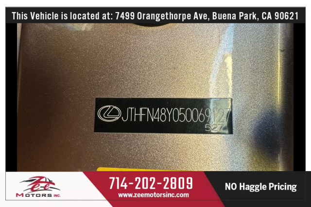 THIS VEHICLE IS LOCATED AT OUR BUENA PARK LOCATION: 7479 ORANGETHORPE AVE, BUENA PARK CA 90621. Please Call us at 657-255-4555 or 714-202-2809 or email us at BUENAPARK@ZEEMOTORSINC.COM To Check Availability. * Clean Title. * Very Well Maintained Vehicle, Service records available on CARFAX. * Very Clean Inside and Outside.* Passed Safety inspection and Smog Check.Attention to all buyers: All special prices are cash price and it does not include sales tax, license and registration fee, documentation fee, smog fee or any dealer add-ons / accessories. Additional financing charges may apply on approved credit. While great effort is made to ensure the accuracy of the information provided on this site, errors do occur so please verify information with a team member. This is easily done by contacting us via phone or email (Call or Text 657-346-8544) **** THIS VEHCILE IS EQUIPPED WITH ANTI-THEFT DEVICE AND GPS TRACKING SYSTEM ****All our Vehicles are sold as is where is with no warranty expressed written or implied. The Seller shall not be responsible for the correct description authenticity genuineness or defects herein and makes no warranty in connection therewith. No allowance or set a side will be made on account of any incorrectness imperfection defect or damage. Any descriptions or representations are for identification purposes only and are not to be construed as a warranty of any type. It is the responsibility of the buyer to have thoroughly inspected the vehicle and to have satisfied himself or herself as to the condition and value and to buy based upon that judgement solely. The seller shall and will make every reasonable effort to disclose any known defects associated with this vehicle at the buyer's request prior to the close of sale. Seller assumes no responsibility for any repairs regardless of any oral statements about the vehicle.