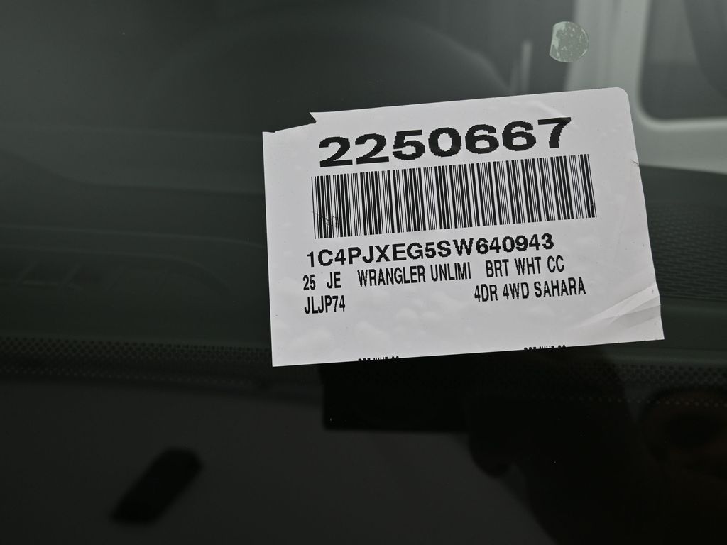 2025 Jeep Wrangler Sahara Bright White ClearcoatFactory MSRP: $61,860 Dealer Discount of $6,744 off MSRP12.3" Touchscreen Display, 4G LTE Wi-Fi Hot Spot, Apple CarPlay, Auto High Beam Headlamp Control, Auto-Dimming Rear-View Mirror, Blind Spot & Cross Path Detection, Body Color 3-Piece Hard Top, Connected Travel & Traffic Services, Connectivity - US/Canada, Freedom Panel Storage Bag, Google Android Auto, GPS Navigation, HD Radio, Integrated Off-Road Camera, Integrated Voice Command w/Bluetooth, ParkSense Rear Park Assist System, Quick Order Package 24G Sahara, Radio: Uconnect 5 Nav w/12.3" Display, Rear Window Defroster, Rear Window Wiper/Washer, Safety Group, SiriusXM Radio Service, SiriusXM w/360L, Technology Group, Universal Garage Door Opener. 18/23 City/Highway MPG 4WD 8-Speed Automatic 3.6L V6 24V VVT Price includes: $2500 - 2025 National Retail Bonus Cash . Exp. 12/01/2025