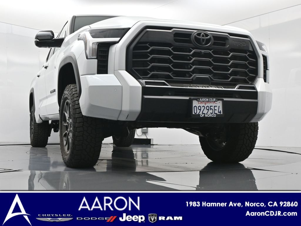 2025 Toyota Tundra Limited CrewMax 5.5 with TRD Off-Road Package, Panoramic Roof, Premium Paint, 1-Owner, No Accidents, just under 10,000 miles.Powered by the 3.4L i-FORCE MAX Hybrid V6 paired with a 10-speed automatic, this 4x4 delivers strength and efficiency with up to 11,165 lbs. max towing. Equipped with the TRD Off-Road Package, Bilstein shocks, skid plates, and 20-inch TRD alloy wheels, its ready for rugged adventures. The CrewMax 5.5' bed enhances versatility, while heated and ventilated leather-trimmed seats, panoramic moonroof, and Jbl premium audio elevate comfort.Advanced driver-assist technologies include Blind Spot Monitor with Trailer Merge Warning, Lane Tracing Assist, Dynamic Radar Cruise Control, and Parking Sensors with Rear Cross-Traffic Alert. With part-time 4WD, multi-terrain select, crawl control, and trailer sway control, it adapts confidently to work, play, and off-road terrain.Renowned for its reliability and capability, the 2025 Tundra continues to be celebrated as one of the most durable and versatile full-size pickups available.We make the buying process simple and transparent. Every vehicle is thoroughly inspected and reconditioned for peace of mind. With flexible financing options, a no-pressure approach, and a team committed to customer satisfaction, you can shop confidently knowing youre getting a fair deal backed by expert support and market-based pricing.If this catches your eye, reach out now for more photos, a detailed walk-around video, or to book an in-dealership appointment. We're committed to making the process smooth, with expert advice on trade-ins and competitive offers to ease any worries.