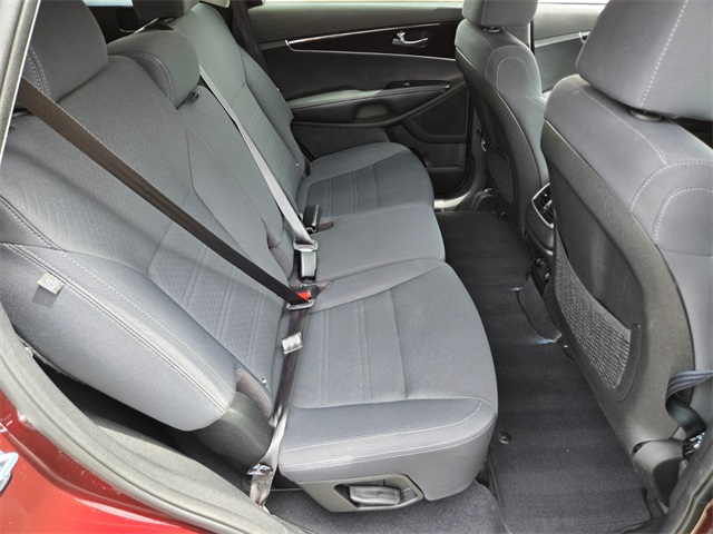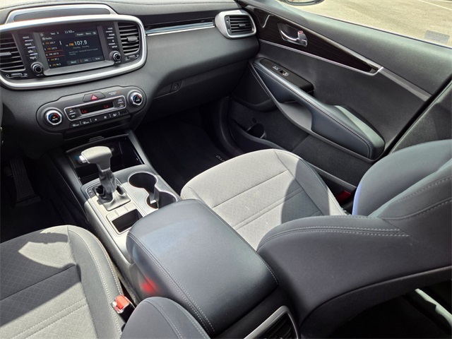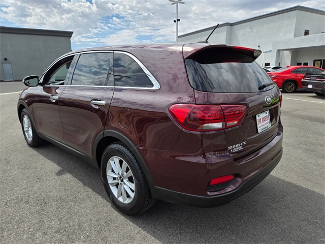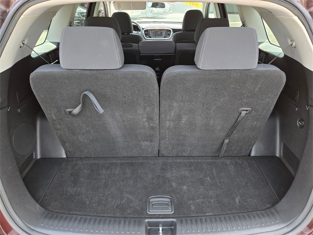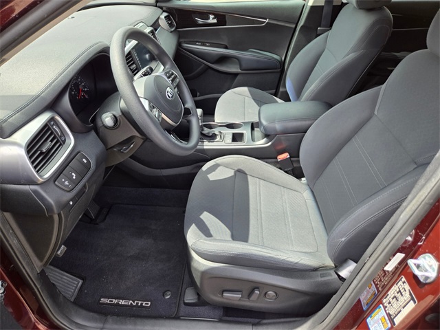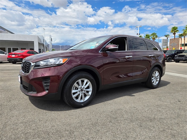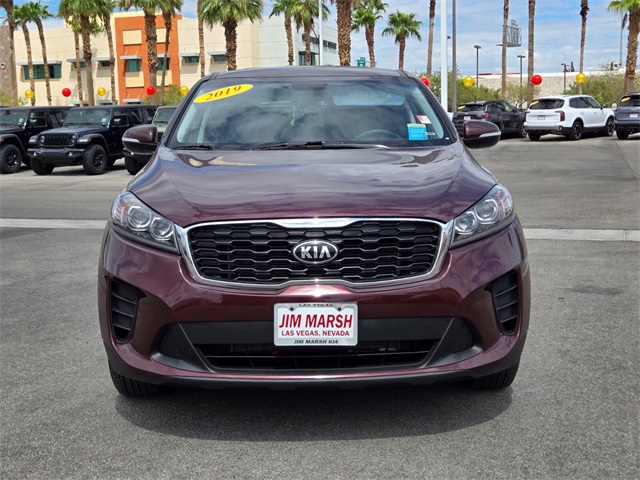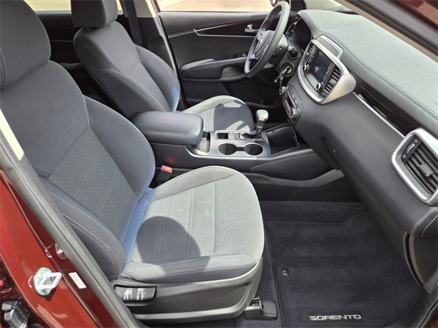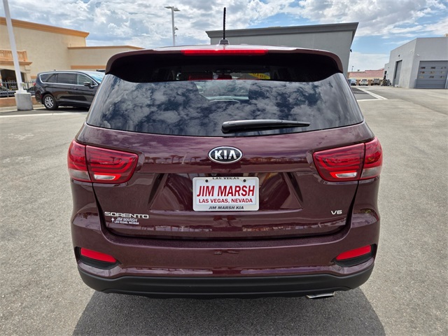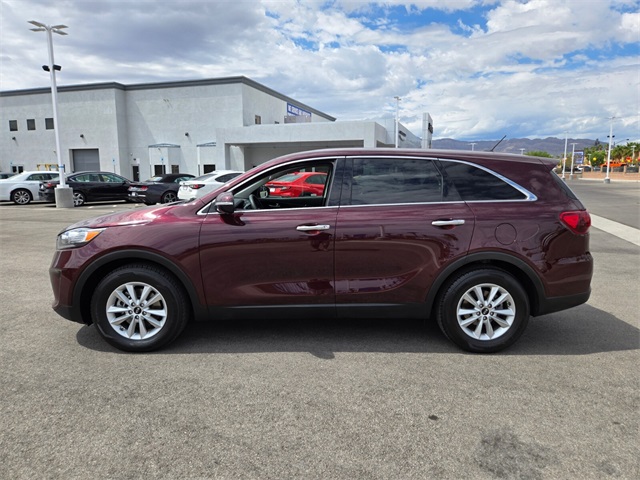 19/26 City/Highway MPGSangria 2019 Kia Sorento LX FWD 8-Speed Automatic V6If you don't drive here, you can't save here!Price may not include recon fee. 17" x 7.0" Alloy Wheels, 3.32 Axle Ratio, 3rd row seats: split-bench, 4-Wheel Disc Brakes, 6 Speakers, ABS brakes, Air Conditioning, Alloy wheels, AM/FM radio, Apple CarPlay & Android Auto, Automatic temperature control, Brake assist, Bumpers: body-color, Carpeted Floor Mats (7-Passenger), Delay-off headlights, Driver door bin, Driver vanity mirror, Dual front impact airbags, Dual front side impact airbags, Electronic Stability Control, Exterior Parking Camera Rear, Four wheel independent suspension, Front anti-roll bar, Front Bucket Seats, Front Center Armrest, Front dual zone A/C, Front reading lights, Fully automatic headlights, Heated door mirrors, Illuminated entry, Low tire pressure warning, Occupant sensing airbag, Outside temperature display, Overhead airbag, Overhead console, Panic alarm, Passenger door bin, Passenger vanity mirror, Power door mirrors, Power driver seat, Power steering, Power windows, Radio data system, Radio: UVO Play w/AM/FM/MP3, Rear anti-roll bar, Rear seat center armrest, Rear window defroster, Rear window wiper, Remote keyless entry, Security system, Speed control, Speed-sensing steering, Split folding rear seat, Spoiler, Steering wheel mounted audio controls, Tachometer, Telescoping steering wheel, Tilt steering wheel, Traction control, Trip computer, Turn signal indicator mirrors, Variably intermittent wipers, and YES Essentials Cloth Seat Trim.