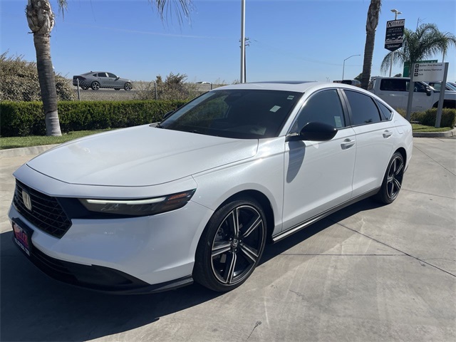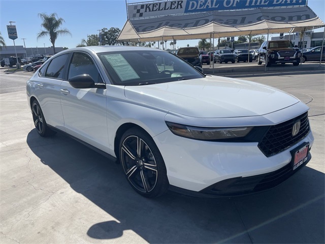 Apple CarPlay/Android Auto, Blind Spot Information (BSI) System warning, Bumpers: body-color, Exterior Parking Camera Rear, Fully automatic headlights, Power door mirrors, Power moonroof, Spoiler, Wheels: 19" x 8.5J Berlina Black. Odometer is 5420 miles below market average! 46/41 City/Highway MPG White 2.0L 16V DOHC 2024 Honda Accord Hybrid 4D Sedan FWD Sportwww.kellerdeal.com Excellent selection of Used Vehicles, Financing options, serving Hanford, Lemoore, Armona, Visalia, Tulare, Fresno, Goshen, Kings County, Tulare County, Fresno County, San Joaquin County, Bakersfield, Kern County. Price excludes government fees and taxes, dealer documentation fee of $85, and any emission testing charge.