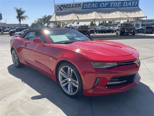 High-Intensity Discharge Headlamps, LED Taillamps, Preferred Equipment Group 1LT, RS Package, Wheels: 20" 5-Split Spoke Machined-Face Aluminum. Priced below KBB Fair Purchase Price! 19/29 City/Highway MPG Red Hot 3.6L V6 DI 2018 Chevrolet Camaro 2D Convertible RWD 1LTAwards: * JD Power Dependability Study * Car and Driver 10 Best Cars * 2018 KBB.com 10 Coolest Cars Under $25,000 * 2018 KBB.com 10 Best Used Sports Cars Under $30,000 * 2018 KBB.com 5-Year Cost to Own Awards * 2018 KBB.com 10 Most Awarded BrandsCar and Driver, January 2017.www.kellerdeal.com Excellent selection of Used Vehicles, Financing options, serving Hanford, Lemoore, Armona, Visalia, Tulare, Fresno, Goshen, Kings County, Tulare County, Fresno County, San Joaquin County, Bakersfield, Kern County. Price excludes government fees and taxes, dealer documentation fee of $85, and any emission testing charge.