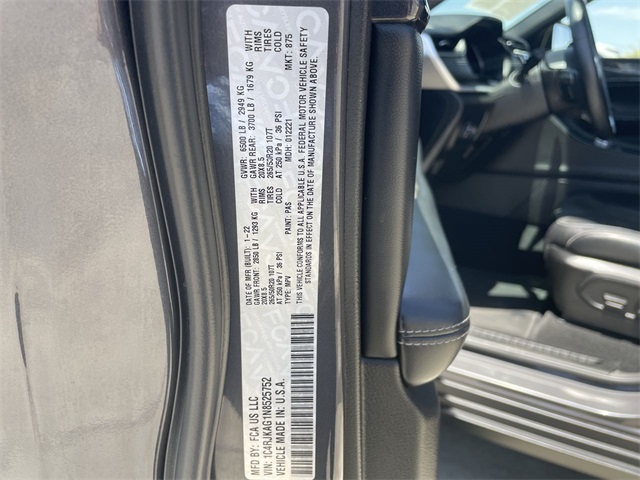 3.6L V6 24V VVT 115V Auxiliary Power Outlet, 3rd Row Charge-Only USB Ports, Altitude Appearance Package, Black Headliner, Delete Laredo Badge, Gloss Black Exterior Accents, Heated Front Seats, Heated Steering Wheel, Leather Trimmed Bucket Seats, Leather Wrapped Steering Wheel, Molded In Color Black/Gloss Black Roof Rails, Power Liftgate, Quick Order Package 22B Altitude, Rain Sensitive Windshield Wipers, Remote Start System, Selectable Tire Fill Alert, Wheels: 20" x 8.5" Gloss Black Painted Aluminum, Wireless Charging Pad, 3.45 Rear Axle Ratio, 3rd row seats: split-bench, 4-Wheel Disc Brakes, 6 Speakers, ABS brakes, Air Conditioning, AM/FM radio, Anti-whiplash front head restraints, Automatic temperature control, Brake assist, Bumpers: body-color, Cloth Seats, Compass, Delay-off headlights, Driver door bin, Driver vanity mirror, Dual front impact airbags, Dual front side impact airbags, Electronic Stability Control, Emergency communication system, Four wheel independent suspension, Front anti-roll bar, Front Bucket Seats, Front Center Armrest w/Storage, Front dual zone A/C, Front reading lights, Fully automatic headlights, Heated door mirrors, Illuminated entry, Knee airbag, Low tire pressure warning, Manual Fold Seatbacks, Normal Duty Suspension, Occupant sensing airbag, Outside temperature display, Overhead airbag, Overhead console, Panic alarm, ParkView Rear Back-Up Camera, Passenger door bin, Passenger vanity mirror, Power door mirrors, Power driver seat, Power steering, Power windows, Radio data system, Radio: Uconnect 5 w/8.4" Display, Rear air conditioning, Rear anti-roll bar, Rear reading lights, Rear window defroster, Rear window wiper, Reclining 3rd row seat, Remote keyless entry, Security system, Speed control, Speed-Sensitive Wipers, Split folding rear seat, Spoiler, Steering wheel mounted audio controls, Tachometer, Telescoping steering wheel, Tilt steering wheel, Traction control, Trip computer, Variably intermittent wipers, Voltmeter, 115V Auxiliary Power Outlet, 3rd Row Charge-Only USB Ports, Altitude Appearance Package, Black Headliner, Delete Laredo Badge, Gloss Black Exterior Accents, Heated Front Seats, Heated Steering Wheel, Leather Trimmed Bucket Seats, Leather Wrapped Steering Wheel, Molded In Color Black/Gloss Black Roof Rails, Power Liftgate, Quick Order Package 22B Altitude, Rain Sensitive Windshield Wipers, Remote Start System, Selectable Tire Fill Alert, Wheels: 20" x 8.5" Gloss Black Painted Aluminum, Wireless Charging Pad. Odometer is 17282 miles below market average!www.kellerfordhanford.com Excellent selection of Vehicles, Financing options, serving Hanford, Lemoore, Armona, Visalia, Tulare, Fresno, Goshen, Kings County, Tulare County, Fresno County, San Joaquin County, Bakersfield, Kern County. Price excludes government fees and taxes, dealer documentation fee of $85, and any emission testing charge.