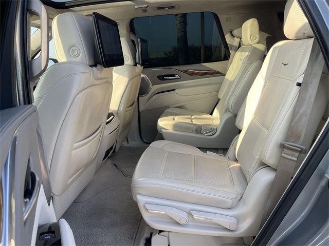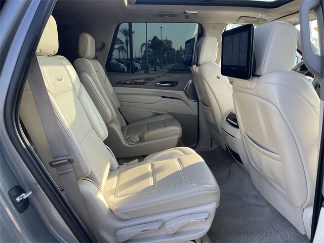 Adaptive Cruise Control, Adaptive suspension, Air Ionizer, Air Ride Adaptive Suspension, AKG Studio Reference 36-Speaker Audio System, Automatic Seat Belt Tightening, Body-Color Door Handles, Door Lock & Latch Shields, Driver Assist Tech Package, Electronic Limited-Slip Differential, Enhanced Automatic Emergency Braking, Enhanced Automatic Parking Assist, Floor Console w/Covered Storage, Glass Breakage Sensor, Hitch Guidance w/Hitch View, Illuminating Front & Rear Sill Plates, In-Vehicle Trailering System App, Integrated Trailer Brake Controller, Lane Keep Assist w/Lane Departure Warning, Magnetic Ride Control Suspension, Navigation System, Night Vision, Platinum Interior Trim, Power Panoramic Tilt-Sliding Sunroof, Preferred Equipment Group 1SH, Rear Camera Mirror, Rear Camera Mirror Washer, Rear Cross Traffic Alert, Rear Seat Entertainment System, Reconfigurable Full-Color Head-Up Display, Reverse Automatic Braking, Running Board Assist Steps, Soft Closing Front & Rear Doors, Theft-Deterrent Alarm System, Trailer Side Blind Zone Alert, Vehicle Inclination Sensor, Vehicle Interior Movement Sensor. Odometer is 8580 miles below market average! Satin Steel Metallic 6.2L V8 2021 Cadillac Escalade 4D Sport Utility 4WD Sport PlatinumAwards: * ALG Residual Valuewww.kellerdeal.com Excellent selection of Used Vehicles, Financing options, serving Hanford, Lemoore, Armona, Visalia, Tulare, Fresno, Goshen, Kings County, Tulare County, Fresno County, San Joaquin County, Bakersfield, Kern County. Price excludes government fees and taxes, dealer documentation fee of $85, and any emission testing charge.