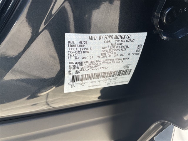 3.0L V6 250 Amps Alternator, 30-Way Perfect Position Seats w/Active Motion, 4-Pin & 7-Pin Connectors, Adaptive Steering, Adaptive Suspension w/Road Preview, Air Glide Suspension w/Dynamic Lower Entry, Blind Spot Detection w/Cross Traffic Alert, Cashmere Headliner, Cashmere Leather-Wrapped Interior, Chalet Theme, Class IV Hitch & Wiring, Class IV Trailer Tow Package, Dynamic Handling Package, Equipment Group 800A, Espresso Floor Carpet/Mat, Navigation System, Savannah Leather Heated/Ventilated Seats (76A), Silverwood Appliques w/Logo Decal, Smart Trailer Tow, Trailer Sway Control, 28 Speakers, 3.58 Axle Ratio, 3rd row seats: split-bench, 4-Wheel Disc Brakes, ABS brakes, Adaptive suspension, Air Conditioning, Alloy wheels, AM/FM radio: SiriusXM, Audio memory, Auto High-beam Headlights, Auto-dimming door mirrors, Auto-dimming Rear-View mirror, Automatic temperature control, Brake assist, Bumpers: body-color, Cargo Area Cover, Cargo Area Protector (Dealer Installed), Compass, Delay-off headlights, Door auto-latch, Driver door bin, Driver vanity mirror, Dual front impact airbags, Dual front side impact airbags, Electronic Stability Control, Emergency communication system: SYNC 3 911 Assist, Four wheel independent suspension, Front anti-roll bar, Front Bucket Seats, Front Center Armrest, Front dual zone A/C, Front fog lights, Front reading lights, Full Rear Console, Fully automatic headlights, Garage door transmitter, Head restraints memory, Heads-Up Display, Heated door mirrors, Heated front seats, Heated rear seats, Heated steering wheel, HVAC memory, Illuminated entry, Knee airbag, Low tire pressure warning, Mahogany Khaya Appliques w/Etched Logo, Mahogany Red Floor Carpet/Mats, Mahogany Red Headliner, Mahogany Red Leather-Wrapped Interior, Memory seat, Occupant sensing airbag, Outside temperature display, Overhead airbag, Overhead console, Panic alarm, Passenger door bin, Passenger vanity mirror, Power adjustable front head restraints, Power door mirrors, Power driver seat, Power Liftgate, Power moonroof, Power passenger seat, Power steering, Power windows, Radio data system, Radio: Revel Ultima 3D Audio System w/28 Speakers, Rain sensing wipers, Rear air conditioning, Rear anti-roll bar, Rear audio controls, Rear dual zone A/C, Rear reading lights, Rear window defroster, Rear window wiper, Remote keyless entry, Savannah Leather Heated/Ventilated Seats (76E), Security system, SiriusXM Radio, Speed control, Speed-Sensitive Wipers, Split folding rear seat, Spoiler, Steering wheel memory, Steering wheel mounted A/C controls, Steering wheel mounted audio controls, SYNC 3 Communication & Entertainment System, Tachometer, Telescoping steering wheel, Tilt steering wheel, Traction control, Trip computer, Turn signal indicator mirrors, Variably intermittent wipers, Ventilated front seats, Ventilated rear seats, Wheels: 22" Ultra Bright Machined Aluminum, 250 Amps Alternator, 30-Way Perfect Position Seats w/Active Motion, 4-Pin & 7-Pin Connectors, Adaptive Steering, Adaptive Suspension w/Road Preview, Air Glide Suspension w/Dynamic Lower Entry, Blind Spot Detection w/Cross Traffic Alert, Cashmere Headliner, Cashmere Leather-Wrapped Interior, Chalet Theme, Class IV Hitch & Wiring, Class IV Trailer Tow Package, Dynamic Handling Package, Equipment Group 800A, Espresso Floor Carpet/Mat, Navigation System, Savannah Leather Heated/Ventilated Seats (76A), Silverwood Appliques w/Logo Decal, Smart Trailer Tow, Trailer Sway Control. Odometer is 9392 miles below market average!Awards: * 2020 KBB.com 10 Best SUVs Worth Waiting For www.kellerfordhanford.com Excellent selection of Vehicles, Financing options, serving Hanford, Lemoore, Armona, Visalia, Tulare, Fresno, Goshen, Kings County, Tulare County, Fresno County, San Joaquin County, Bakersfield, Kern County. Price excludes government fees and taxes, dealer documentation fee of $85, and any emission testing charge.
