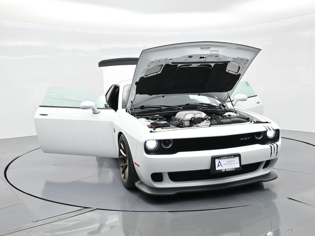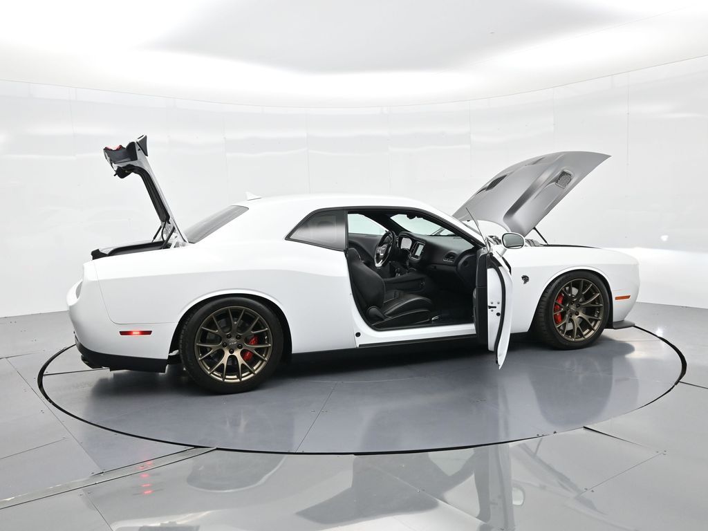 Unleash true American muscle with this low-mileage 2016 Dodge Challenger SRT Hellcat, showing just 28,368 miles and finished in Bright White Clearcoat over a Black Laguna leather interior. Under the hood lives a supercharged 6.2L HEMI V8 delivering a monstrous 707 horsepower, paired to a 6-speed manual Tremec transmission for pure driver engagement. This Hellcat features the Quick Order Package 25R SRT, 20-inch forged wheels wrapped in Pirelli performance tires, Brembo high-performance brakes, and a dual stainless steel exhaust with chrome tips. Inside, you'll enjoy heated and ventilated performance seats with SRT embossing, a Uconnect 8.4-inch touchscreen with navigation, Harman Kardon premium audio, dual-zone automatic climate control, and a leather-wrapped flat-bottom steering wheel. Convenience features include remote start, push-button ignition, rearview camera, HID headlamps, blind-spot monitoring, and ParkSense rear park assist. Recognized by JD Power for its outstanding Initial Quality and Vehicle Dependability, this personal-use Challenger has been meticulously maintained and offers both heritage styling and modern technology in one bold package. If you're looking for a head-turning street beast with refined comfort and raw performance, this Hellcat delivers! Schedule your test drive today.