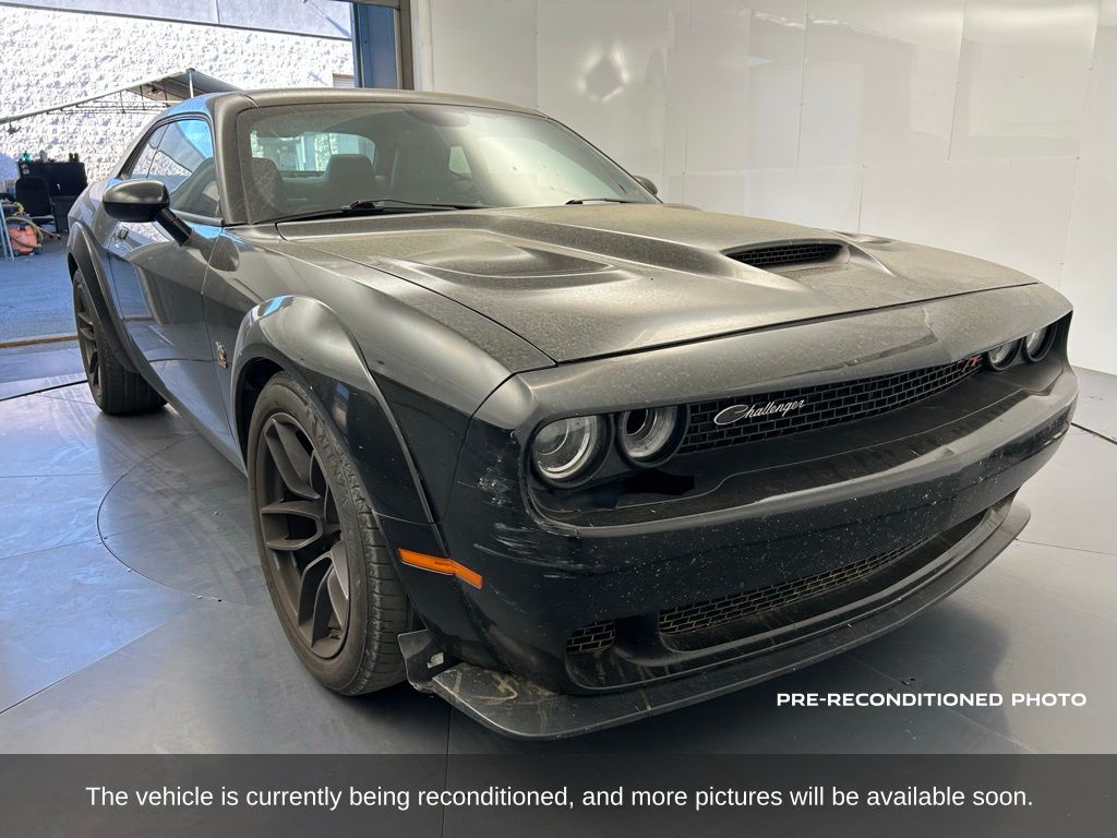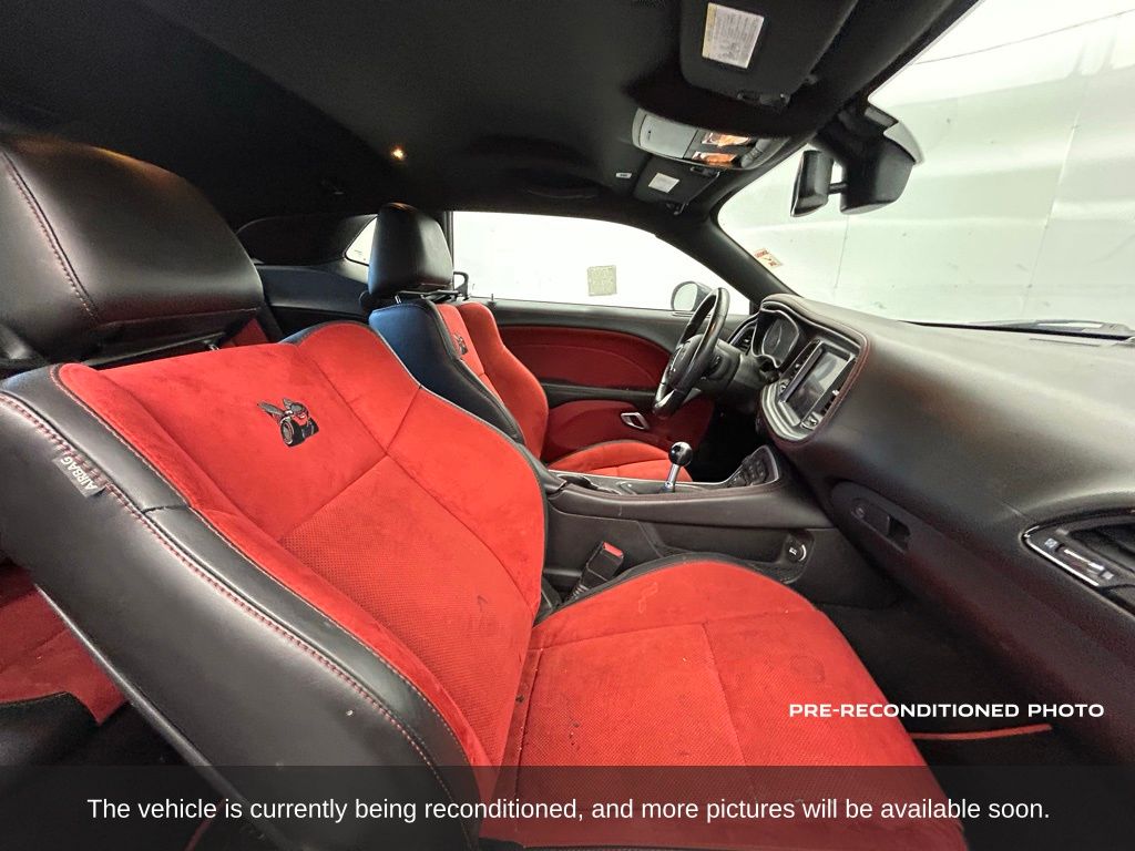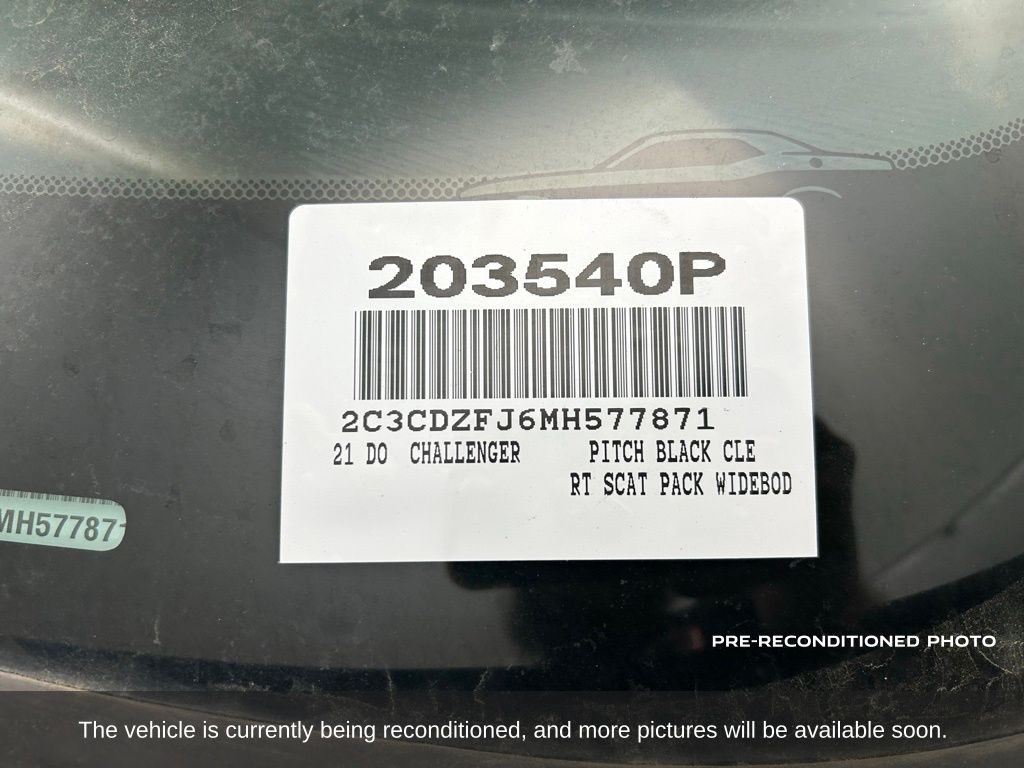 This 2021 Dodge Challenger R/T Scat Pack Widebody in striking Pitch Black Clearcoat combines retro-inspired muscle car styling with modern performance engineering, delivering a driving experience thats as thrilling as it is iconic. Under the hood, the legendary 6.4L SRT HEMI V8 produces an exhilarating 485 horsepower and 475 lb-ft of torque, paired with a tactile 6-speed manual transmission for ultimate driver engagement. The Widebody Package enhances handling and stance with flared fenders, competition suspension, and massive 305/35ZR20 performance tires on 20-inch Devils Rim forged aluminum wheels. The Scat Pack dynamics are elevated with adaptive damping suspension, Brembo 6-piston front calipers, line lock, launch control, and SRT drive modes for track-ready performance. Inside, the driver-focused cabin features premium Ruby Red/Black cloth sport seats, a leather-wrapped performance steering wheel, and an 8.4-inch Uconnect infotainment system with navigation, Apple CarPlay, Android Auto, Bluetooth, SiriusXM, and a premium audio system with subwoofer. Other highlights include dual-zone automatic climate control, proximity key with push-button start, and ample cargo space for a coupe. Exterior design cues like the functional hood scoop, LED halo headlamps, black rear spoiler, and Satin Black badging give it an aggressive yet timeless look. Safety features include ParkView rear backup camera, ParkSense rear park assist, stability control, advanced multistage airbags, and rain brake support. With 39,812 miles, this one-owner Challenger has been well cared for and offers the raw, unfiltered muscle car experience enthusiasts crave. If youre ready for a high-performance coupe that blends heritage styling with modern tech and track-capable engineering, this Challenger R/T Scat Pack Widebody delivers in every waysee it in person and feel the roar of the HEMI.
