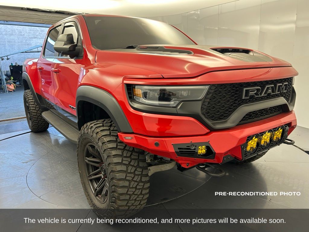 Unleash raw power and next-level off-road performance in this exhilarating 2022 Ram 1500 TRX Crew Cab 4x4, featuring only 28,608 miles and finished in commanding Diamond Black Crystal Pearl coat over a premium Black interior. At its heart lies a legendary 6.2L Supercharged HEMI V8 SRT engine delivering 702 horsepower and 650 lb-ft of torque, paired with a high-performance 8-speed automatic transmission making it one of the most capable and aggressive trucks on the road. Built for extreme conditions, the TRX includes Bilstein Black Hawk e2 adaptive performance shocks, full-time 4WD with electronic locking rear differential, launch control, high-strength Dana 60 rear axle, and massive 35-inch all-terrain tires wrapped around 18-inch black aluminum wheels. Inside, the cabin blends aggressive design with luxury, boasting leather-trimmed bucket seats, heated and ventilated front and rear seats, a flat-bottom performance steering wheel with paddle shifters, a full-length premium console, and carbon fiber accents throughout. Stay fully connected with the 12-inch Uconnect navigation system, Apple CarPlay and Android Auto, wireless charging pad, SiriusXM with 360L, and Harman Kardon premium audio system. Additional features include dual-zone automatic climate control, LED ambient interior lighting, rear camera mirror, adaptive cruise control, remote start, rain-sensing wipers, and a full suite of driver-assistance technologies for both safety and convenience. The exterior is as bold as its performance, with hood heat extractors, functional air scoops, integrated tow hooks, wide-body fender flares, dual exhaust with black tips, skid plates, and a spray-in bedliner. Backed by a clean personal-use history and consistent service records, this TRX is ready to dominate highways, dirt trails, and everything in between. If you're seeking the ultimate combination of supercharged power, off-road capability, and premium comfort, this 2022 Ram TRX delivers without compromise. Schedule your test drive today and experience what makes the TRX the most thrilling full-size performance truck on the market.