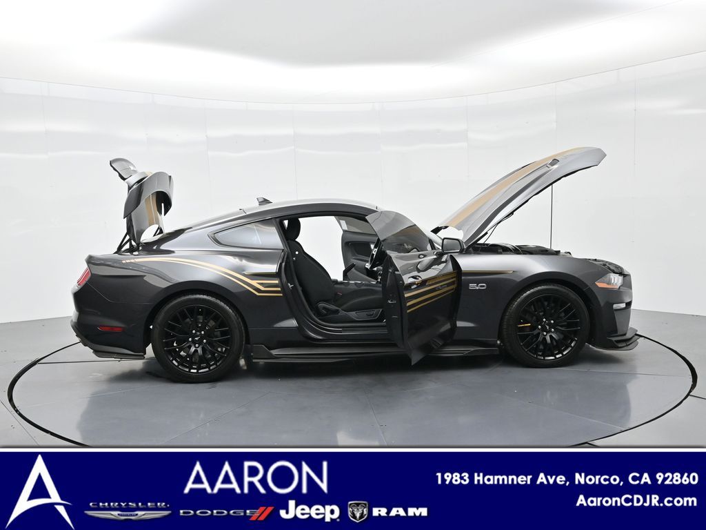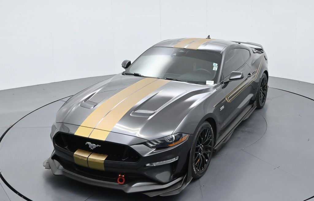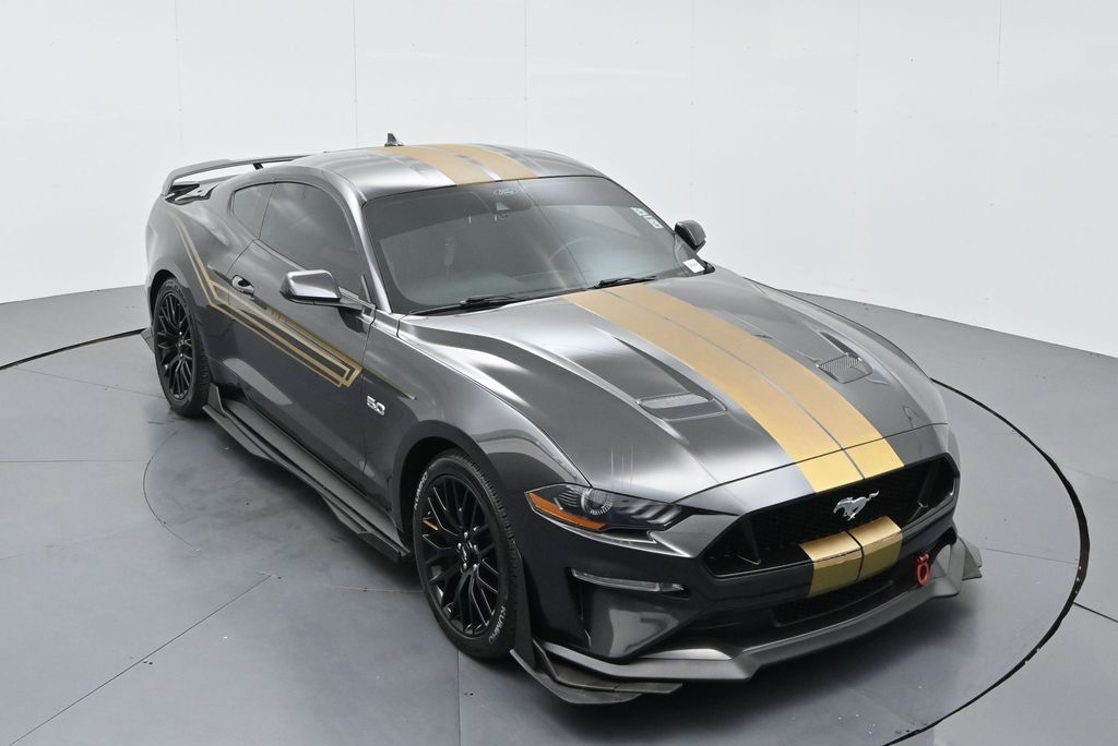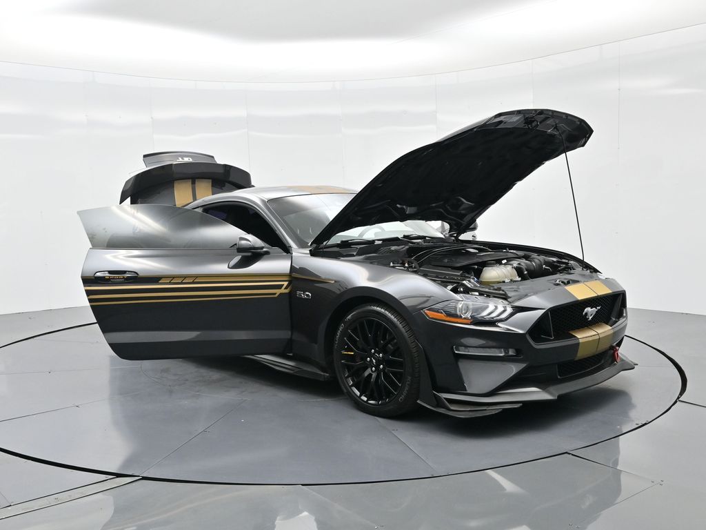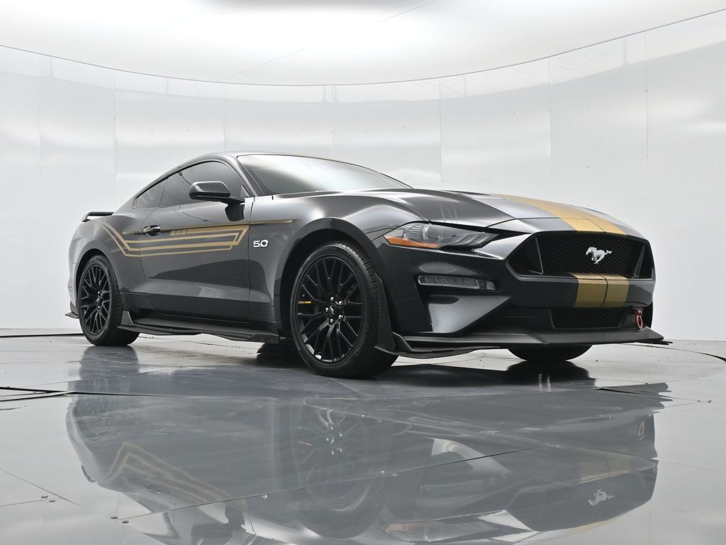 Experience raw American performance in this head-turning 2022 Ford Mustang GT, finished in Dark Matter Gray Metallic with Ebony cloth seats and showing just 56,000 miles. Under the hood, a 5.0 liter Ti-VCT V8 delivers an impressive 450 horsepower, paired to a driver-focused six-speed manual transmission for a truly engaging experience. Equipped with the GT Performance Package, this Mustang features 19 inch ebony black aluminum wheels, performance summer tires, a 3.73 Torsen rear axle, heavy duty front springs, and Brembo six-piston front brakes for enhanced cornering grip and precise braking power. The independent rear suspension and advanced Track Apps system ensure you stay connected to the road whether cruising the highway or pushing the limits on the weekend. The cabin offers comfort and control with six-way power driver and four-way passenger seats, leather wrapped steering wheel, FordPass Connect with Wi-Fi hotspot, and an AM/FM stereo with six speakers. The center stack includes a 4.2 inch LCD display with SYNC and rearview camera, while the Mustangs signature dual exhaust with quad tips provides an aggressive soundtrack to match its bold exterior presence. Additional features include rain sensing wipers, LED sequential tail lamps, intelligent access with push button start, perimeter alarm, rear parking sensors, and a full complement of airbags and driver assist systems for added peace of mind. This one-owner, personal use vehicle comes with a clean CARFAX history and strong service record, combining iconic heritage with modern engineering in a package built for true driving enthusiasts. With its unmistakable silhouette, aggressive performance tuning, and factory upgrades, this 2022 Mustang GT is ready to deliver pure V8 excitement to its next owner. Visit our showroom today and feel what it means to drive a modern classic.
