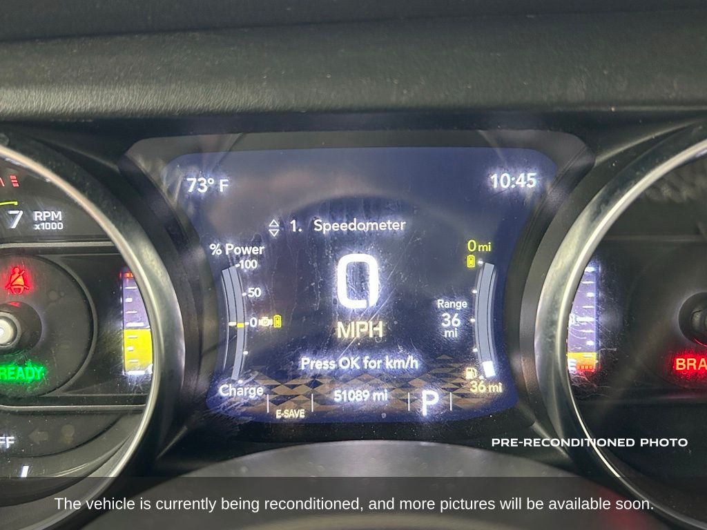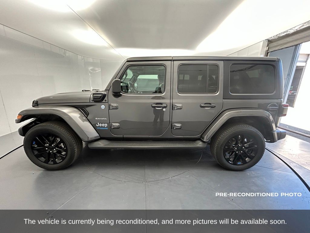 This 2022 Jeep Wrangler Unlimited Sahara 4xe in striking Granite Crystal Metallic Clearcoat blends the iconic off-road capability of the Wrangler with advanced plug-in hybrid technology, delivering efficiency and power in one rugged package. Under the hood, a 2.0L turbocharged I4 engine is paired with an electric motor for a combined 375 horsepower, managed by an 8-speed automatic transmission and Jeeps legendary 4x4 system. This combination offers exhilarating performance both on and off the pavement, along with the ability to drive short distances on electric power alone. The Sahara 4xes exterior is enhanced with premium body-color fender flares, 20-inch fully painted aluminum wheels, all-season tires, LED lighting, and removable doors and roof for an open-air experience. Inside, the cabin features premium Nappa leather-trimmed seats, heated front seats, a heated steering wheel, dual-zone automatic climate control, and a Uconnect 4C NAV system with an 8.4-inch display, navigation, Apple CarPlay, Android Auto, and a premium audio system. The Cold Weather Group adds conveniences like remote start, heated mirrors, and all-weather floor mats, while the Safety Group includes ParkSense rear park assist, Blind Spot Monitoring, and Rear Cross Path Detection. Off-road capability is bolstered by skid plates, a Selec-Trac full-time transfer case, and Dana solid front and rear axles, ensuring this hybrid Wrangler is ready for trails and terrain. Added features like the three-piece hardtop, Freedom panel storage bag, and integrated voice command make it both functional and fun. With 51,081 miles, a Carfax 1-Owner history, and documented service records, this Wrangler Unlimited Sahara 4xe offers a rare opportunity to enjoy the unmatched freedom and capability of a Wrangler with the benefits of hybrid efficiencyperfect for adventure seekers who also value sustainability.