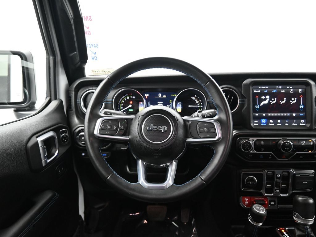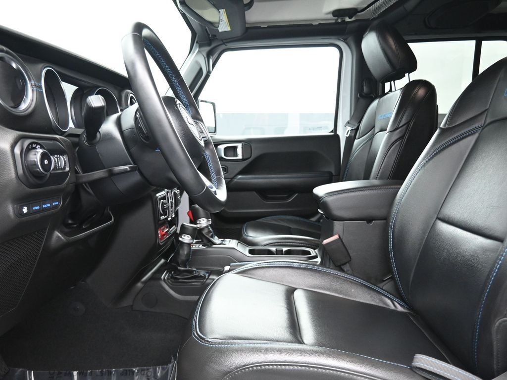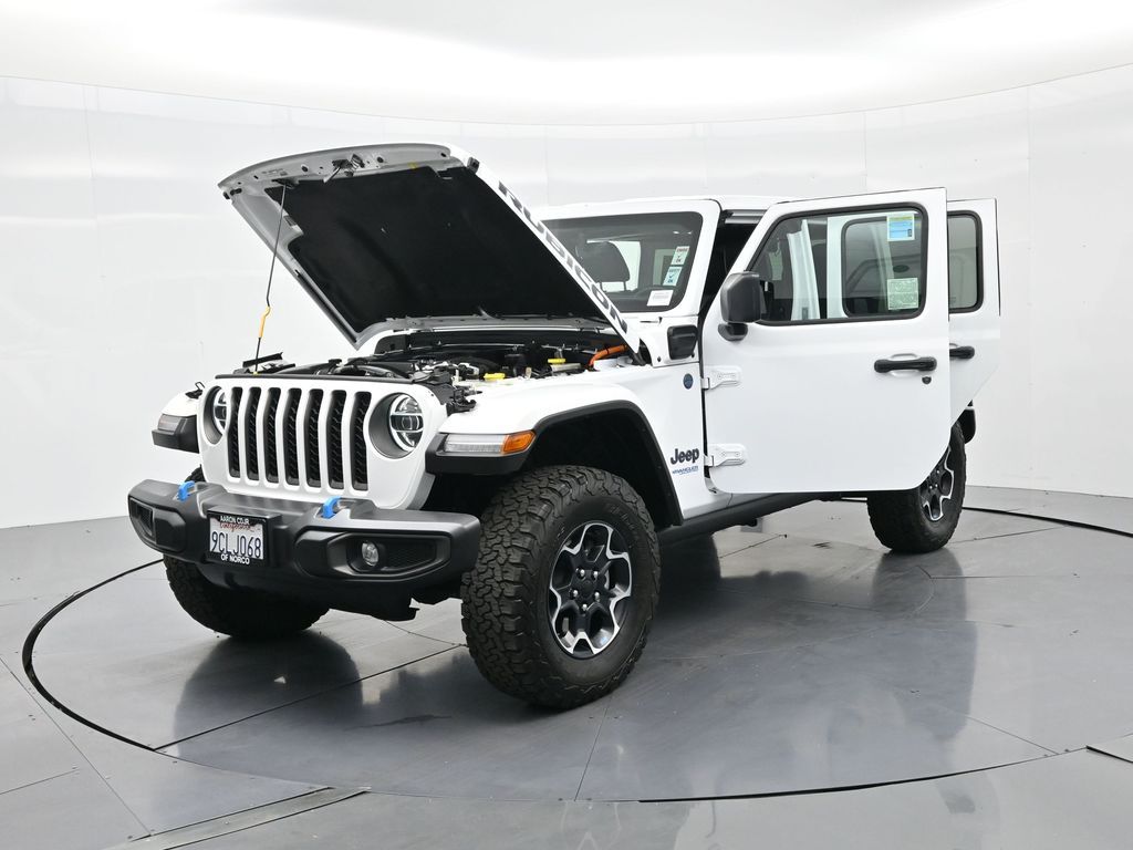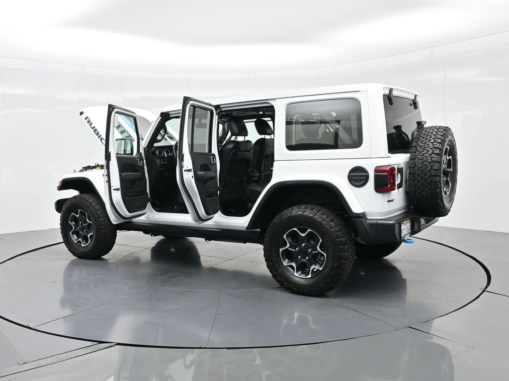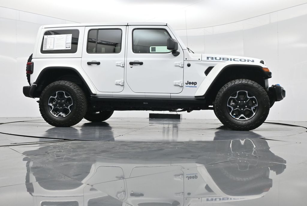 This 2022 Jeep Wrangler Unlimited Rubicon 4xe in Bright White Clearcoat delivers legendary off-road performance with modern plug-in hybrid efficiency, offering the perfect balance of rugged capability and eco-conscious driving. Powered by a 2.0L turbocharged PHEV engine paired with an 8-speed automatic transmission and Jeeps Rock-Trac heavy-duty full-time 4WD system, it produces impressive torque for conquering trails while providing the flexibility of electric-only driving for shorter trips. The Rubicon trim elevates off-road readiness with Tru-Lok electronic locking differentials, an electronic front sway bar disconnect, heavy-duty Dana 44 front and rear axles, skid plates, and LT285/70R17 off-road tires on machined/pained black alloy wheels. The Quick Order Package 29V adds premium features like leather-trimmed bucket seats, Uconnect 4C NAV with 8.4-inch touchscreen, Apple CarPlay, Android Auto, navigation, Alpine premium audio, remote start, and a body-color three-piece hardtop. Additional highlights include a premium door trim panel, heated front seats and steering wheel, rear window defroster, and a Freedom panel storage bag. The exterior stands out with signature Rubicon decals, LED lighting, and black tow hooks, while safety features include a ParkView rear backup camera, trailer sway control, stability control, and advanced multistage airbags. With just 22,494 miles, a clean 1-owner CARFAX history, and regular oil changes, this Wrangler Rubicon 4xe is in excellent condition and still under factory warranty. Offering unmatched trail capability, everyday practicality, and the efficiency of plug-in hybrid technology, this Wrangler Rubicon 4xe is ready for your next adventure. Whether its an urban commute or a backcountry expedition.