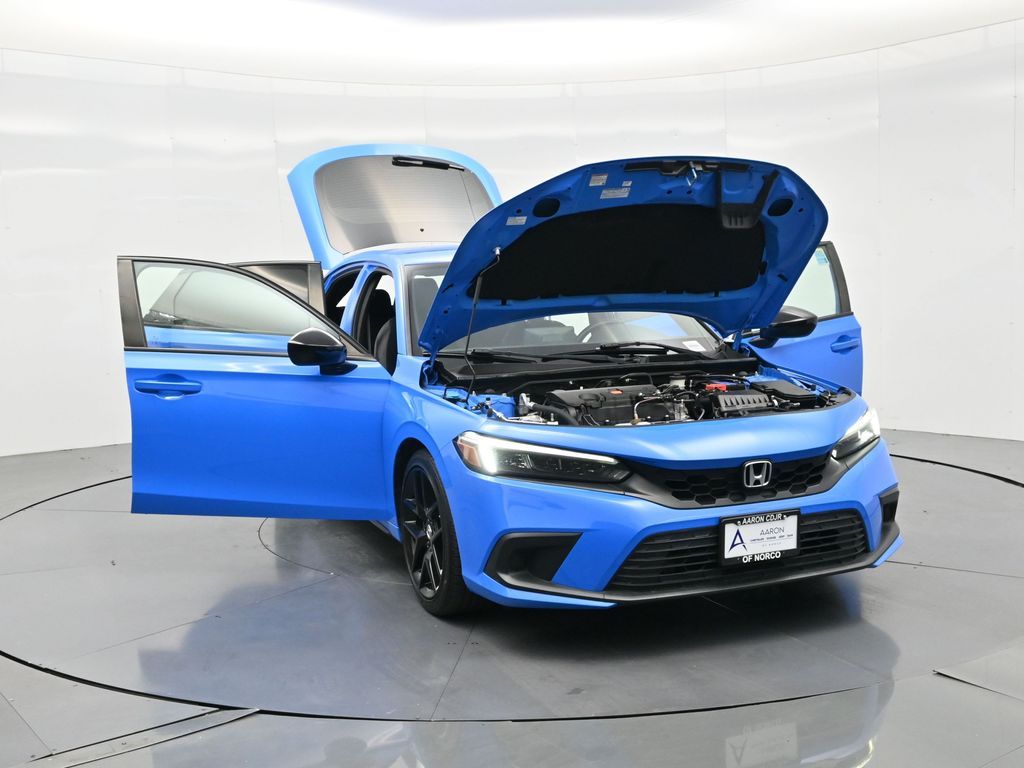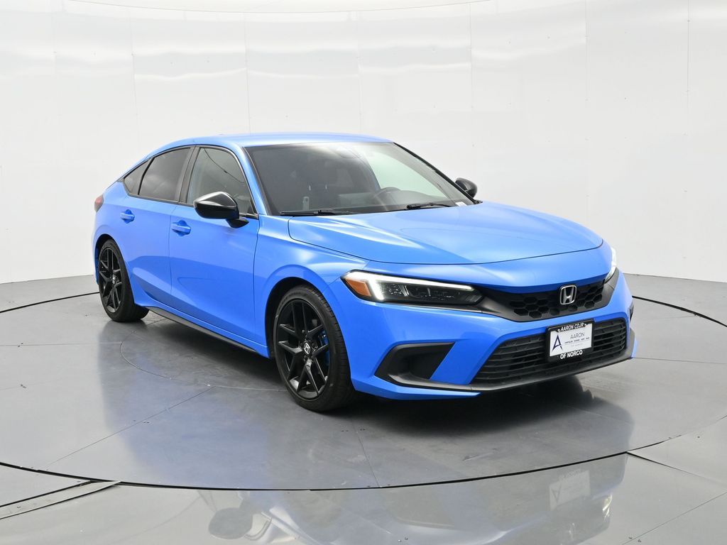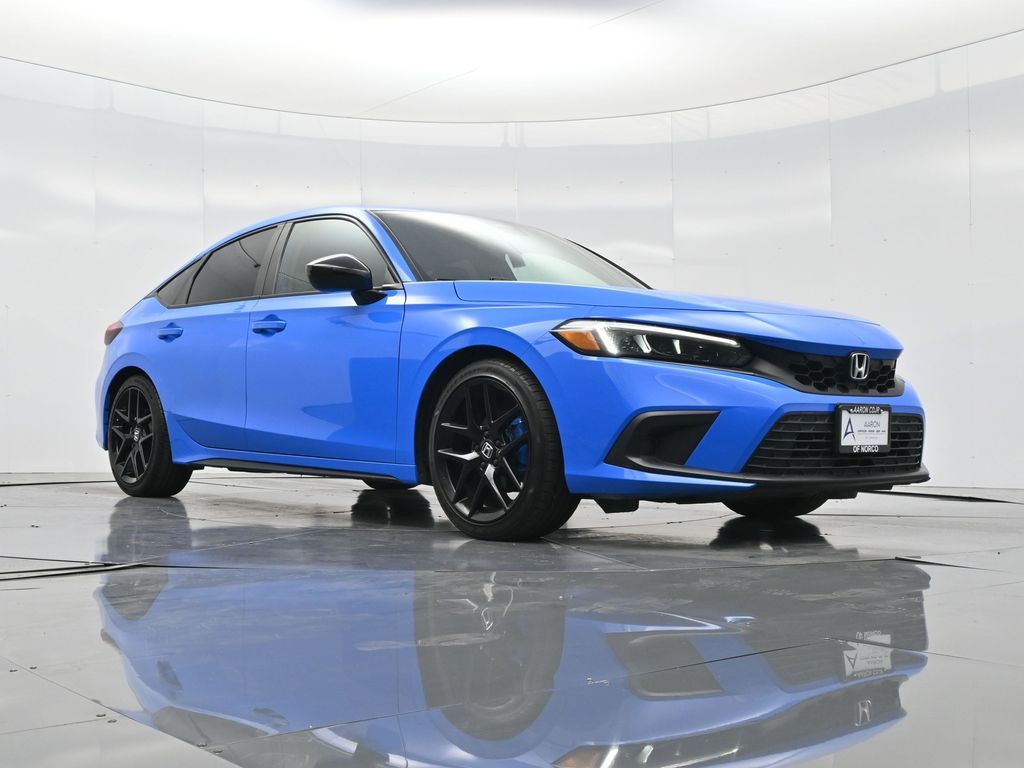 Sporty, stylish, and smartly equipped, this 2023 Honda Civic Sport Hatchback CVT blends thrilling driving dynamics with practicality and fuel efficiency in a bold five-door package. With just 42,728 miles, a clean Carfax history, no reported accidents, and consistent service records, this Civic Sport is a reliable, well-maintained choice for daily commuters, first-time buyers, or anyone seeking a dynamic and economical ride. Finished in eye-catching Boost Blue Pearl and paired with a sharp black fabric interior, this Civic features aggressive styling cues like 18-inch black alloy wheels, black grille, LED headlights, and chrome exhaust finisher for a modern, athletic look. Under the hood, the 2.0L DOHC i-VTEC 4-cylinder engine paired with a continuously variable transmission (CVT) delivers smooth, responsive power with an EPA-estimated 29 MPG city and 37 MPG highway, all while keeping emissions low as a PZEV-certified vehicle. Inside, youll find supportive sport seats, a 7-inch touchscreen display, Apple CarPlay and Android Auto integration, Bluetooth HandsFreeLink, 180-watt audio system with 8 speakers, steering wheel-mounted controls, and Smart Entry with push-button start. This Civic is also equipped with rear-view camera, automatic climate control, fold-flat 60/40 rear seats, and multiple 12V power outlets, making it as versatile as it is fun to drive. Safety is a priority with Honda Sensing, a suite of advanced features including Collision Mitigation Braking System, Road Departure Mitigation, Adaptive Cruise Control, and Lane Keeping Assist, all contributing to its 5-star NHTSA safety rating. With its spacious hatchback design, refined ride, and confident styling, the Civic Sport offers the perfect balance of performance, efficiency, and everyday usability. Backed by Honda's legendary reputation for reliability and quality, this low-mileage Civic Hatch wont last long. Contact us today to schedule your test drive or reserve it online before its gone.