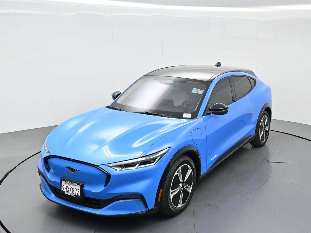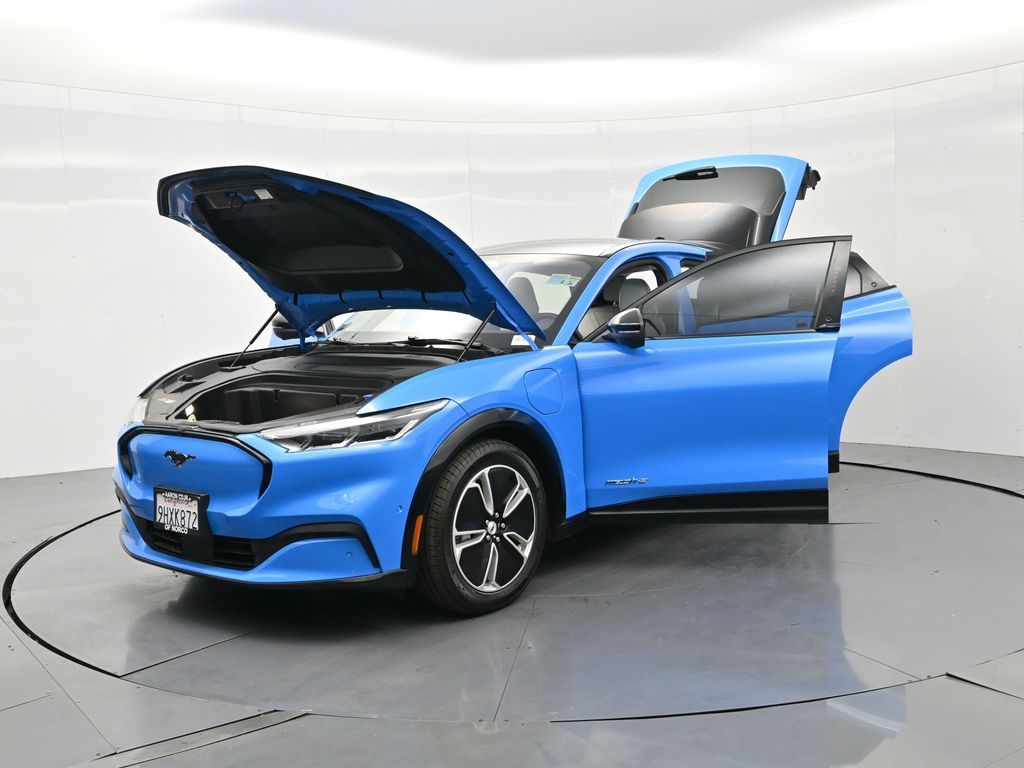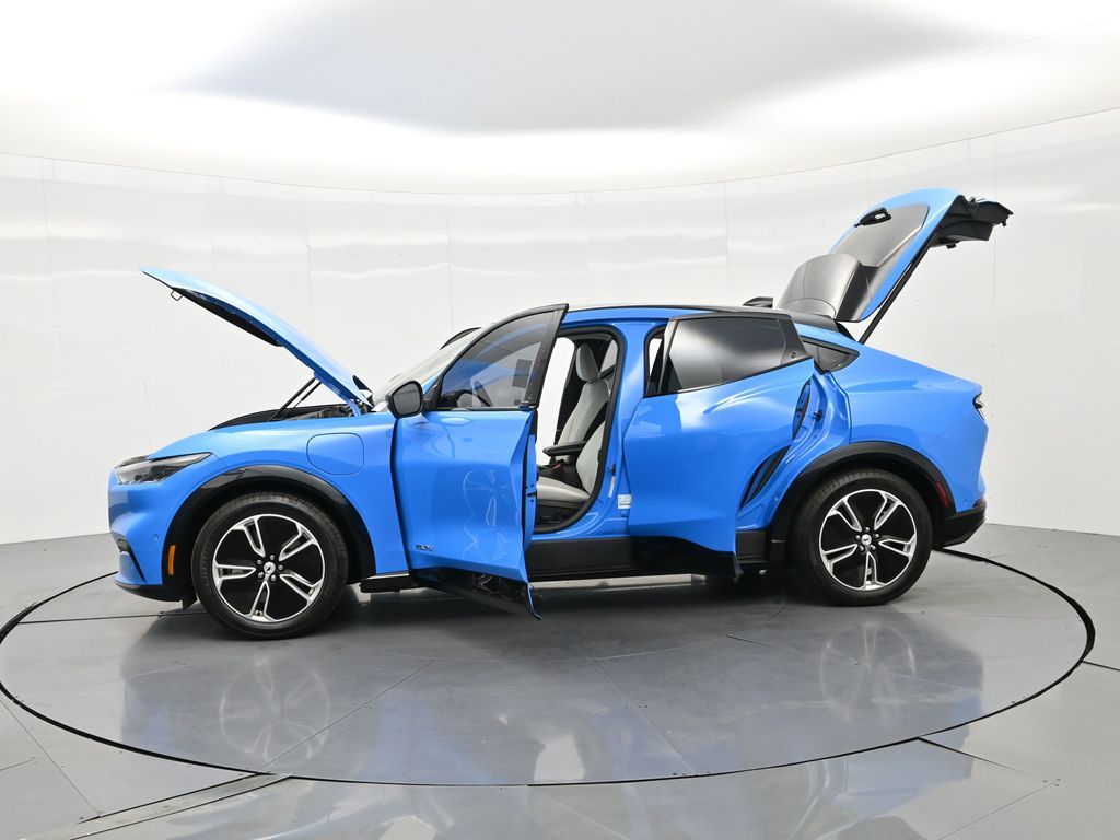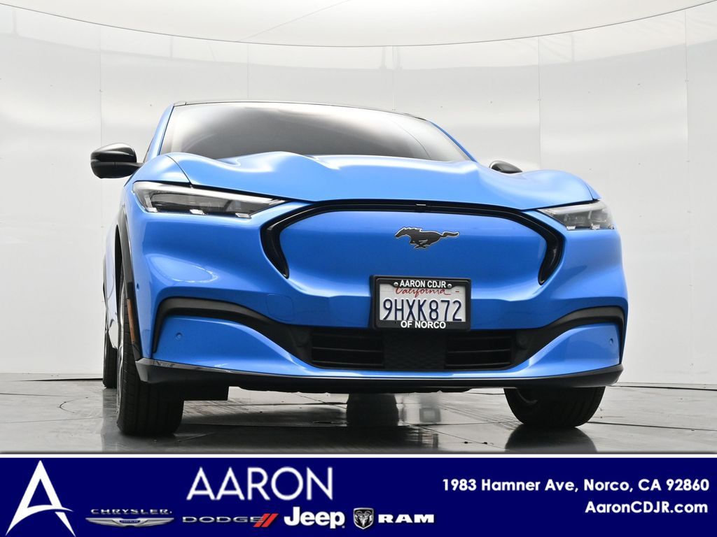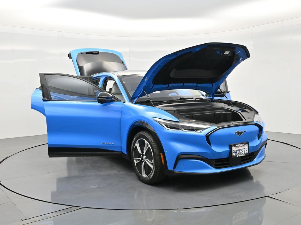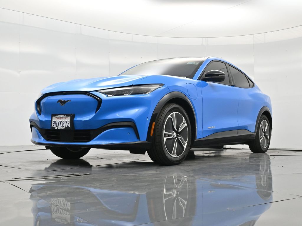 Experience the future of performance and design with this all-electric 2023 Ford Mustang Mach-E Premium, a rear-wheel drive crossover that blends iconic Mustang DNA with cutting-edge EV innovation. With just 23,265 miles and a clean one-owner Carfax showing consistent service, this Grabber Blue Metallic Mach-E offers exhilarating electric driving with the added confidence of remaining factory warranty. Powered by a permanent magnet motor and 91kWh extended-range lithium-ion battery, this Premium trim delivers seamless torque, whisper-quiet acceleration, and an impressive EPA-estimated range of up to 310 miles on a full charge. Ideal for daily commuting and road-tripping alike. Enjoy the convenience of multiple charging solutions including a mobile power cord and access to the BlueOval Charge Network. This Premium model is loaded with luxury and tech-forward features like perforated ActiveX heated front seats, a panoramic fixed-glass roof, and a SYNC 4A infotainment system with a massive 15.5-inch touchscreen, Apple CarPlay and Android Auto integration, enhanced voice recognition, and SiriusXM with 360L. Driver-assist technology is state-of-the-art, featuring Ford Co-Pilot360 Active 2.0 with Adaptive Cruise Control, Intersection Assist, Lane Centering, Evasive Steering Assist, and a full surround-view camera system for complete situational awareness. The interior feels upscale with a heated steering wheel, ambient lighting, aluminum and Carbonized Gray trim accents, and a power hands-free liftgate. Safety is comprehensive with Blind Spot Information System (BLIS), rear cross-traffic alert, Pre-Collision Assist with automatic emergency braking, and reverse sensing system. Additional upgrades include 19-inch shadow silver-painted aluminum wheels, Gray/Black two-tone interior with metallic pedals, memory driver's seat, dual-zone climate control, and wireless charging pad. Built for those who want the muscle of a Mustang with the forward-thinking power of electrification, this Mach-E Premium offers spirited handling, spacious comfort, and standout efficiency all in one electrifying package. Visit us today and take your driving experience to the next level zero emissions, maximum impact.