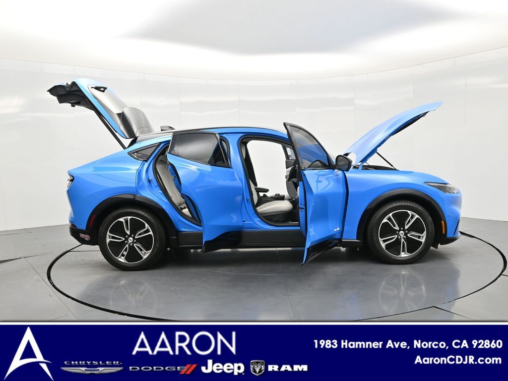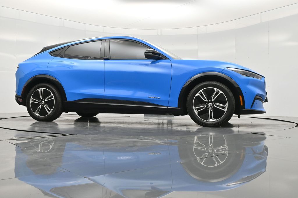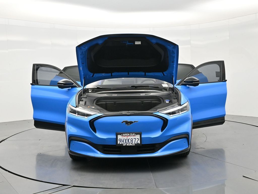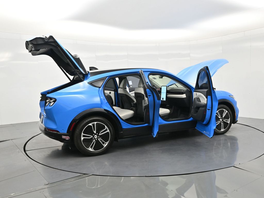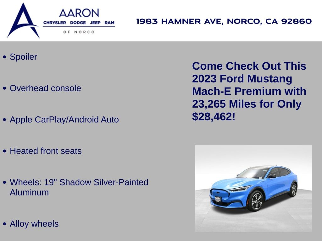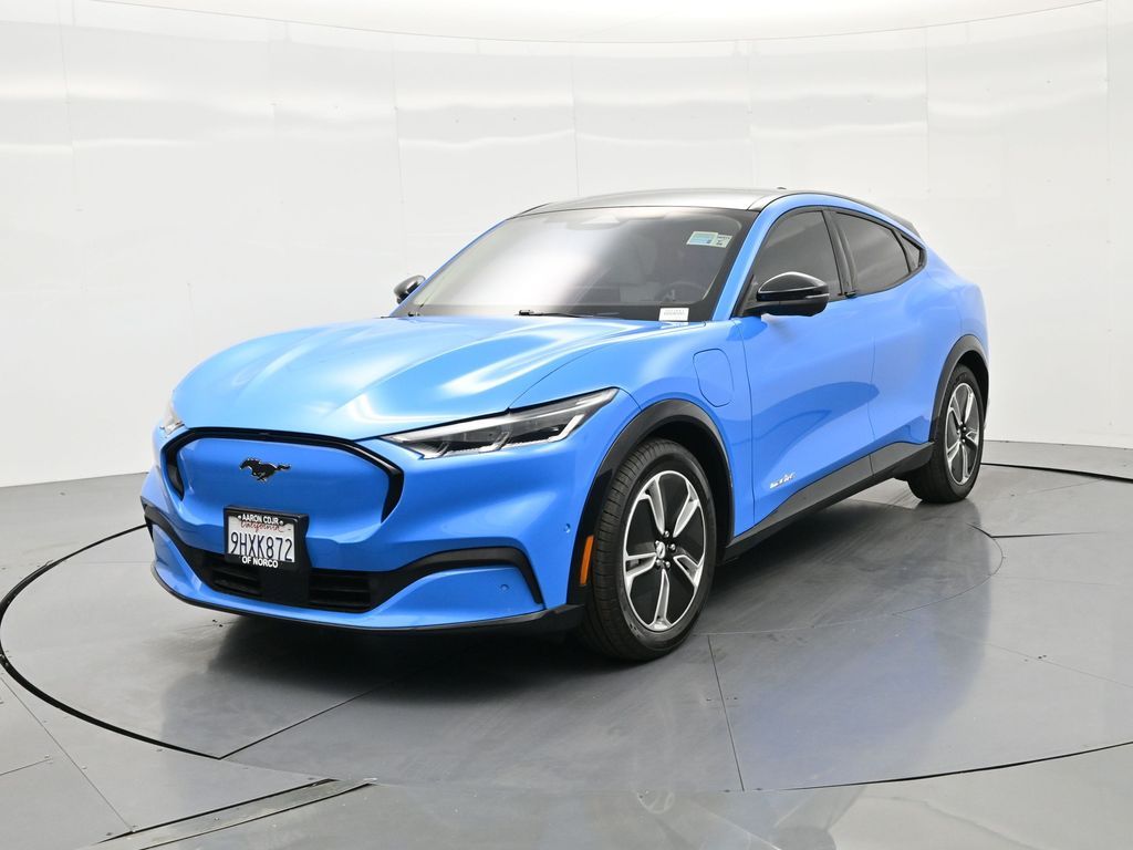 Experience the future of performance and design with this all-electric 2023 Ford Mustang Mach-E Premium, a rear-wheel drive crossover that blends iconic Mustang DNA with cutting-edge EV innovation. With just 23,265 miles and a clean one-owner Carfax showing consistent service, this Grabber Blue Metallic Mach-E offers exhilarating electric driving with the added confidence of remaining factory warranty. Powered by a permanent magnet motor and 91kWh extended-range lithium-ion battery, this Premium trim delivers seamless torque, whisper-quiet acceleration, and an impressive EPA-estimated range of up to 310 miles on a full charge. Ideal for daily commuting and road-tripping alike. Enjoy the convenience of multiple charging solutions including a mobile power cord and access to the BlueOval Charge Network. This Premium model is loaded with luxury and tech-forward features like perforated ActiveX heated front seats, a panoramic fixed-glass roof, and a SYNC 4A infotainment system with a massive 15.5-inch touchscreen, Apple CarPlay and Android Auto integration, enhanced voice recognition, and SiriusXM with 360L. Driver-assist technology is state-of-the-art, featuring Ford Co-Pilot360 Active 2.0 with Adaptive Cruise Control, Intersection Assist, Lane Centering, Evasive Steering Assist, and a full surround-view camera system for complete situational awareness. The interior feels upscale with a heated steering wheel, ambient lighting, aluminum and Carbonized Gray trim accents, and a power hands-free liftgate. Safety is comprehensive with Blind Spot Information System (BLIS), rear cross-traffic alert, Pre-Collision Assist with automatic emergency braking, and reverse sensing system. Additional upgrades include 19-inch shadow silver-painted aluminum wheels, Gray/Black two-tone interior with metallic pedals, memory driver's seat, dual-zone climate control, and wireless charging pad. Built for those who want the muscle of a Mustang with the forward-thinking power of electrification, this Mach-E Premium offers spirited handling, spacious comfort, and standout efficiency all in one electrifying package. Visit us today and take your driving experience to the next level zero emissions, maximum impact.