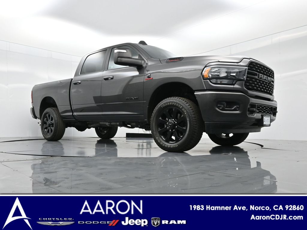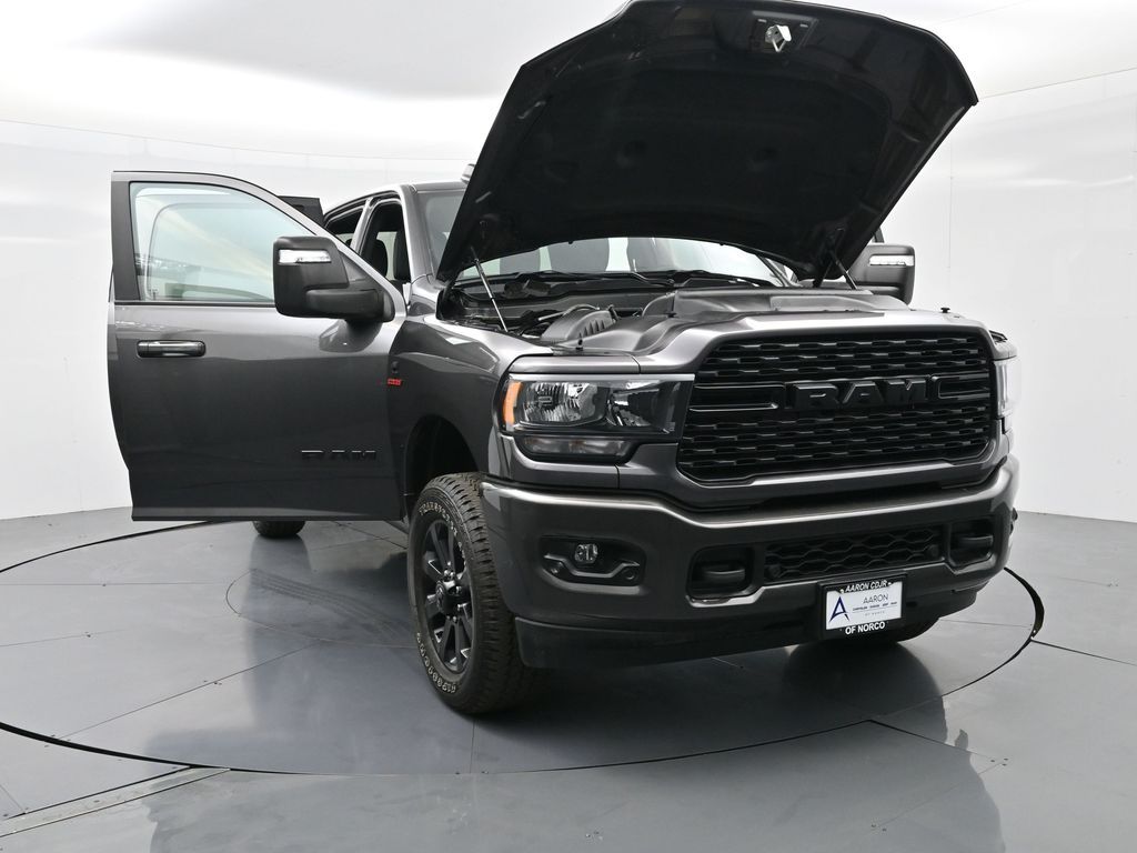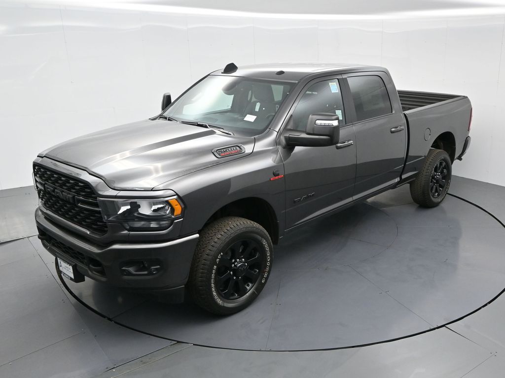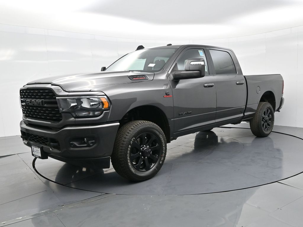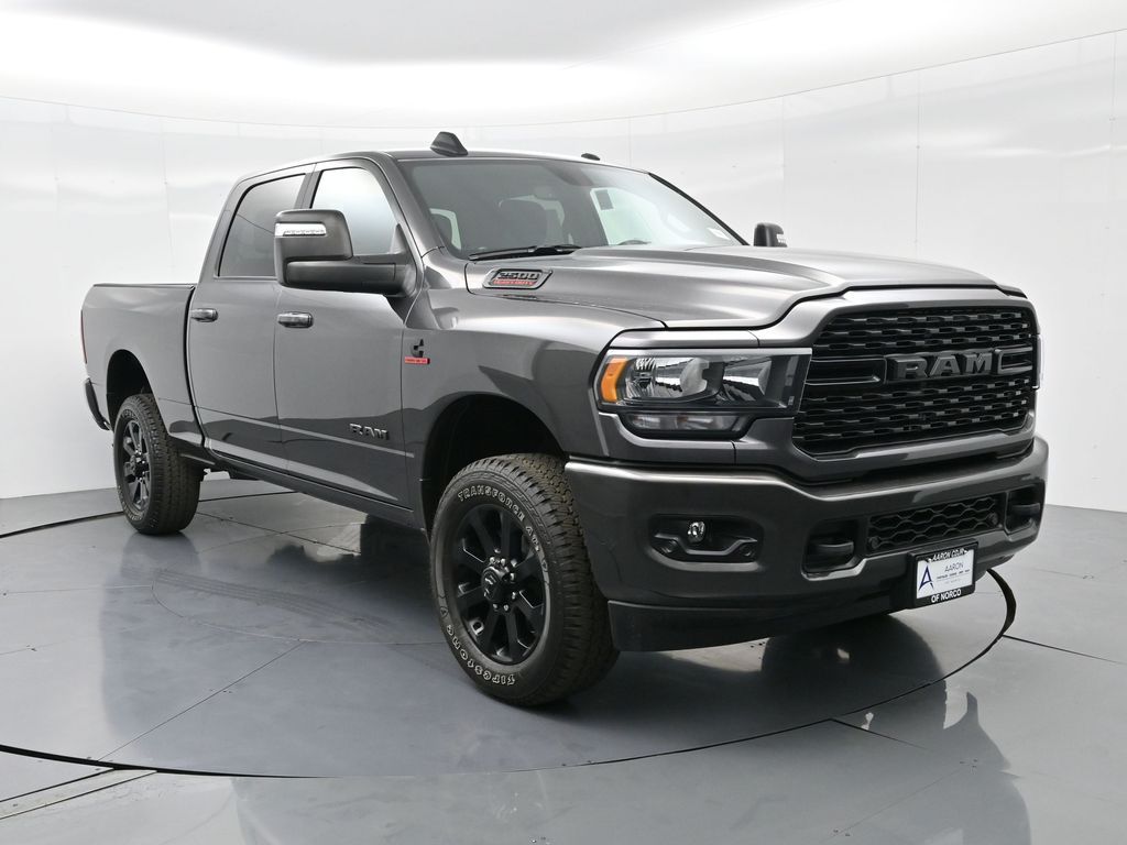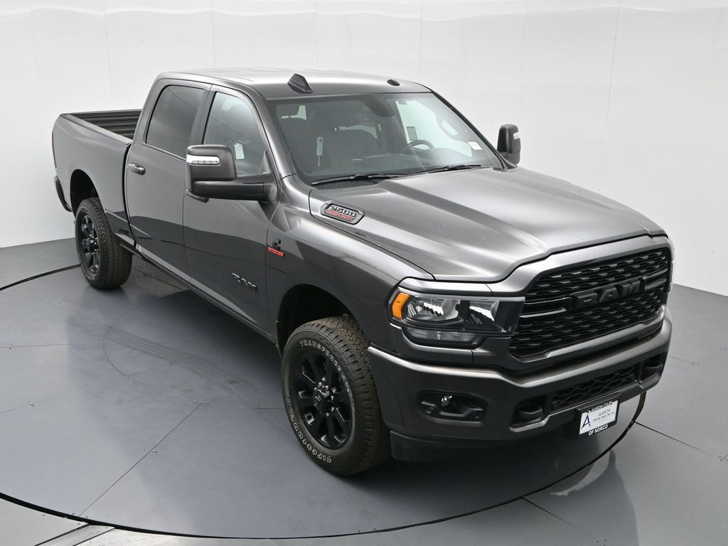 2024 Ram 2500 Big Horn Granite Crystal Metallic ClearcoatFactory MSRP: $76,190 Dealer Discount of $12,555 off MSRPBed Utility Group, Black Exterior Truck Badging, Black Headlamp Bezels, Black Interior Accents, Black Ram Head Tailgate Badge, Black Tail Lamp Bezels, Black Wheel Center Hub, Body Color Door Handles, Body Color Grille Surround, Gloss Black Nostrils/MIC Black Grille, LED Bed Lighting, MOPAR Deployable Bed Step, MOPAR Spray In Bedliner, Night Edition, Painted Front Bumper, Painted Rear Bumper, ParkSense Front/Rear Park Assist System, Wheels: 20" x 8.0" Black Painted Aluminum. 4WD 6-Speed Automatic Cummins 6.7L I6 Turbodiesel