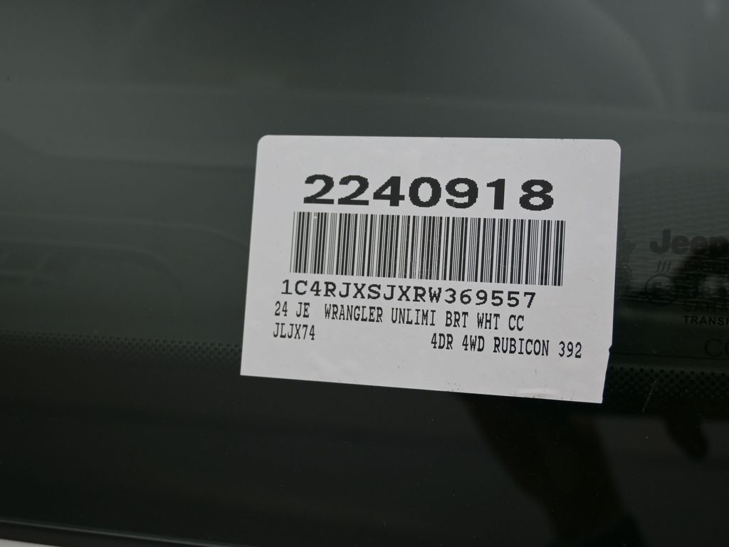 2024 Jeep Wrangler Rubicon 392 Bright White ClearcoatFactory MSRP: $106,210 Dealer Discount of $12,332 off MSRP392 Final Edition Center Hood Decal, 392 Final Edition Fender Vent Decal, 392 Final Edition Nappa Leather Seat, 392 Final Edition Shifter Medallion, 392 Final Edition Swing Gate Plaque, 392 Suspension, Matte Reverse Net Interior Accents, MOPAR All-Weather Floor Mats, MOPAR Fold-Out Table, MOPAR Grille Guard Triple Loop, MOPAR Tool Kit JPP/Jeep, Power Top Quarter Window Storage Bag, Quick Order Package 27J Rubicon 392 Final Edition, Rear Window Defroster, Rear Window Wiper/Washer, Removable Rear Quarter Windows, Rubicon 392 Final Edition, Sky 1-Touch Power Top, Warn Winch, Wheels: 17" x 8.0" Bronze Beadlock Capable. 13/16 City/Highway MPG 4WD 8-Speed Automatic SRT HEMI 6.4L V8 MDS