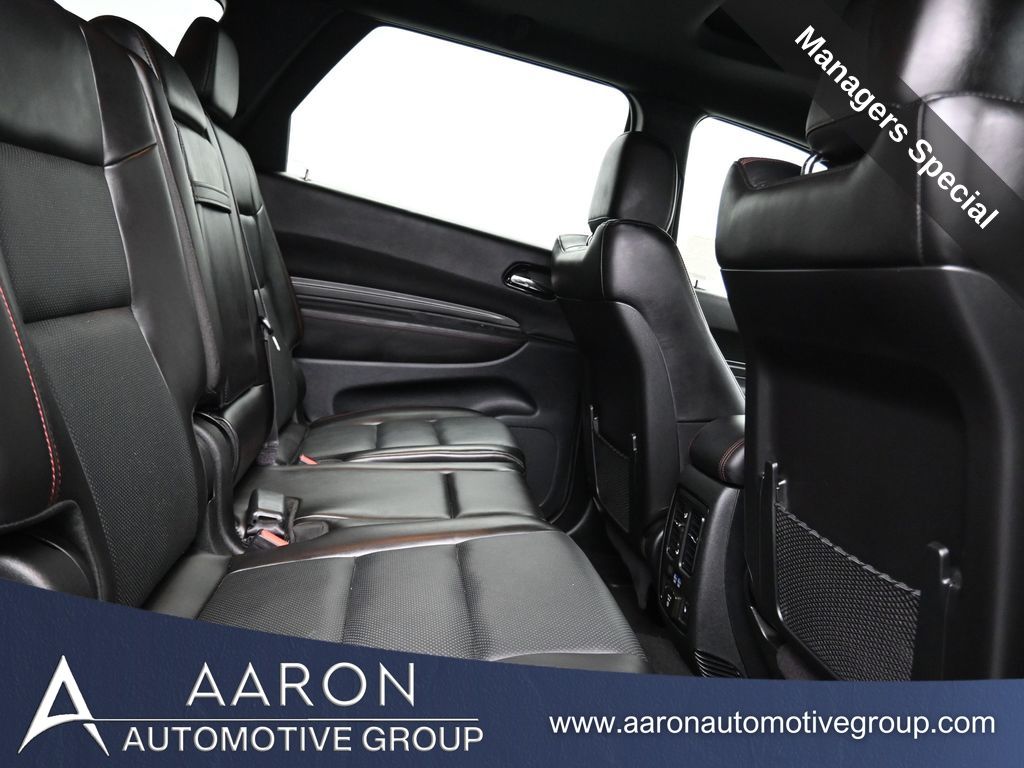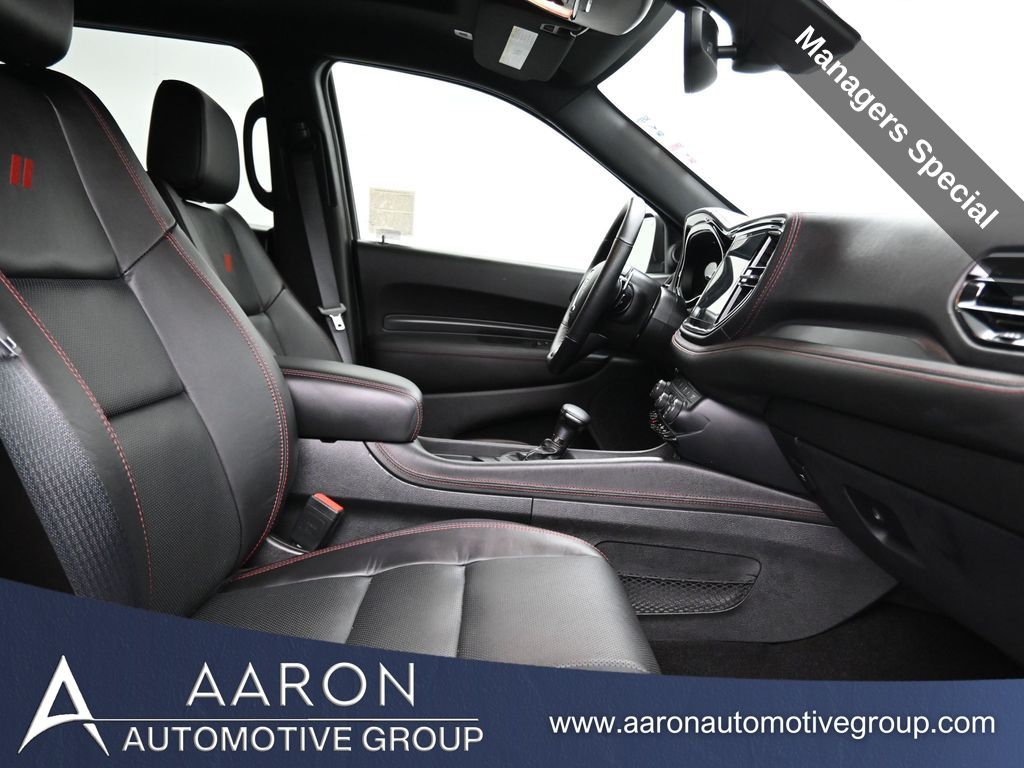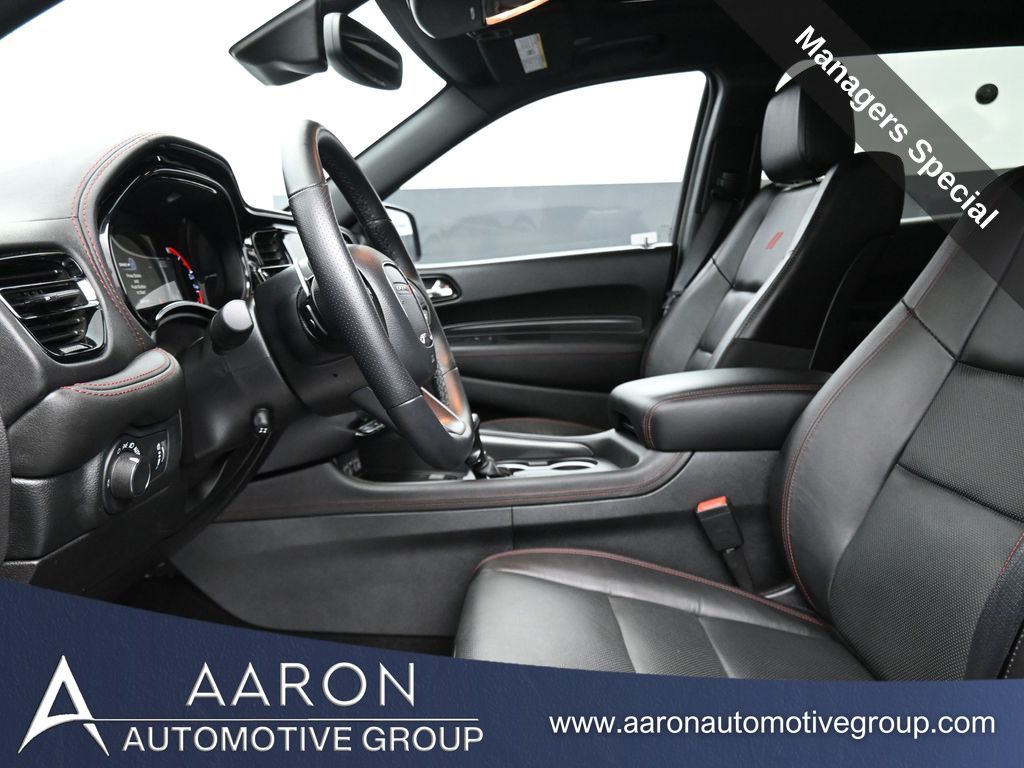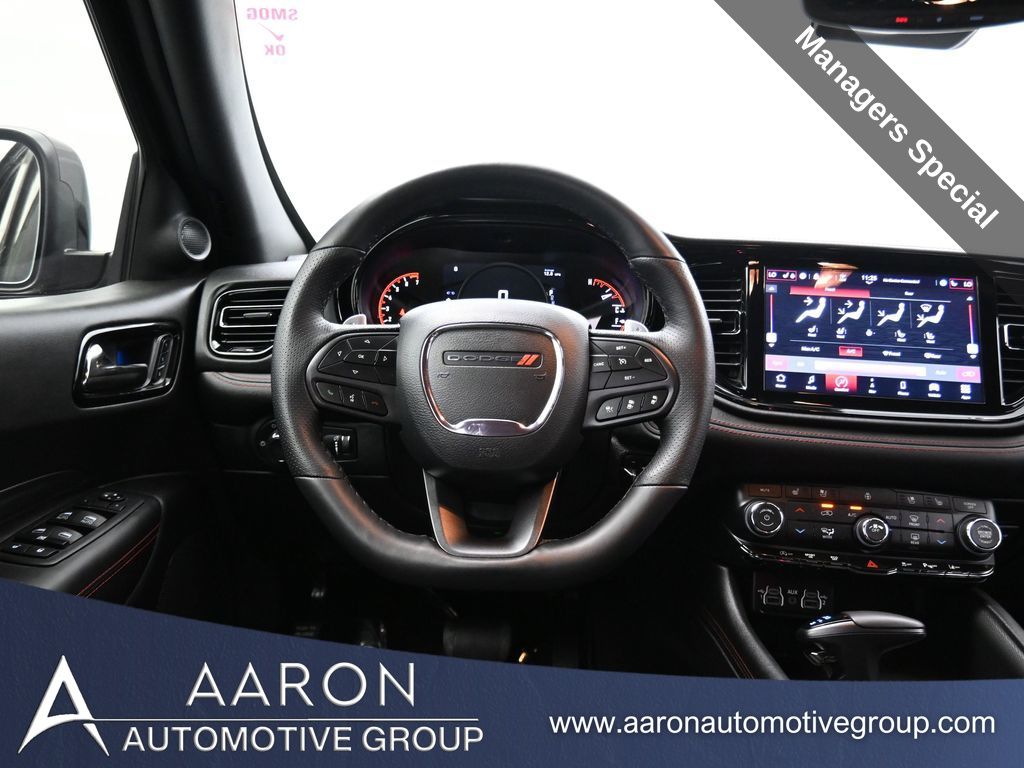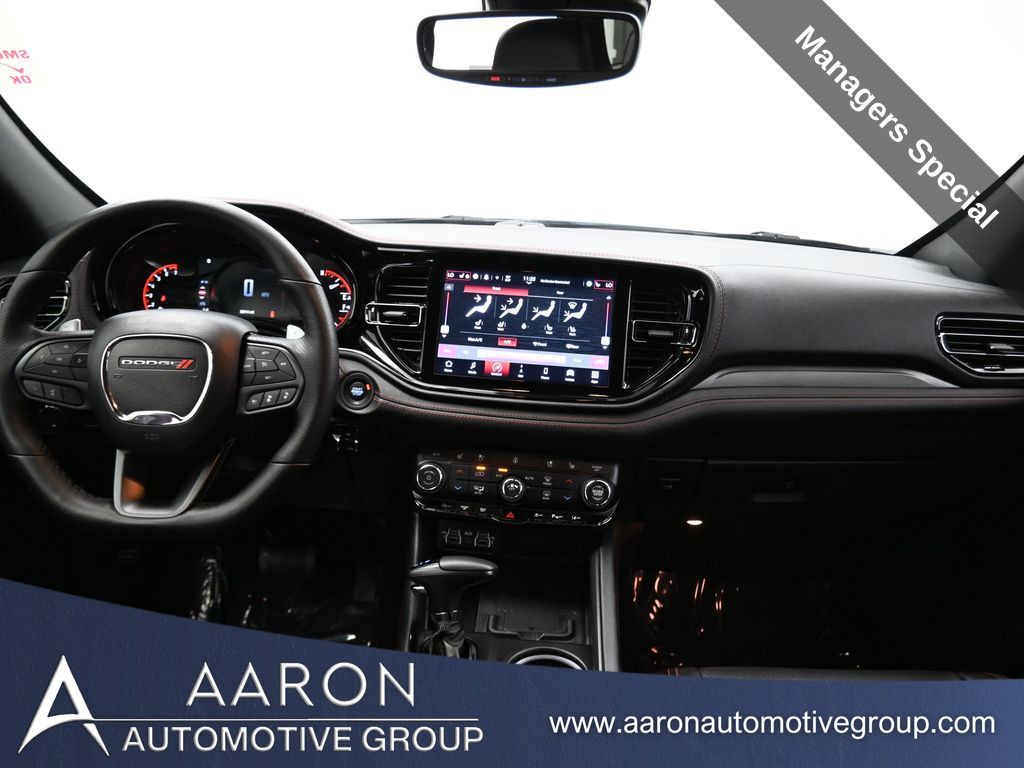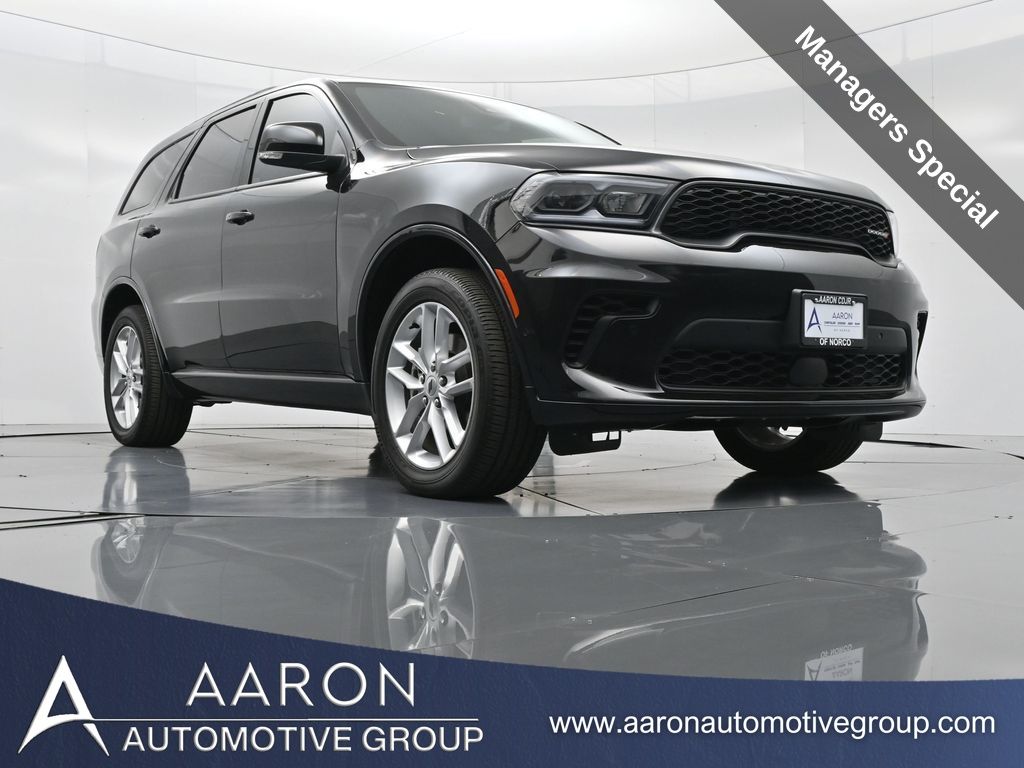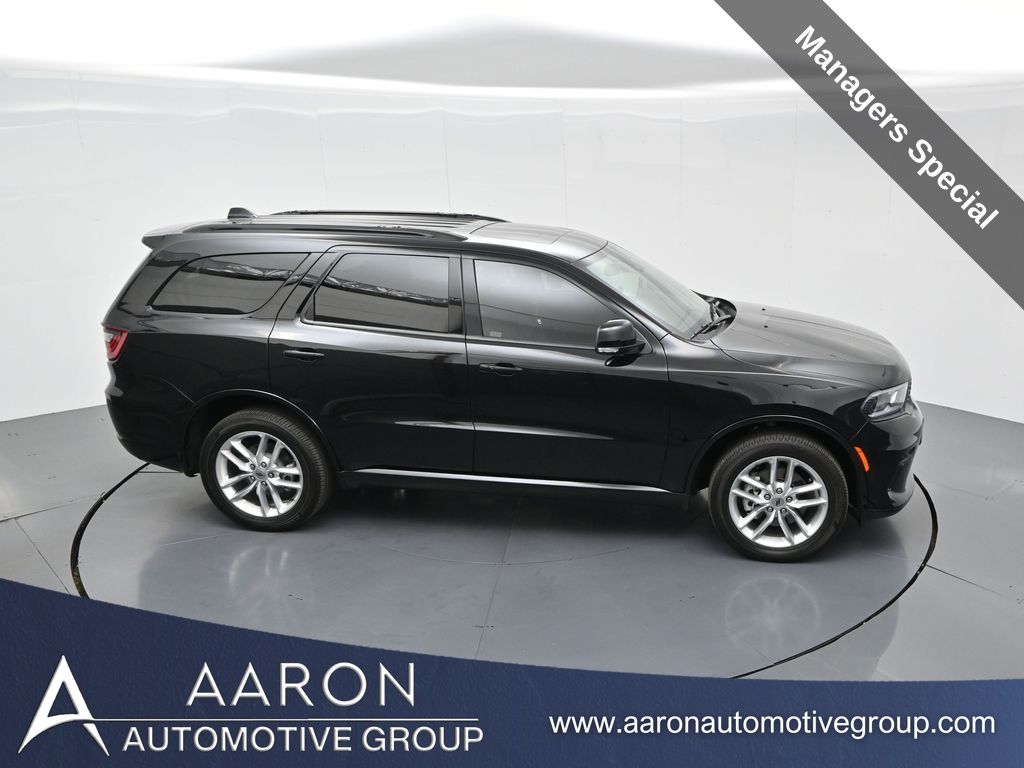 Style, strength, and spaciousness come together in this practically new 2024 Dodge Durango GT Premium AWD, a three-row SUV that delivers muscle-car spirit with full-family utility. With just 3,576 miles, a clean 2-owner Carfax, no accidents reported, personal-use history, and regular oil changes, this exceptionally maintained Durango is ready to offer years of comfort, confidence, and capability. Under the hood, the proven 3.6L Pentastar V6 engine is mated to an 8-speed automatic transmission, sending power to all four wheels through an intelligent all-wheel drive system for sure-footed traction in all conditions. Rated at 21 MPG combined (18 city / 25 highway), the Durango balances performance with efficiency, making it ideal for family road trips, commutes, or weekend adventures. Finished in Diamond Black Crystal Pearl-Coat with 20-inch Satin Carbon wheels, LED lighting, dual exhaust with bright tips, and body-color grille and bumpers, this GT Premium makes a bold first impression. Inside, the refined cabin features Black leather-trimmed seating, heated front and second-row seats, a heated leather-wrapped steering wheel, 8-way power driver and passenger seats with memory, tri-zone climate control, and seating for up to 6 with second-row captains chairs. The 10.1-inch Uconnect touchscreen with Apple CarPlay, Android Auto, navigation, SiriusXM, and Alpine 9-speaker audio system brings next-gen connectivity to every seat. Additional features include a wireless charging pad, remote start, universal garage door opener, power liftgate, and ParkView rear backup camera with ParkSense front and rear assist. Safety is comprehensive with Forward Collision Warning Plus, Adaptive Cruise Control with Stop, Lane Departure Warning, Blind Spot Monitoring, and Rain Brake Support, keeping your family protected on every drive. With power folding heated mirrors, sun visors with illuminated vanity mirrors, and memory settings for driver preferences, the details are what truly make this Durango feel premium. Backed by Dodges 5-year/60,000-mile powertrain warranty, this low-mileage GT Premium offers the luxury, space, and power your family deserves. If you're looking for a vehicle that can keep up with your family's lifestyle while keeping them comfortable and entertained, the Durango GT Premium is a choice you can feel great about, because every mile should feel like home.